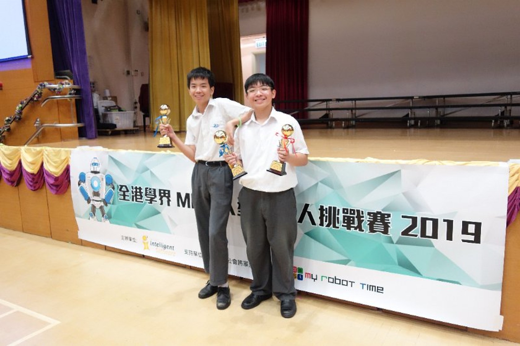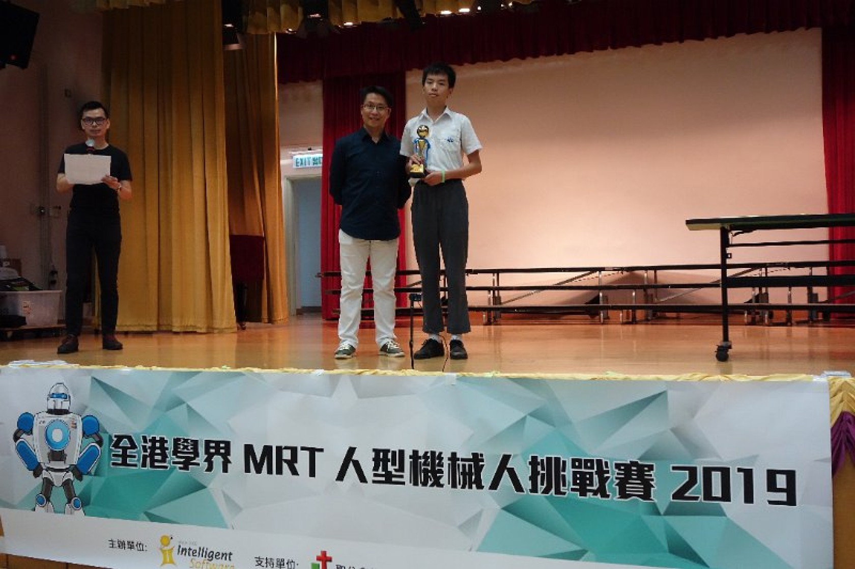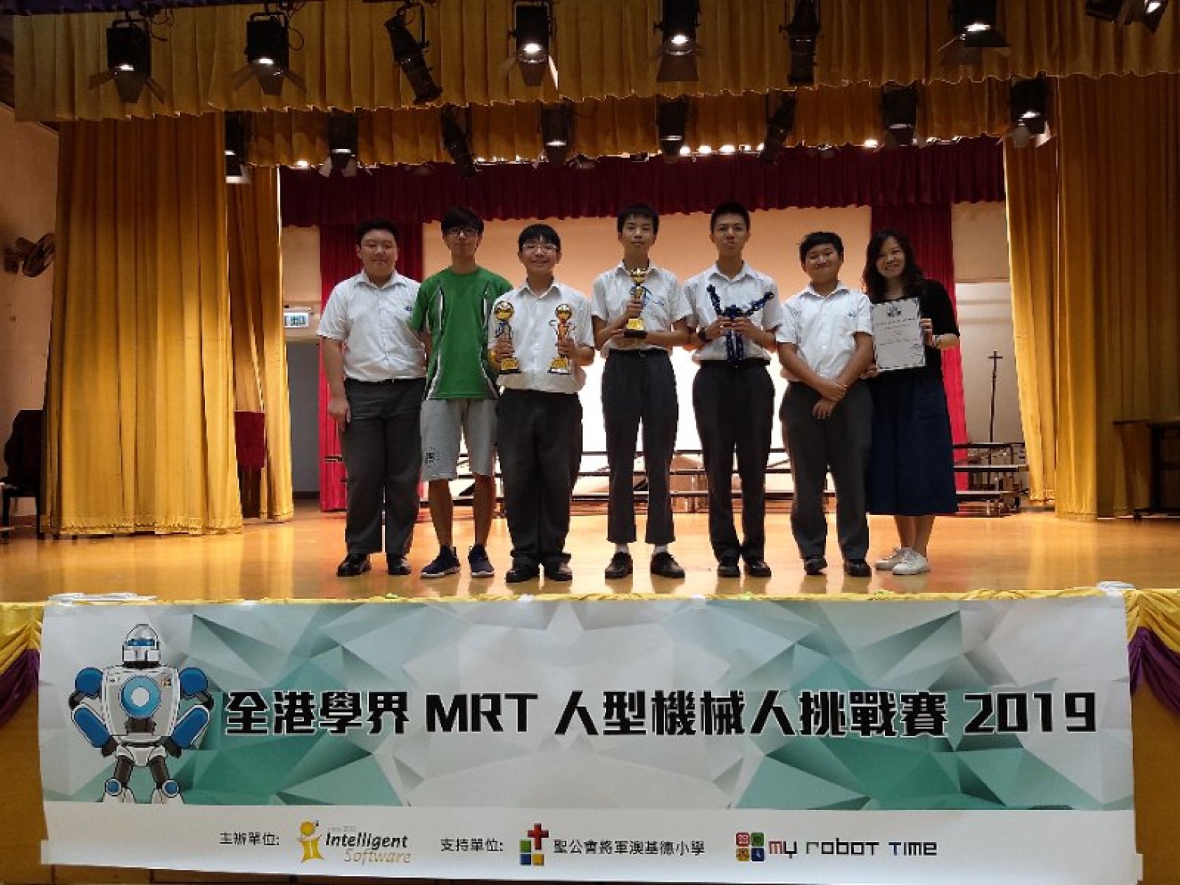 「全港學界 MRT 人型機械人挑戰賽 2019」(香港區賽) 本校學生積極參與7月6日舉辦的「全港學界 MRT 人型機械人挑戰賽 2019」(香港區賽),表現十分出色。1A劉暐麒 及3B王俊烽分別獲得「MRT Robot機械人障礙賽」亞軍及季軍。而1A劉暐麒同學同時於-「MRT Robot機械人拳擊賽」獲得季軍殊榮。得獎同學將代表香港於8月前往南韓參加「6th International Youth Robot Competition (IYRC) 2019」賽事。