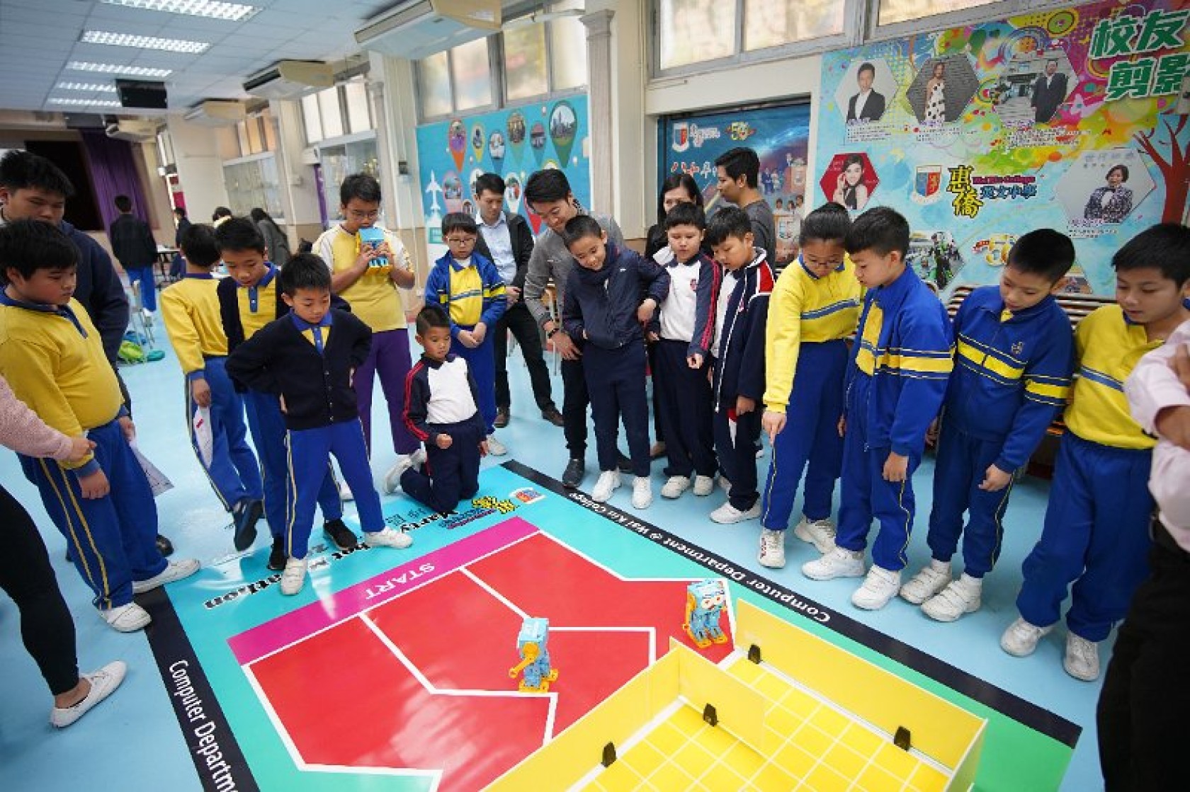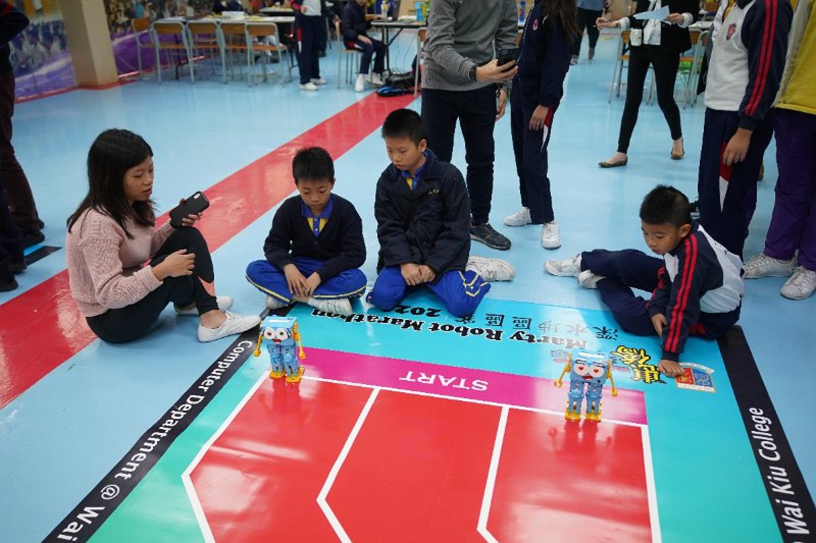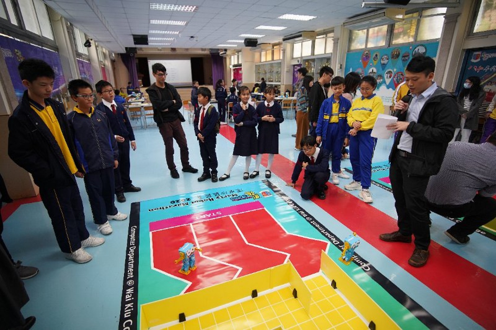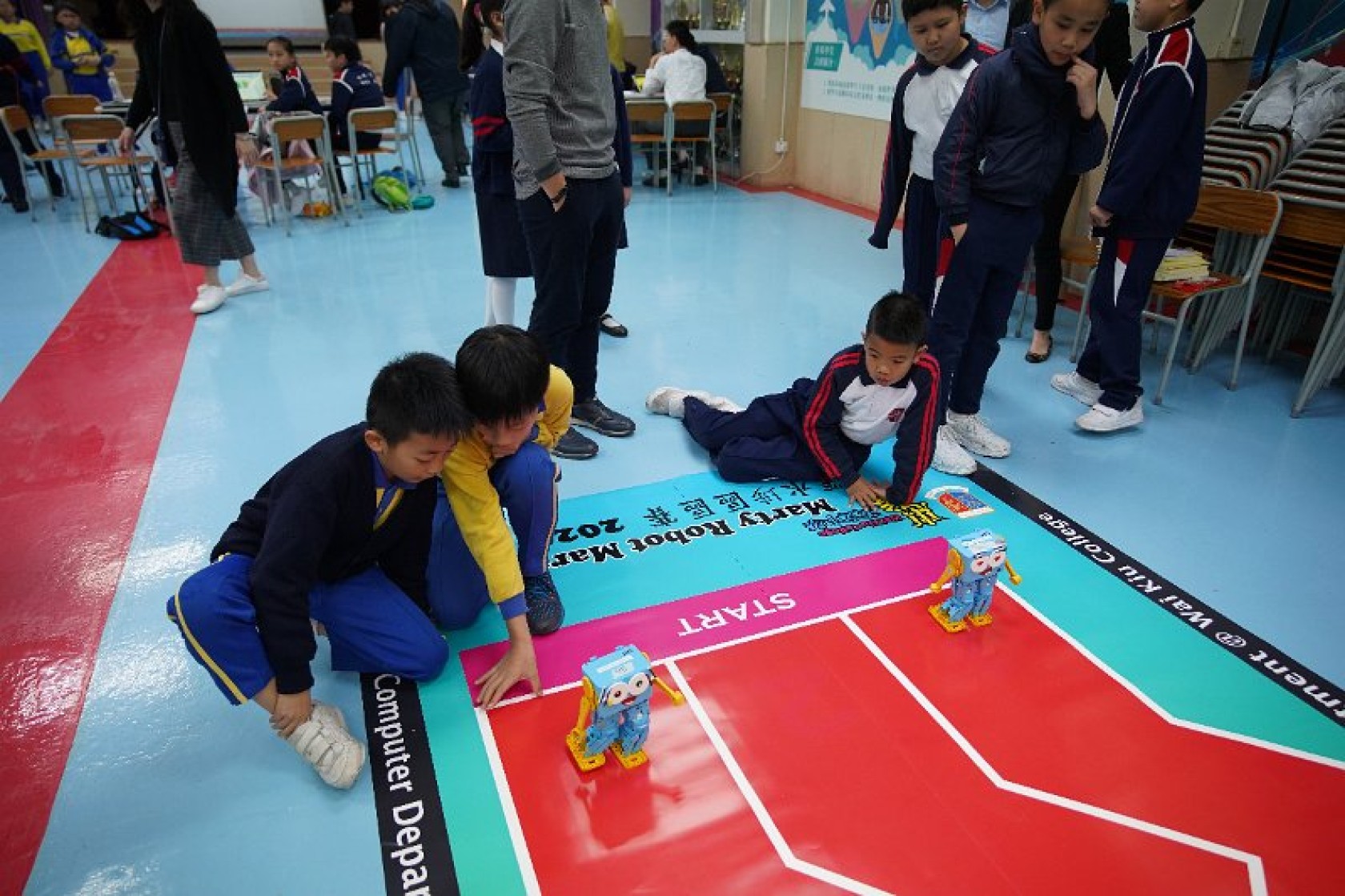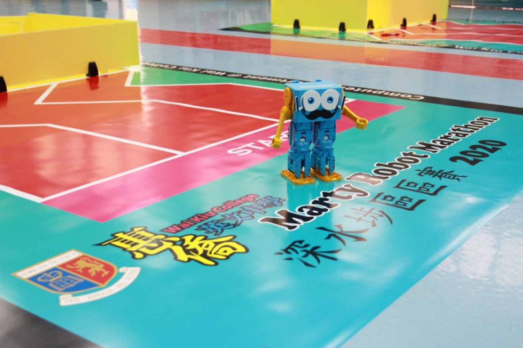 Marty Robot Marathon 深水埗區區賽2020(小學組)經已完滿落幕。是次比賽由惠僑英文中學主辦,亦是首間學校引入迷你步行機器人“Marty the Robot”至香港教育界別作比賽。當日多間小學約六十位學生蒞臨參賽,比賽共設兩部份,以關卡難題形式的比賽賽道考驗學生即時的編程能力及解難能力,相當具挑戰性! 各隊伍的成員齊集一堂,氣氛非常緊張熱烈。比賽是一個集合直線及不同角度的斜道、障礙物及迷宮賽道,以機械人能步行至最遠距離的隊伍為冠軍,主要考驗小學生的編程知識及即時的應變及解難能力。在當日早上公開賽道後,13隊參賽隊伍均有測試及比賽時段,各隊伍把握每分每秒去測試賽道,場面非緊張刺激。 比賽結束後隨即進行頒獎,各小學的得獎的學生都獲得獎狀與獎盃作為鼓勵。