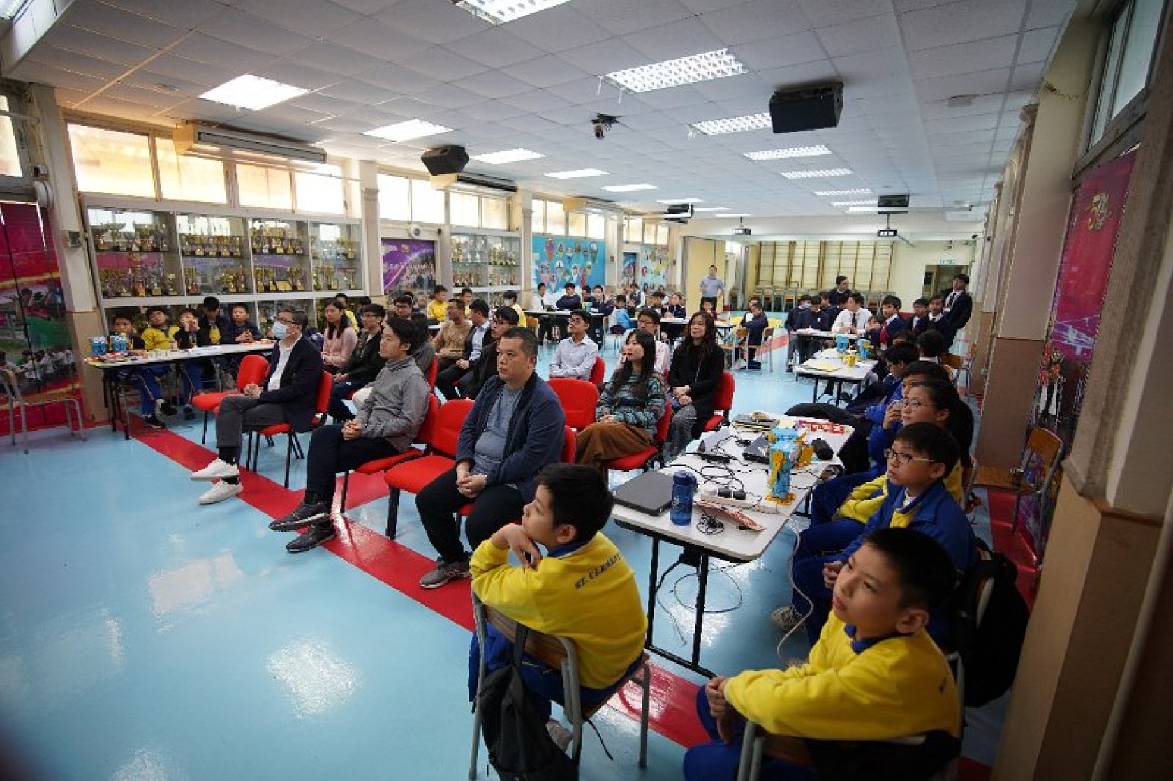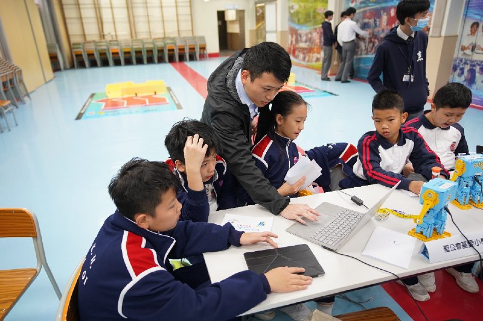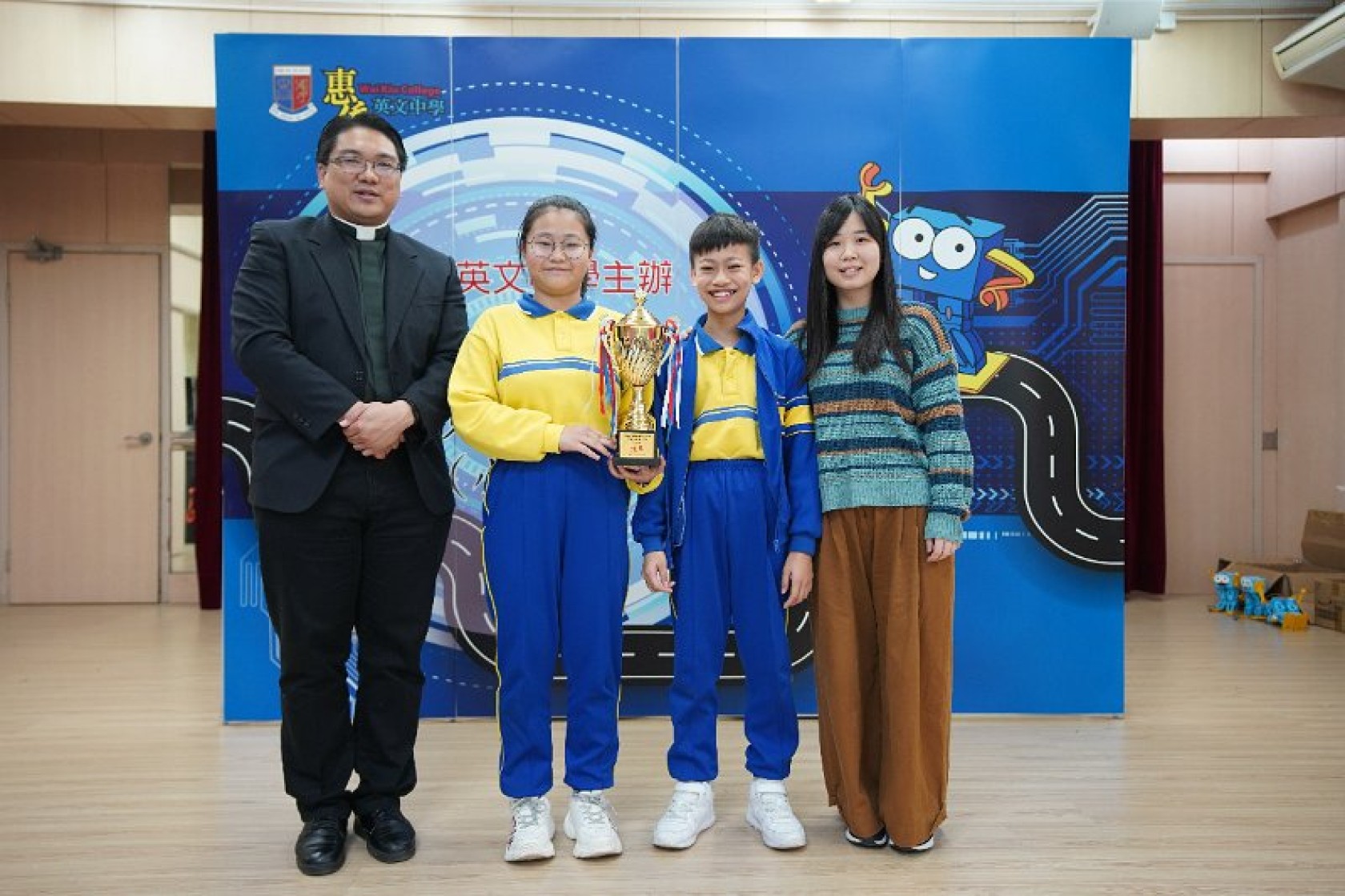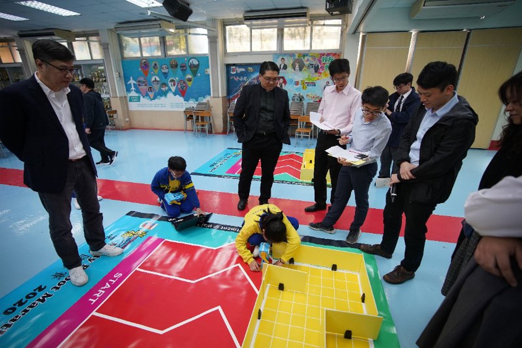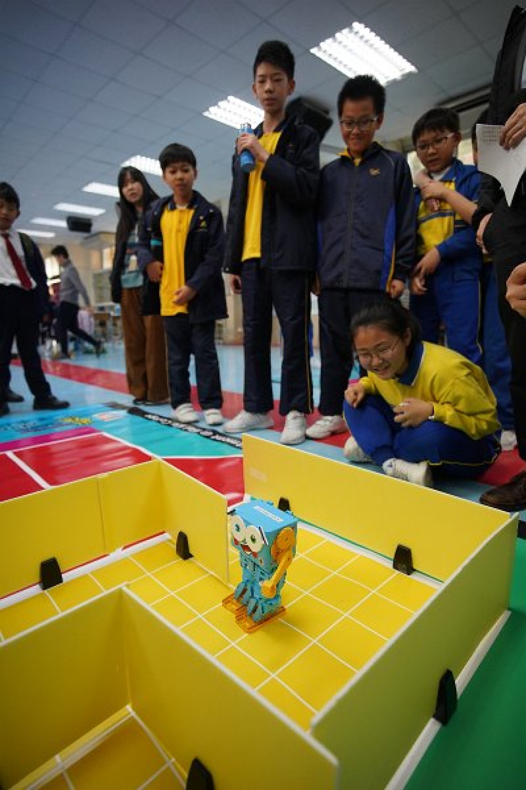 Marty Robot Marathon 深水埗區區賽2020(小學組)經已完滿落幕。是次比賽由惠僑英文中學主辦,亦是首間學校引入迷你步行機器人“Marty the Robot”至香港教育界別作比賽。當日多間小學約六十位學生蒞臨參賽,比賽共設兩部份,以關卡難題形式的比賽賽道考驗學生即時的編程能力及解難能力,相當具挑戰性! 各隊伍的成員齊集一堂,氣氛非常緊張熱烈。比賽是一個集合直線及不同角度的斜道、障礙物及迷宮賽道,以機械人能步行至最遠距離的隊伍為冠軍,主要考驗小學生的編程知識及即時的應變及解難能力。在當日早上公開賽道後,13隊參賽隊伍均有測試及比賽時段,各隊伍把握每分每秒去測試賽道,場面非緊張刺激。 比賽結束後隨即進行頒獎,各小學的得獎的學生都獲得獎狀與獎盃作為鼓勵。