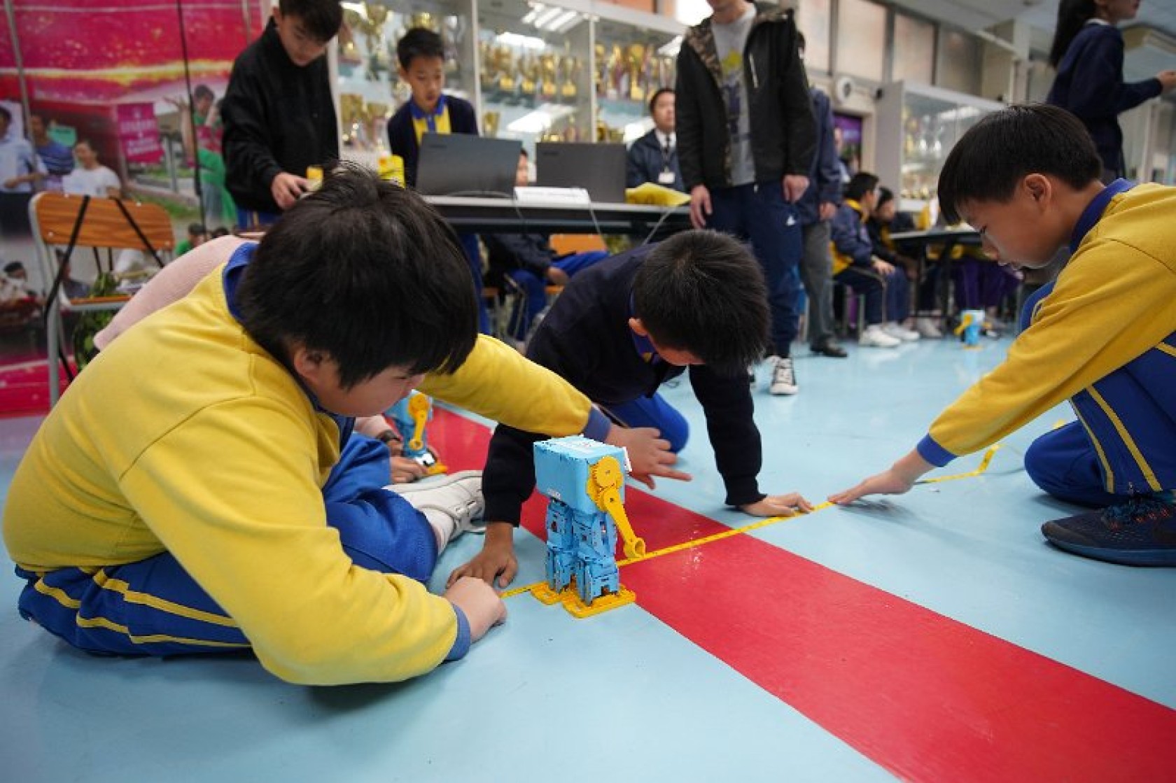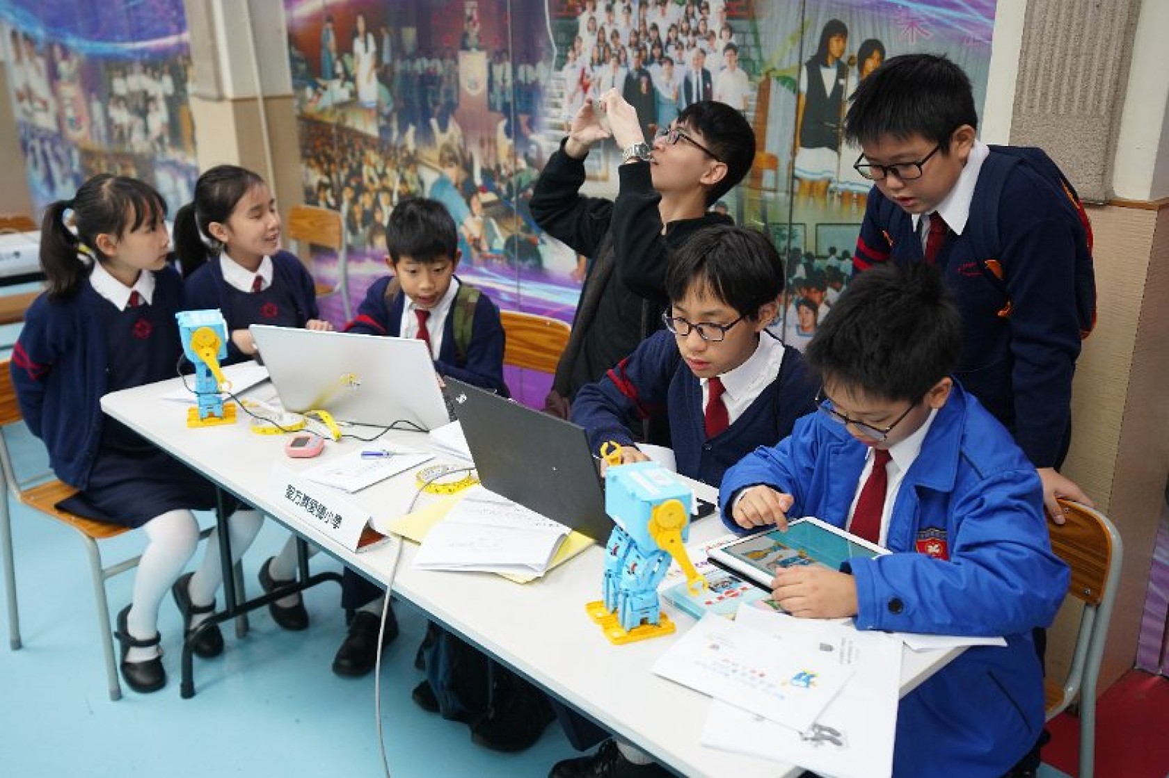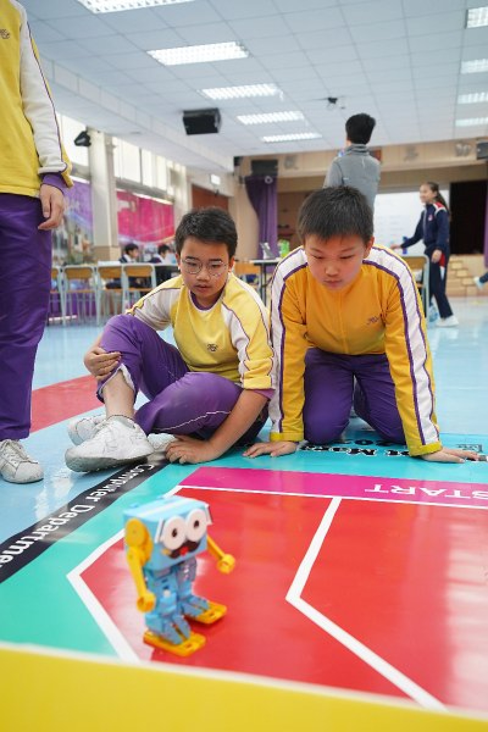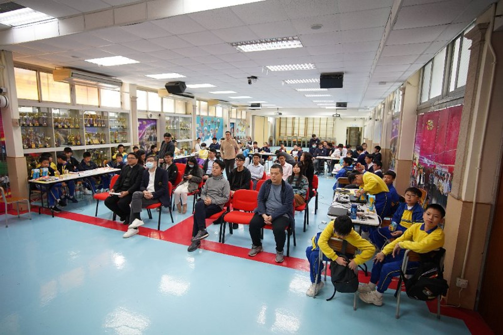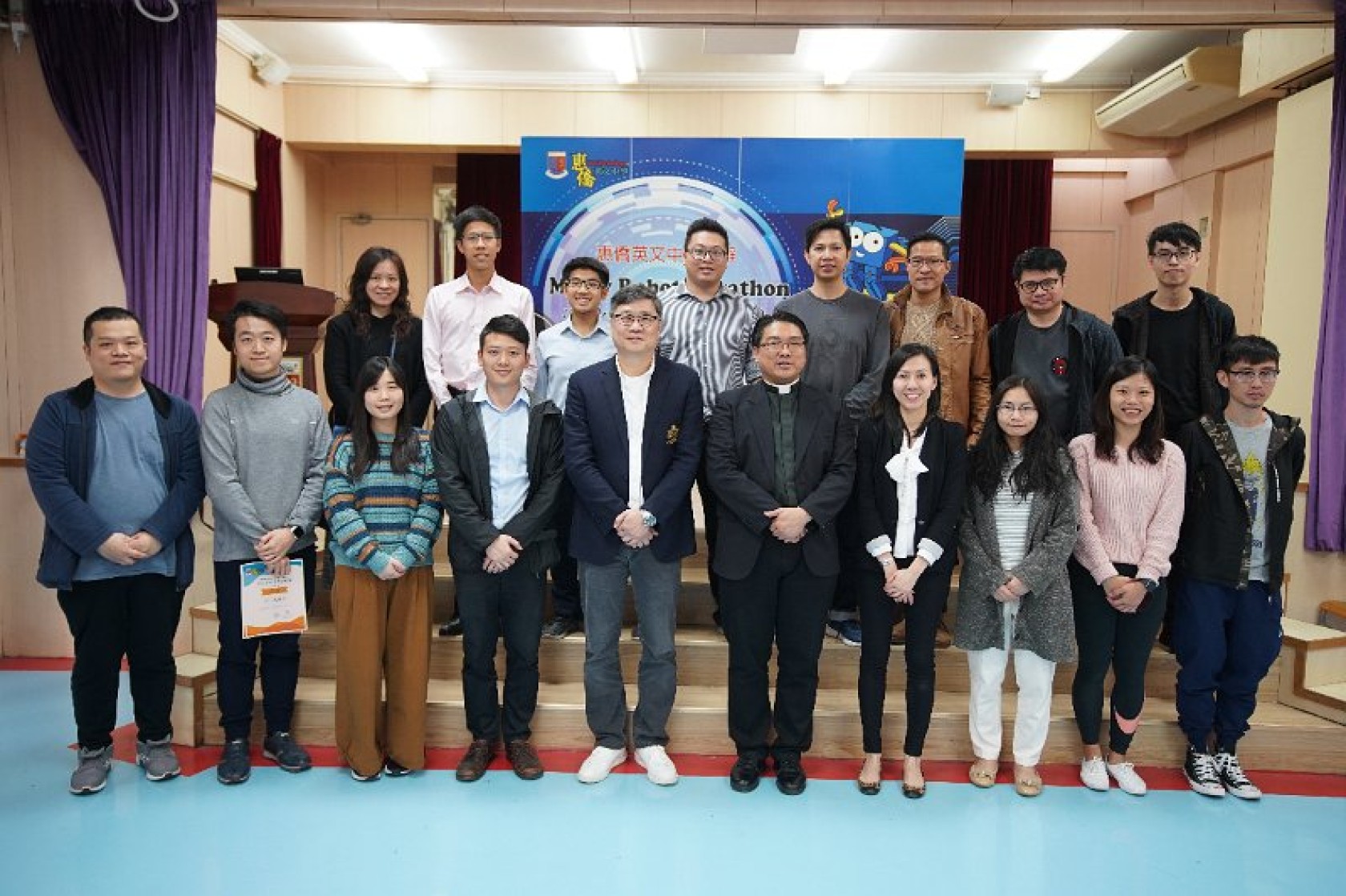 Marty Robot Marathon 深水埗區區賽2020(小學組)經已完滿落幕。是次比賽由惠僑英文中學主辦,亦是首間學校引入迷你步行機器人“Marty the Robot”至香港教育界別作比賽。當日多間小學約六十位學生蒞臨參賽,比賽共設兩部份,以關卡難題形式的比賽賽道考驗學生即時的編程能力及解難能力,相當具挑戰性! 各隊伍的成員齊集一堂,氣氛非常緊張熱烈。比賽是一個集合直線及不同角度的斜道、障礙物及迷宮賽道,以機械人能步行至最遠距離的隊伍為冠軍,主要考驗小學生的編程知識及即時的應變及解難能力。在當日早上公開賽道後,13隊參賽隊伍均有測試及比賽時段,各隊伍把握每分每秒去測試賽道,場面非緊張刺激。 比賽結束後隨即進行頒獎,各小學的得獎的學生都獲得獎狀與獎盃作為鼓勵。