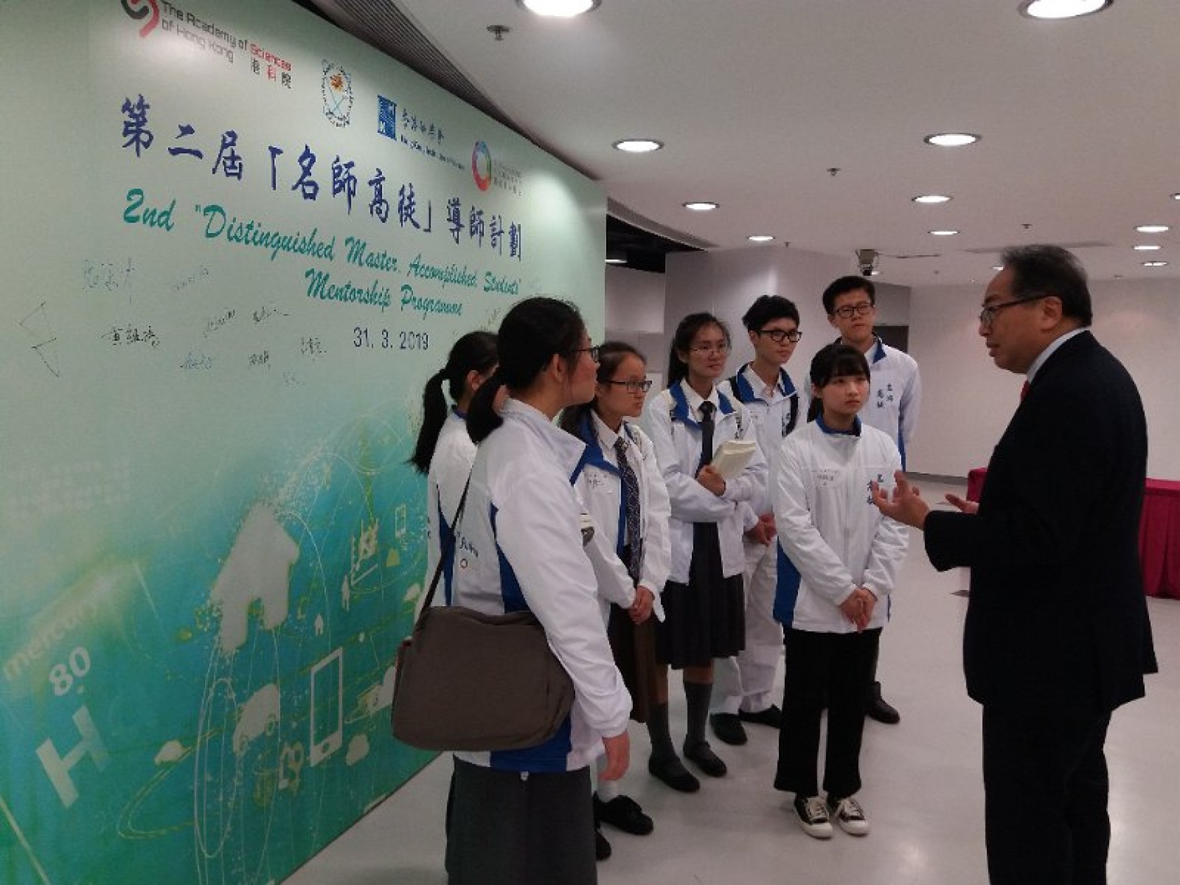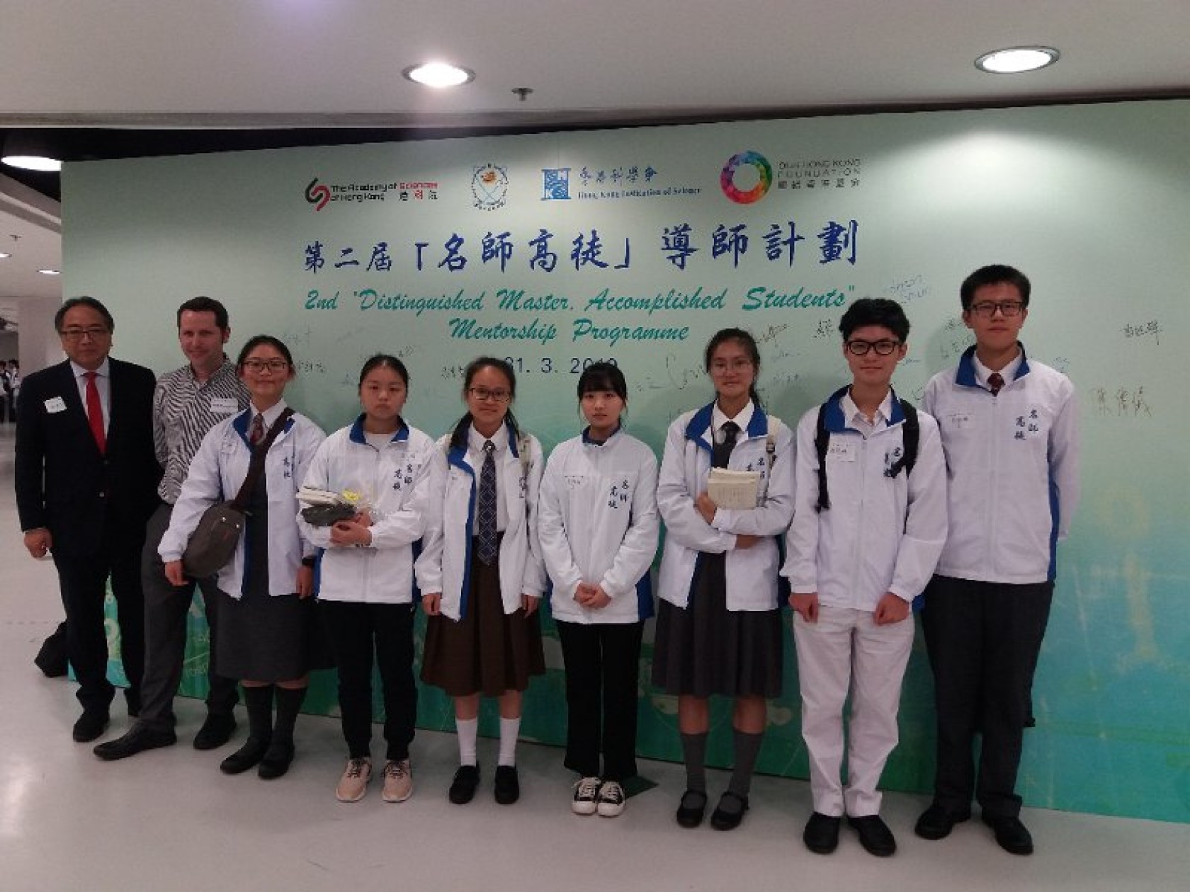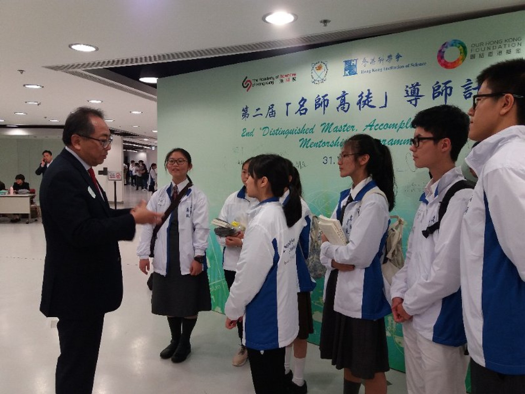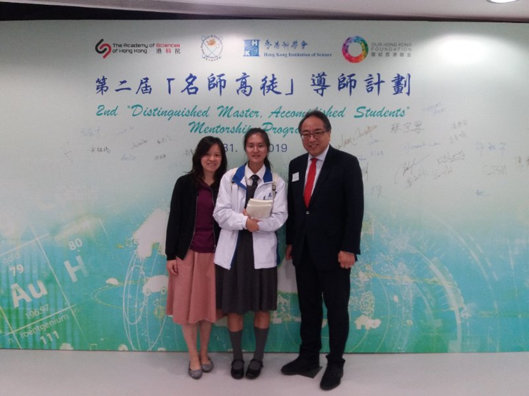 計劃由港科院、香港工程科學會、香港科學會和團結香港基金主辦的「名師高徒」導師計劃正式啟動,計劃有幸獲行政長官林鄭月娥女士、創新及科技局局長楊偉雄先生、港科院院長徐立之教授、以及團結香港基金總幹事鄭李錦芬女士等出席支持。 今屆有51名導師及136名學生參與,本校4C班李童安同學成功入選參與計劃,透過與導師就其生涯規劃互相交流,讓同學們有不一樣等學習機會,協助走上成功的科學之路。