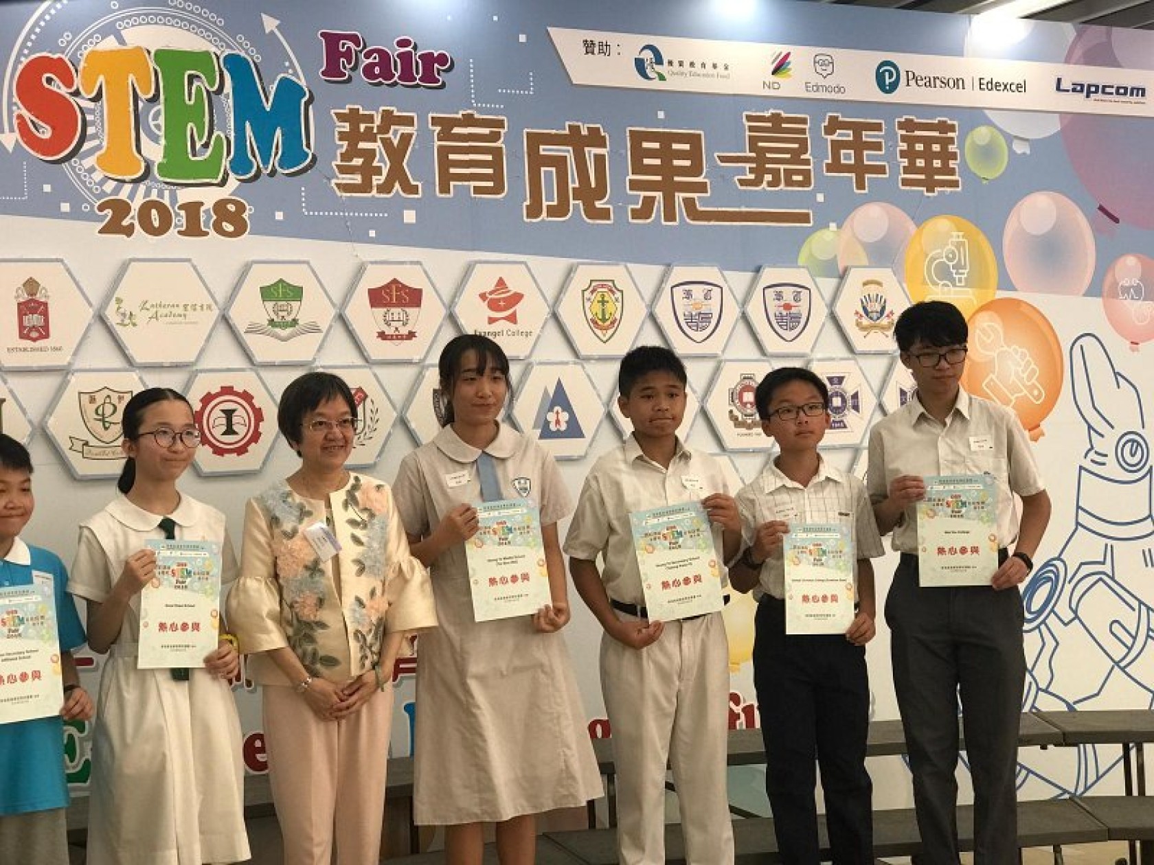 由香港直接資助學校議會主辦的STEM FAIR於2018年9月22至24日舉行,旨在讓不同學校交流STEM研究成果。本校STEM教育小組攜同同學出席,並展出不同的機械人示範,更獲邀跟教育局局長楊潤雄合照留念。同學亦籍此機會向楊局長介紹本校STEM成果,分享他們苦盡甘來的研究過程。