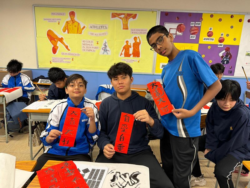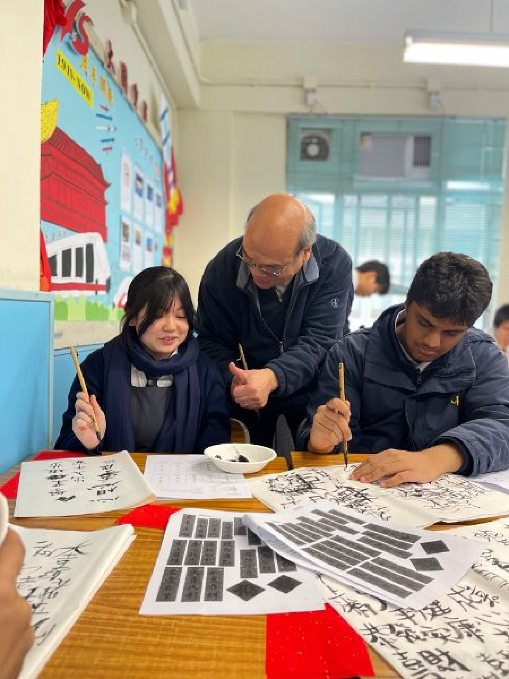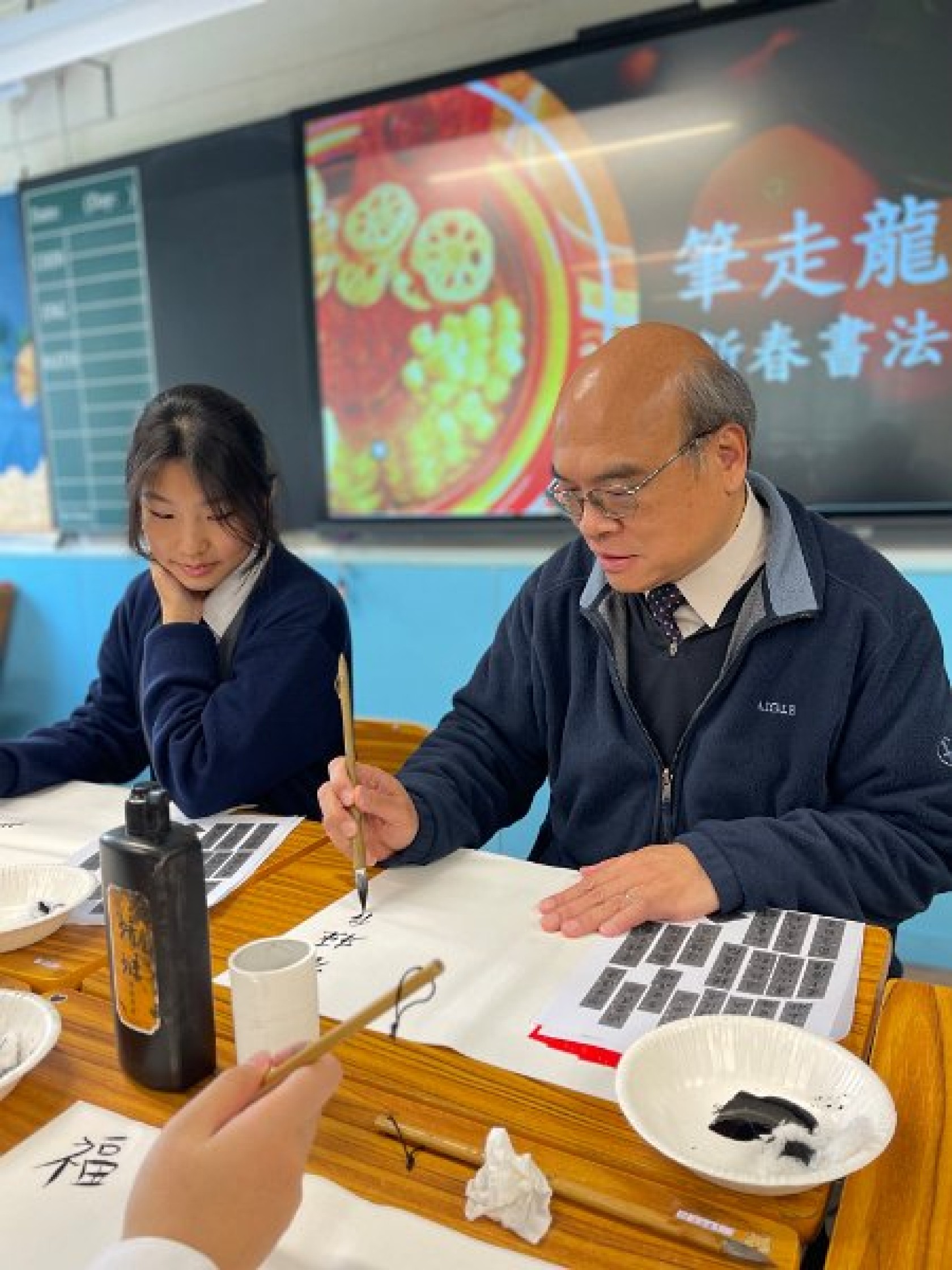 新春佳節之際,惠僑校園洋溢著濃厚的節日氛圍,師生齊聚一堂,熱情參與"書法日"活動。大家揮毫潑墨,以筆寄情,書寫對蛇年的美好祝福。曹校長親臨現場,與同學們一同執筆創作,在翰墨飄香中共創歡樂時光。中文科老師們全情投入,引導同學們將奇思妙想融入傳統書藝,彰顯了中華文化的深厚底蘊。