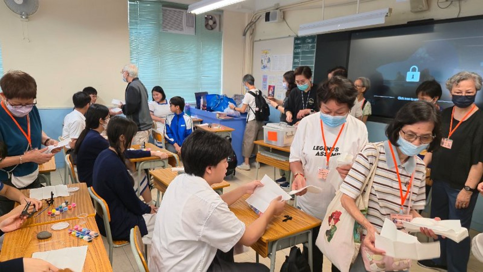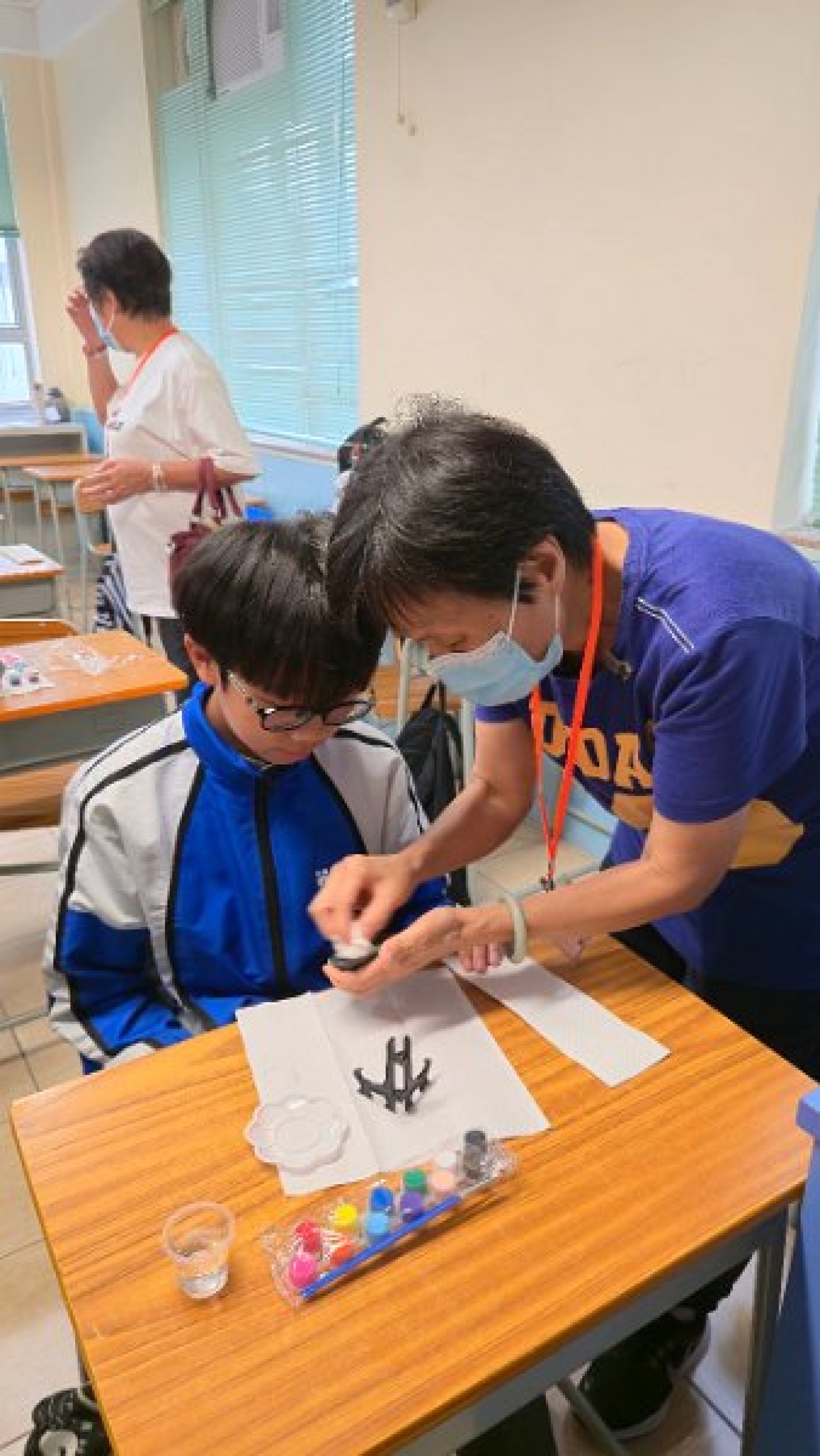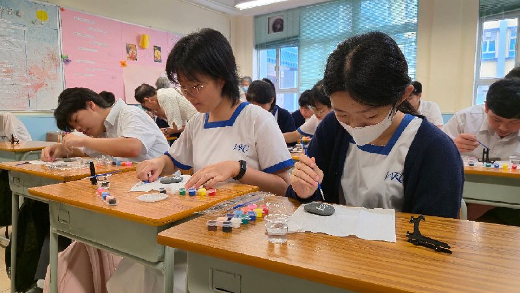 上星期五本校社會事務委員會與鄧碧雲長者中心合作,為同學們於考試後安排石頭畫義工活動。當日由一人位資深可頭畫大師教同學在石頭上起草繪畫, 在繪畫途中與長者互動交流, 建立一個共融和諧的環境。