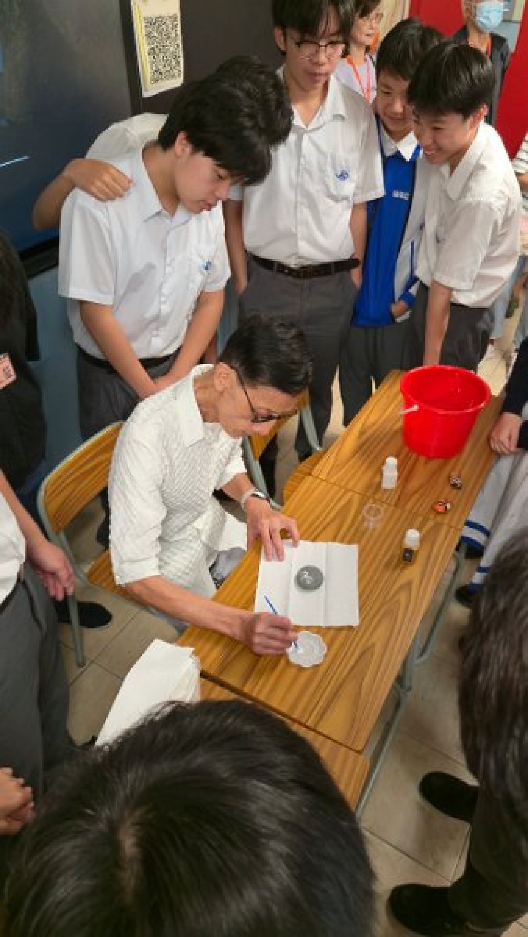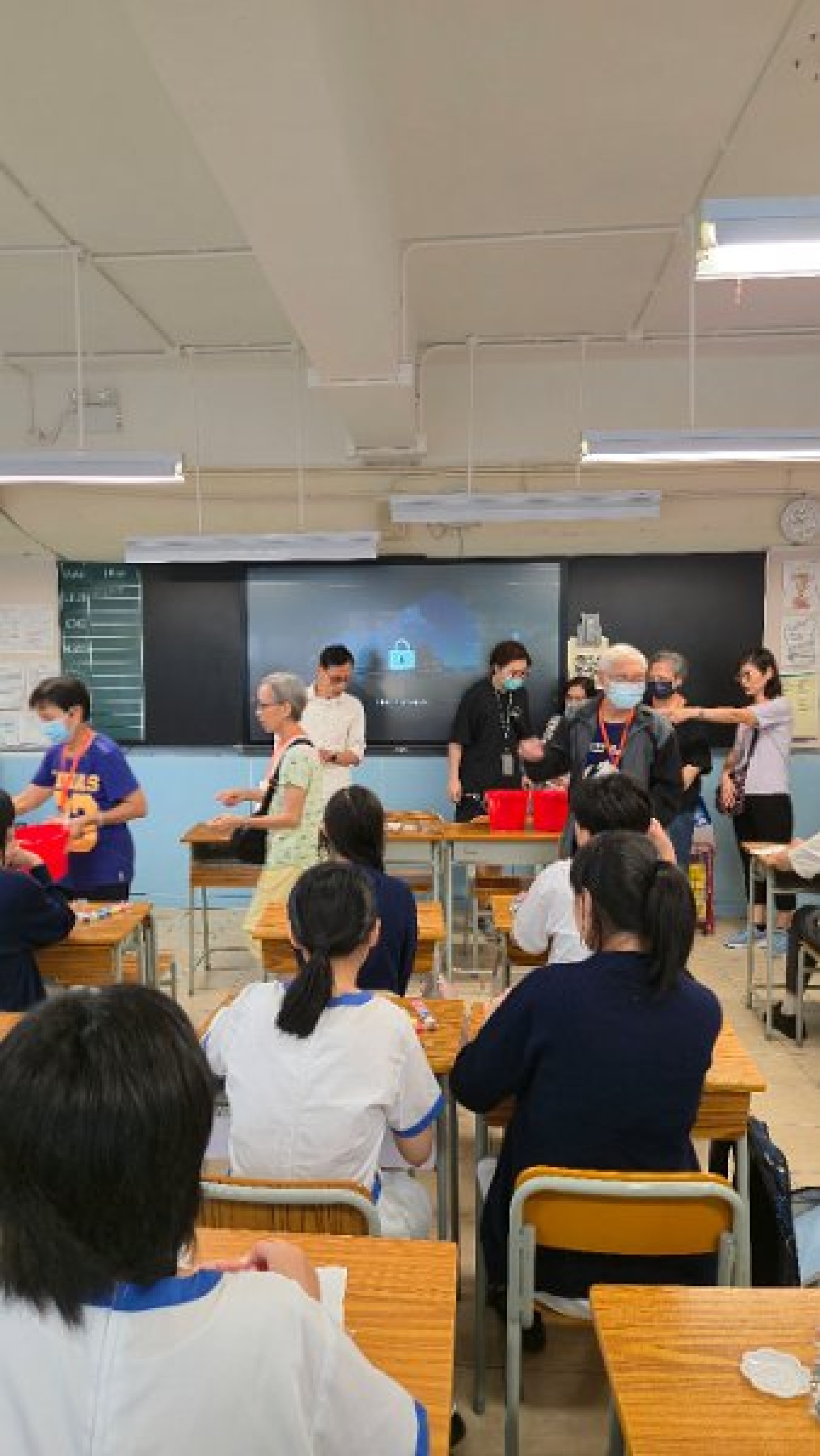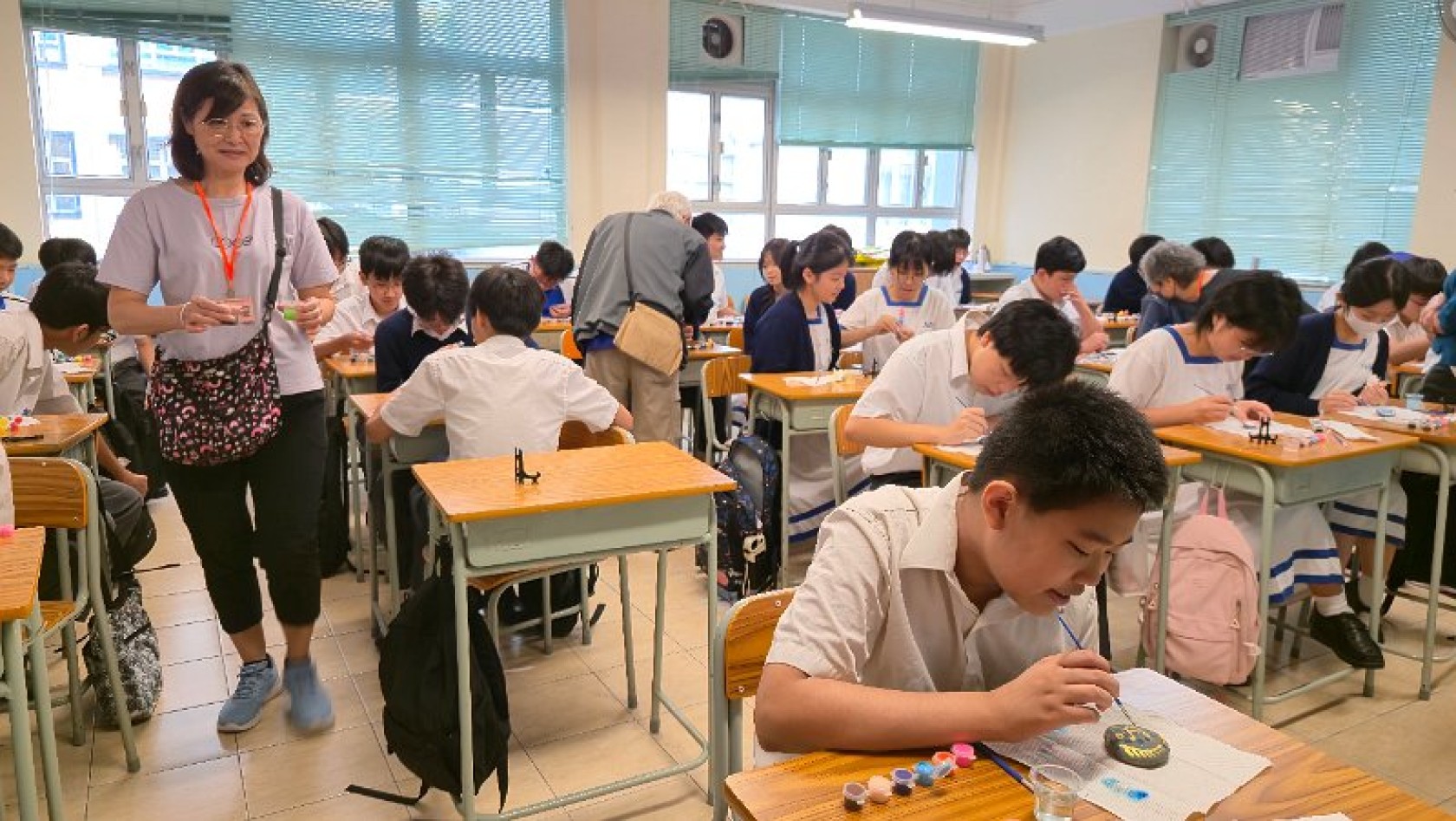上星期五本校社會事務委員會與鄧碧雲長者中心合作,為同學們於考試後安排石頭畫義工活動。當日由一人位資深可頭畫大師教同學在石頭上起草繪畫, 在繪畫途中與長者互動交流, 建立一個共融和諧的環境。