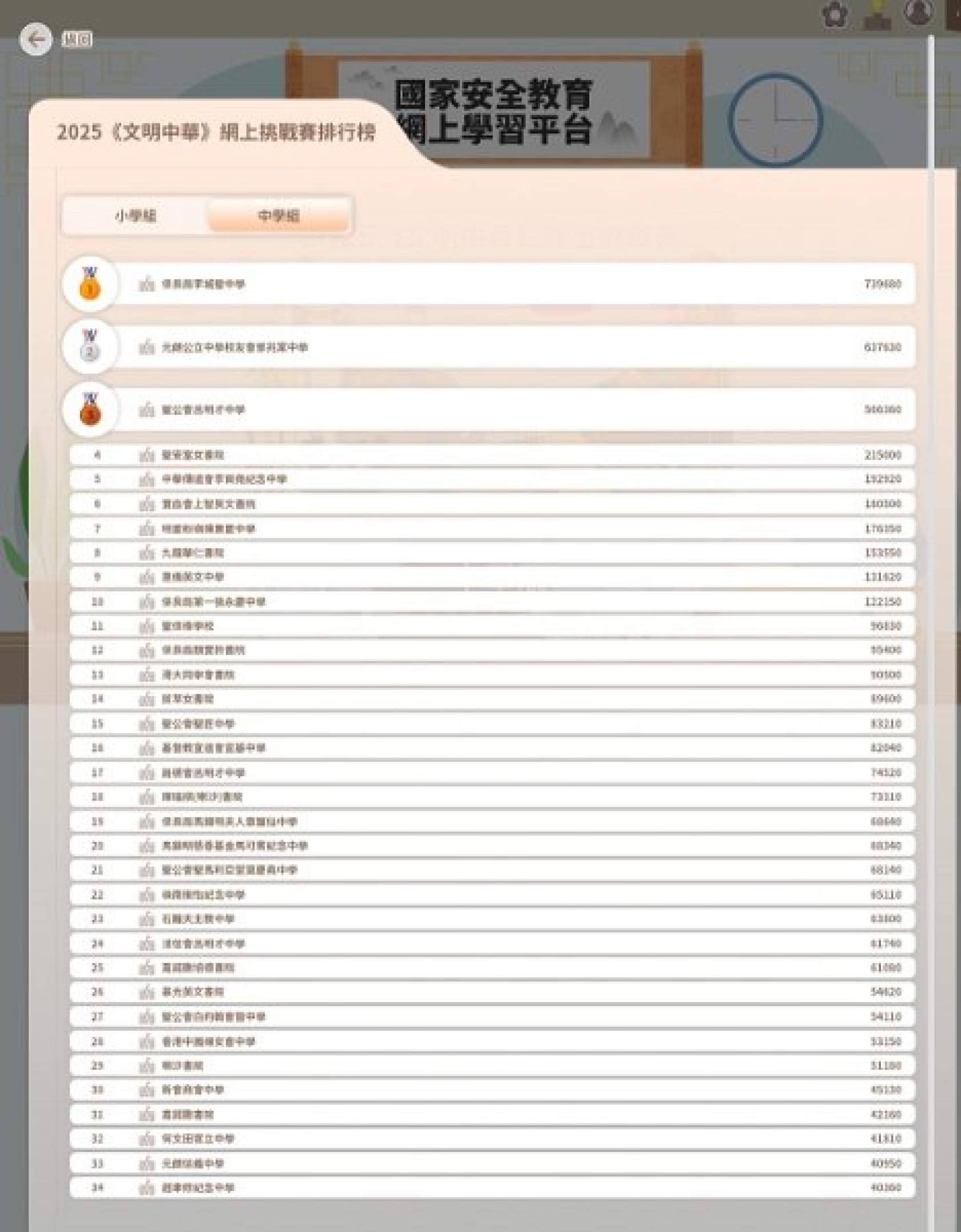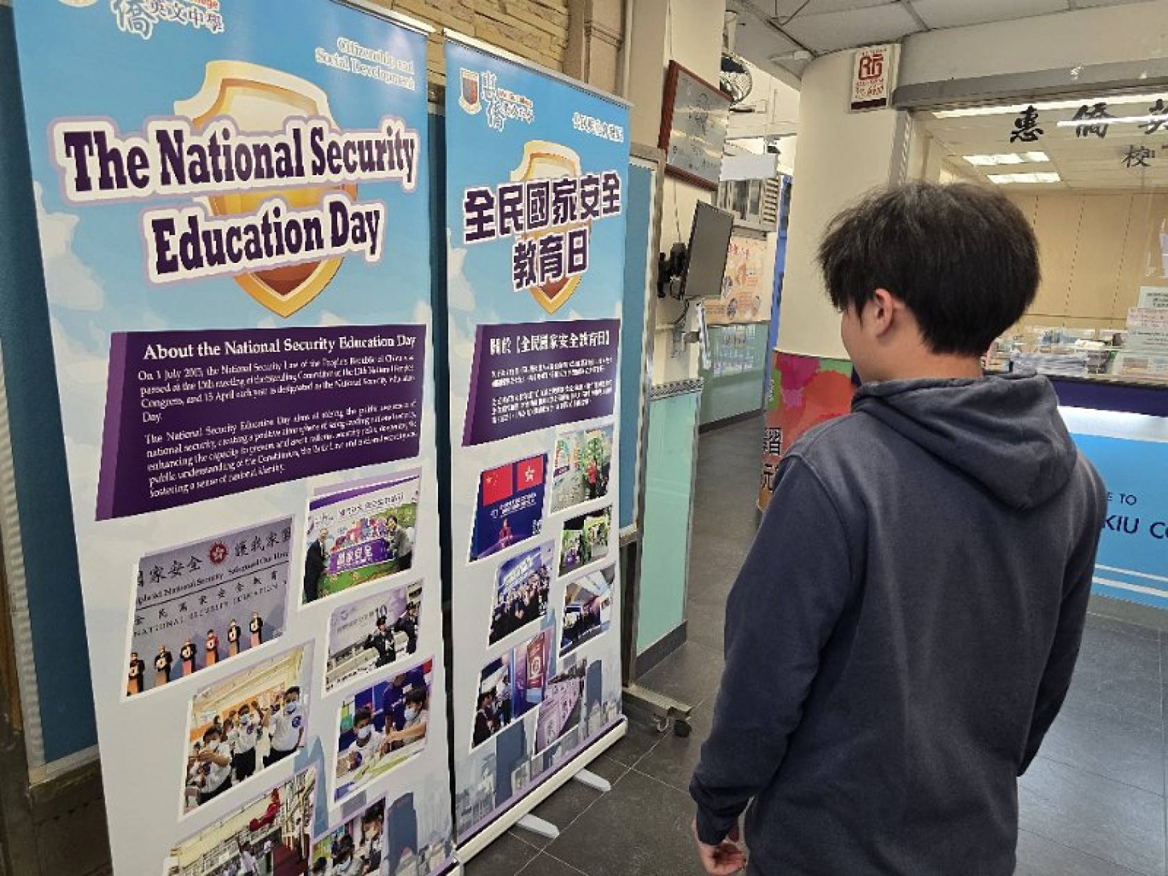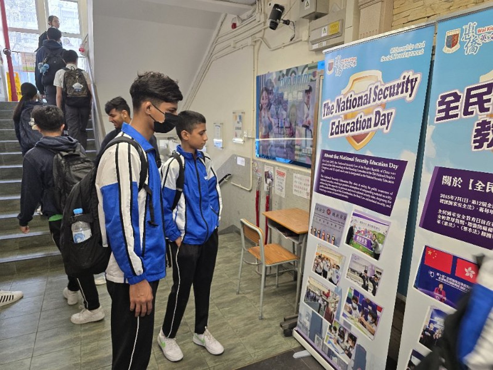 公民與社會發展科於今年的全民國家安全教育日先製作了中英文版的易拉架為華語及非華語同學介紹教育日的歷史。之後於4月15日的早會進行升國旗、奏唱國歌及由郭老師在國旗下的講話中分享國家安全與同學的關係。另外亦於整個星期邀請中一至中五全體同學參加由教育局舉辦的文明中華網上挑戰賽,最終更獲得中學組全港第九名的佳績。