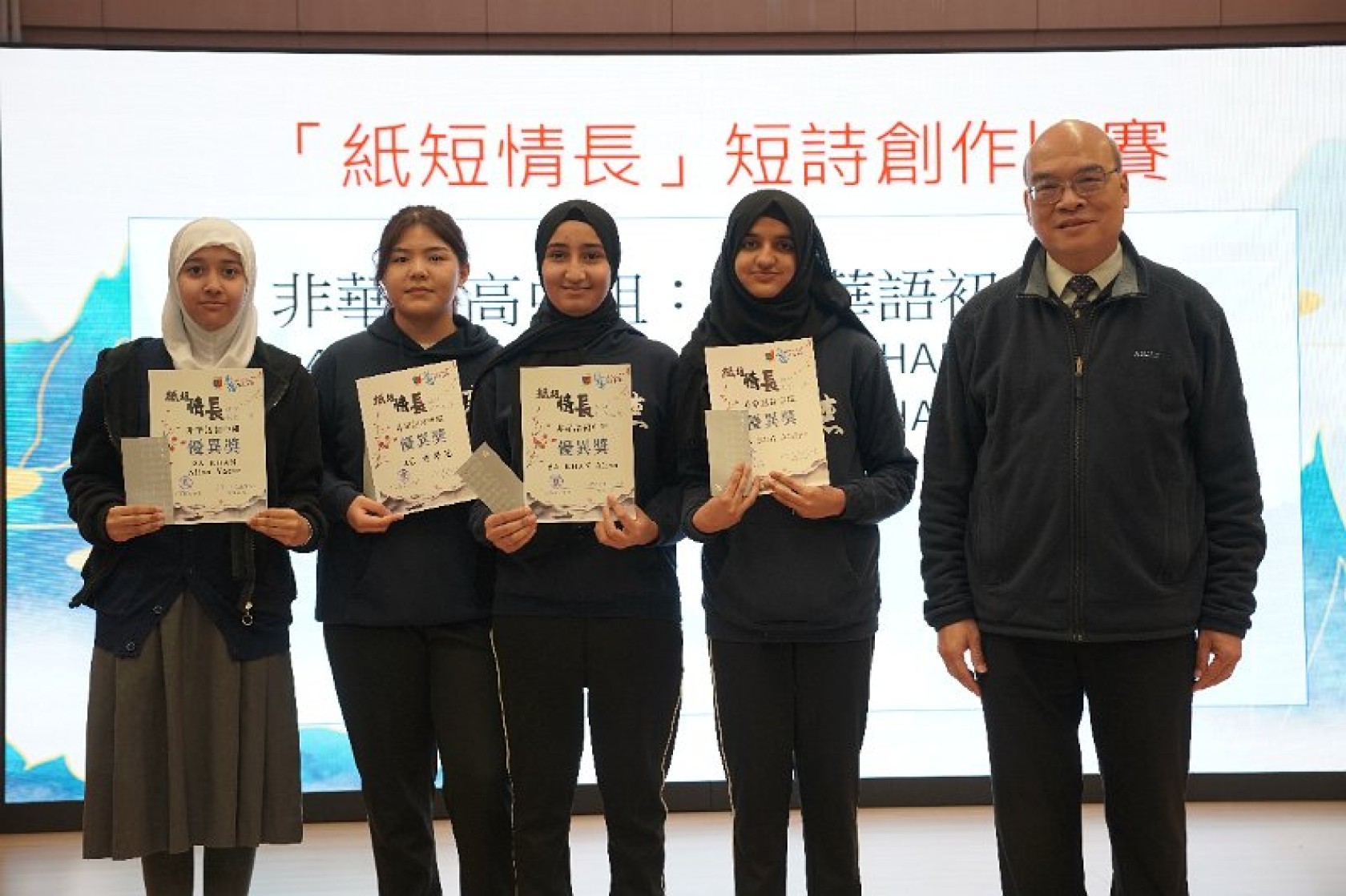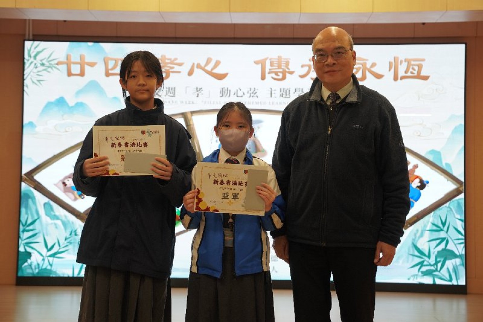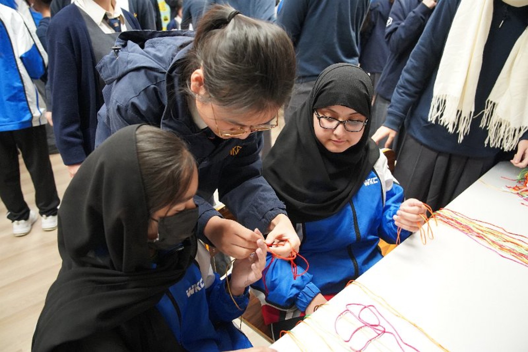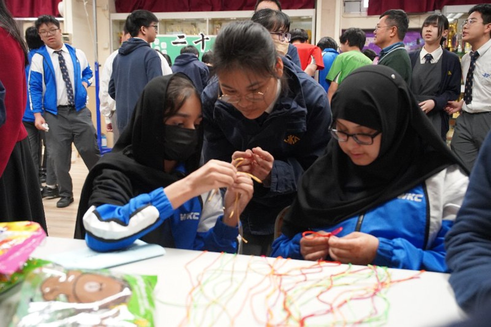 本年度中文週以「廿四孝心、傳承永恆」為主題,透過多元活動,深化學生對孝道價值觀的理解與實踐,並促進非華語學生與華語學生共融。課堂講授二十四孝故事,學生領略孝道文化精髓;「紙短情長」短詩創作比賽中,學生以詩寄情,字字珠璣,抒發對父母的感恩之心。週四午膳期間更舉行孝道文化知識攤位遊戲,例如「二十四孝故事對對碰」、「成語知識」、「孝言孝語大配對」,當中「結繫親恩」最受歡迎,學生親手編織中國結,贈予長輩,以物傳情,孝道精神內化於心。週五早會上,非華語中華文化大使分享巴基斯坦等國家的孝道精神,此外,大使們更自編自導自演,以生動的影片形式傳揚孝道,將傳統美德融入生活。活動中,非華語學生與華語學生共同參與,互相交流,增進理解,促進文化共融。活動豐富多彩,寓教於樂,學生於知、情、意、行四方面皆有所得,孝道價值觀深植心田,傳統文化薪火相傳,成效斐然。
