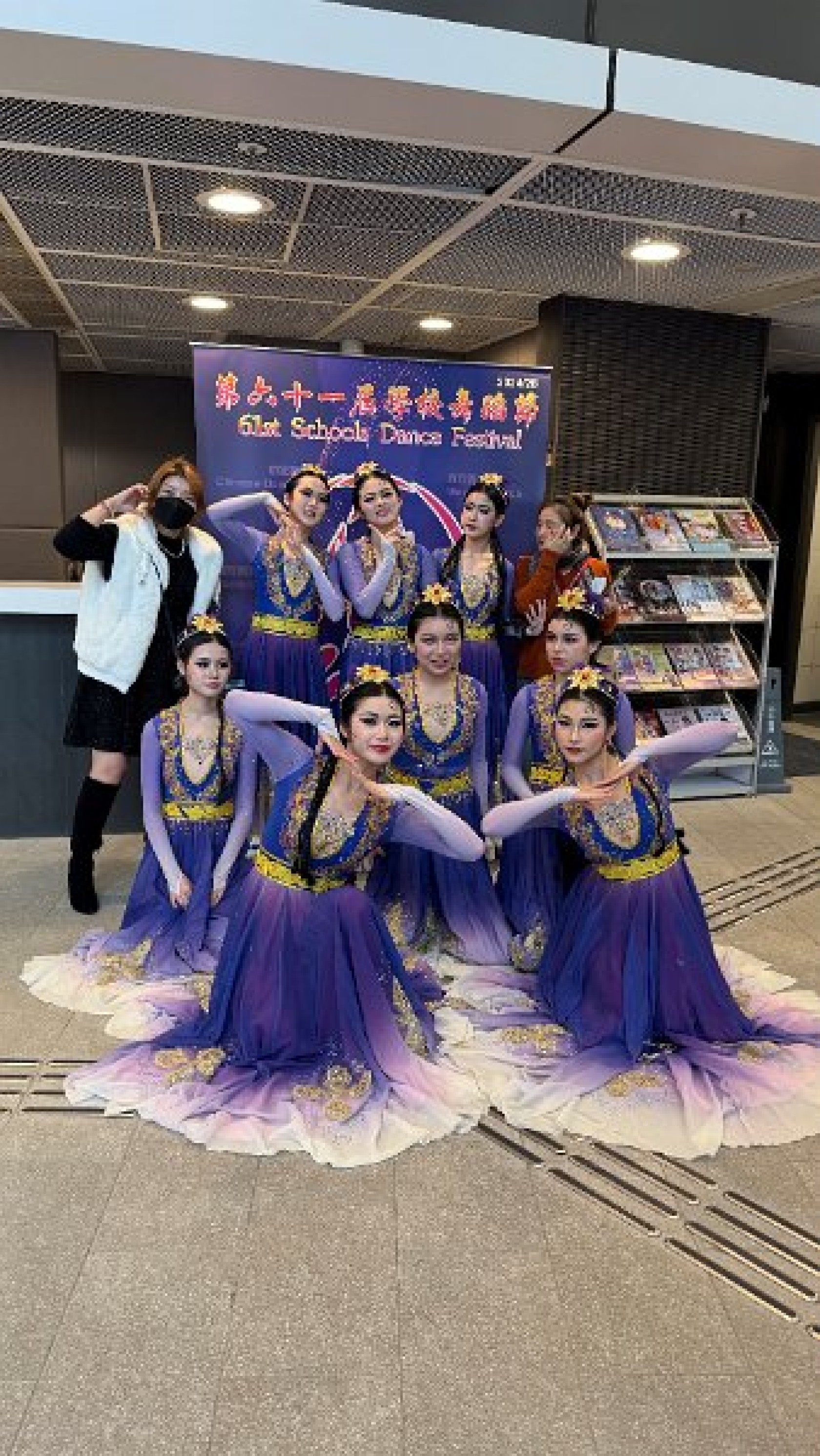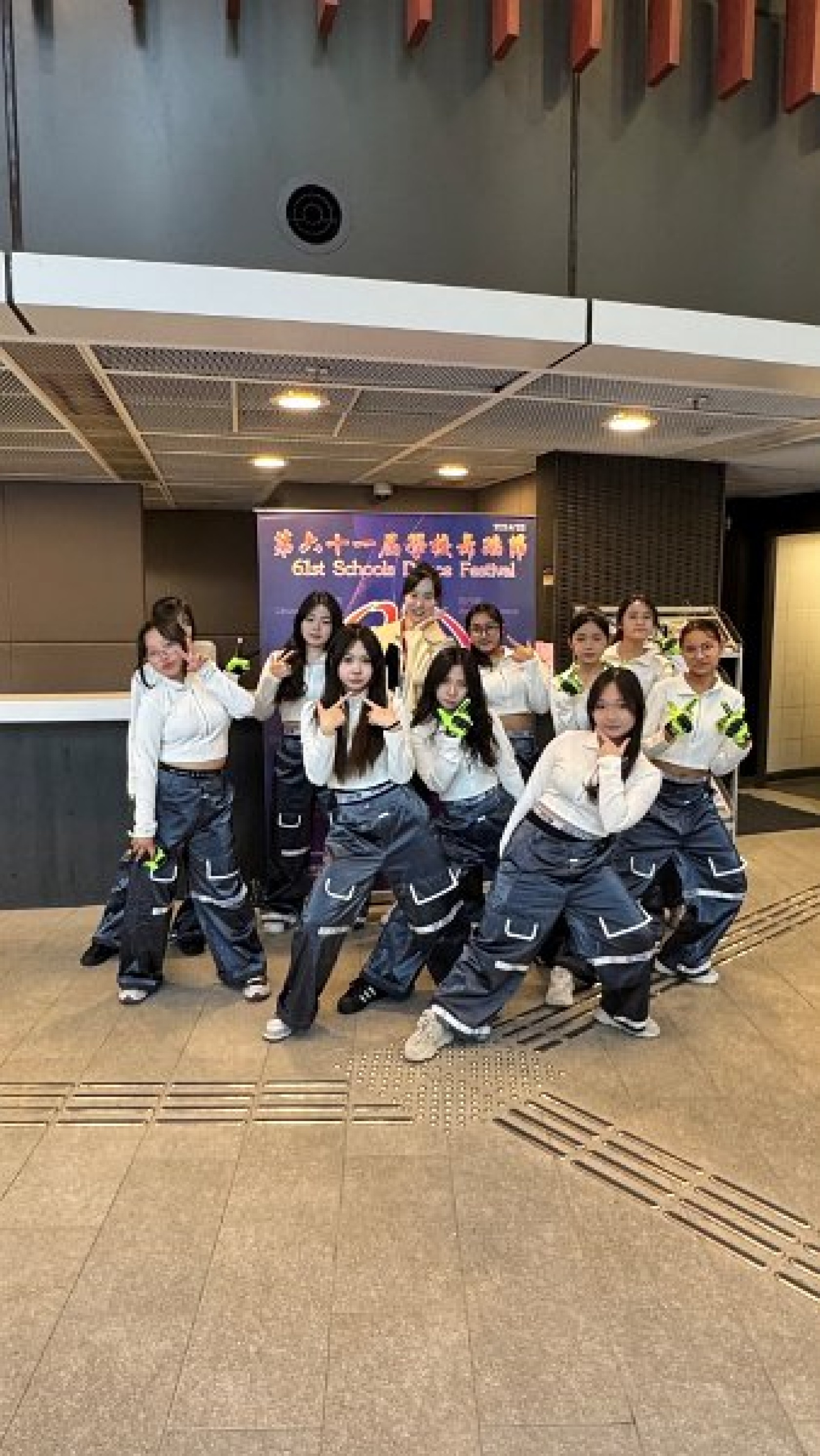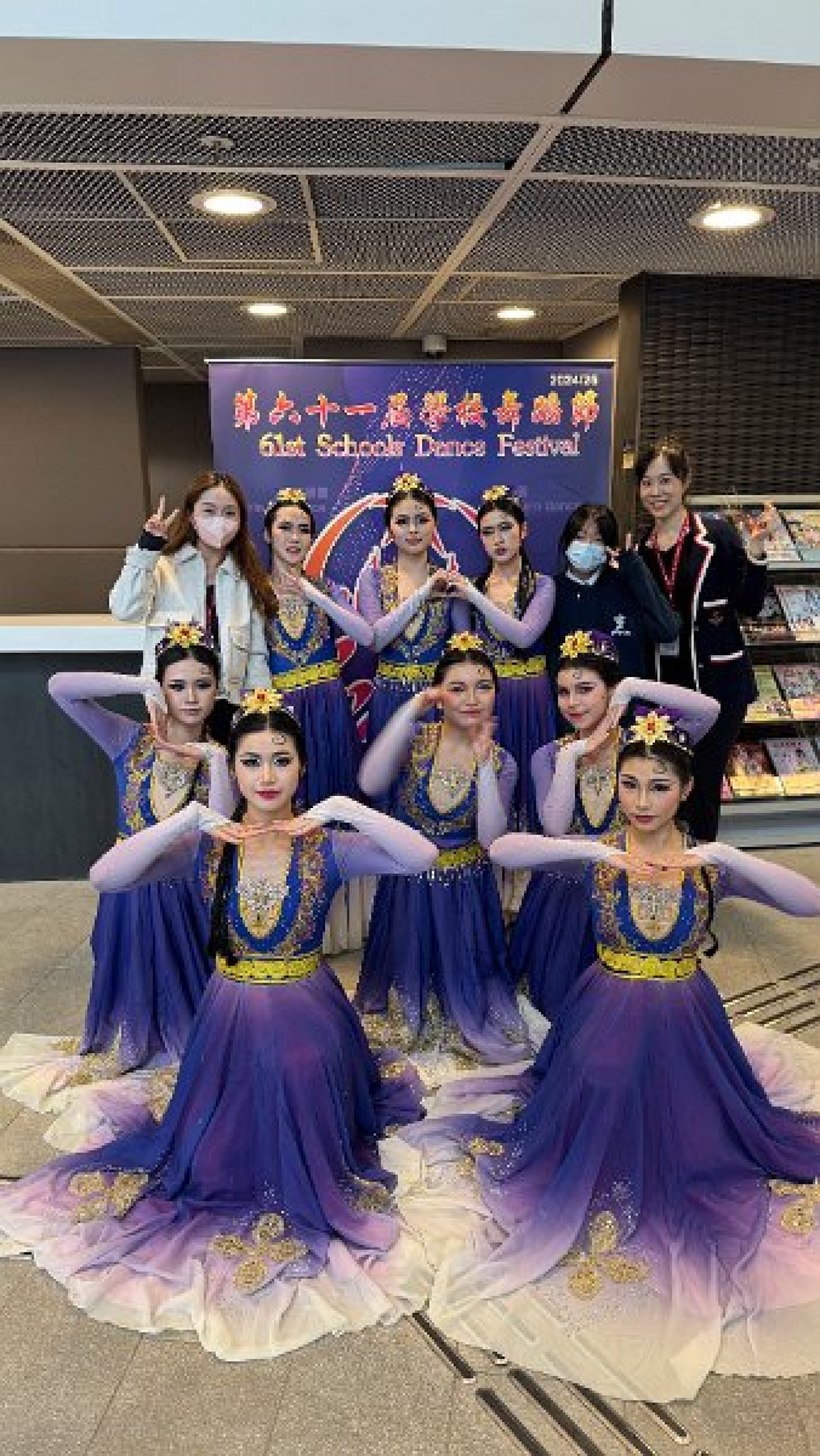 本校舞蹈隊19位同學於第61屆學校舞蹈節取得甲等(中國舞組)和乙等(街舞組)的好成績。 中國舞《綻放》將維吾爾族姑娘比作明艷亮麗的花朵,徐徐綻放;而街舞《Wake Up》利用剛柔並濟的動作,展現了女性的覺醒。評判們對我校同學對於舞蹈風格的把握加以讚賞,更肯定了她們在比賽中的熱情投入及團隊精神。
