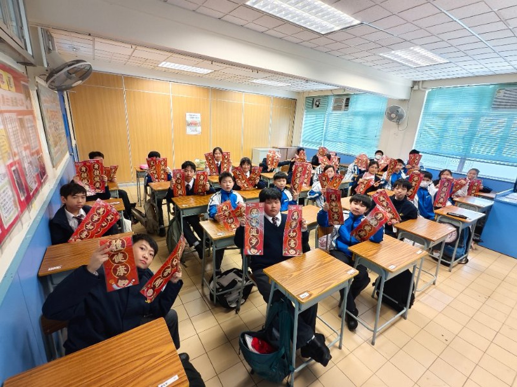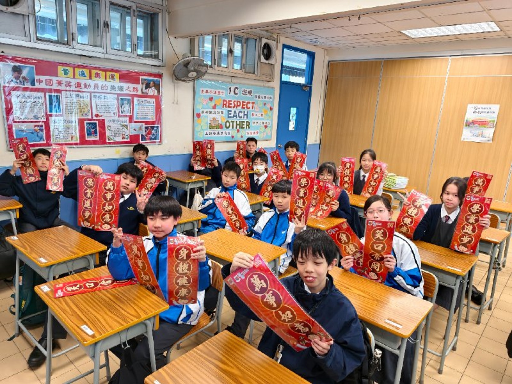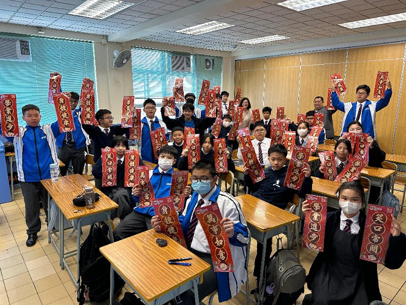 新春將至,為表我們對各街坊表達敬意,本校社會事務委員會主辦新年派揮春義工活動,活動於二零二五年一日廿日下午舉行,中一同學送上新年揮春送給本區內的居民。此活動也發揮學生服務社會的精神,使同學能建立自信心,令人生更健康積極。