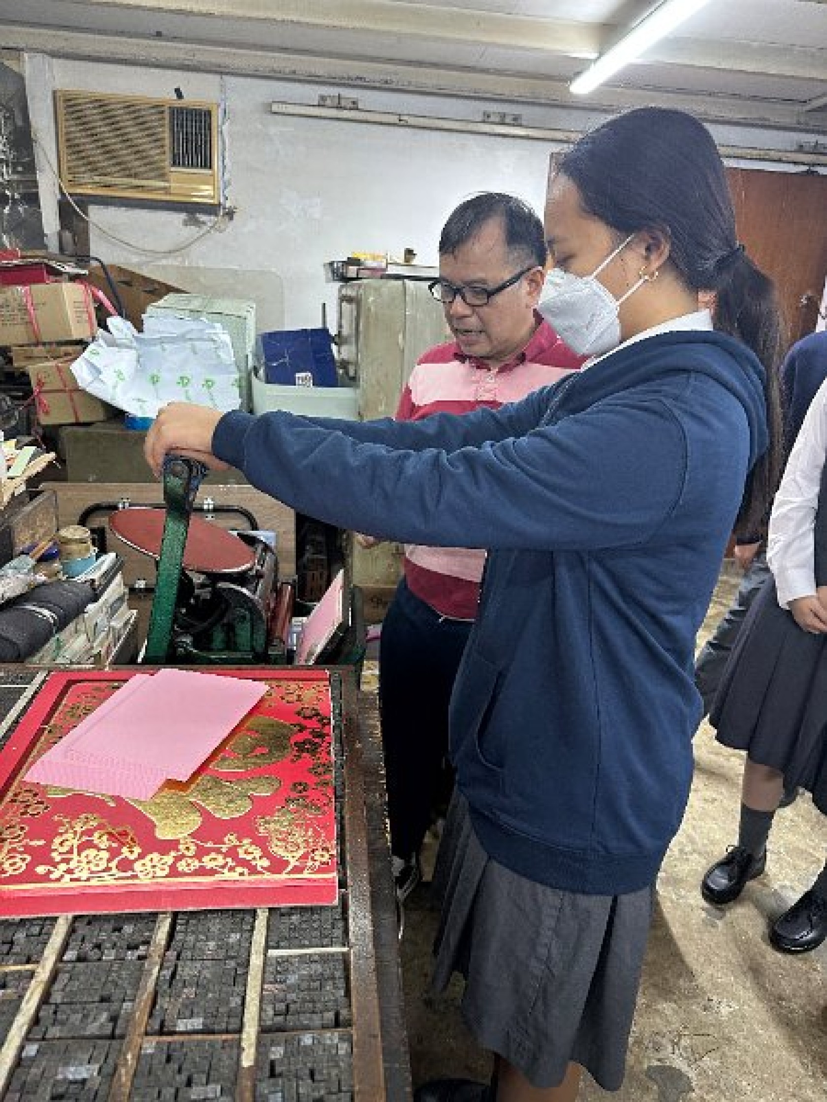 活字印刷是中國古代四大發明之一,擁有過千年歷史,也曾為香港的印刷業寫下輝煌的一頁。 為讓同學更了解更多,我們於12月13日舉辦了一個活字寶印刷工作坊,導賞員同時也是上環光華印刷公司第二代店主任先生,他從事印刷行業已超過五十多年,任先生分享見證香港印刷業 的轉變及興衰史,還熱心講解活字印刷的模具及示範。 過程中,每位同也有製作了獨一無二的「活字寶記事簿」,簿上印有學校和同學的名字,這是透過多個字粒、神奇凸字粉和活字印刷術而製作,可說十分珍貴。