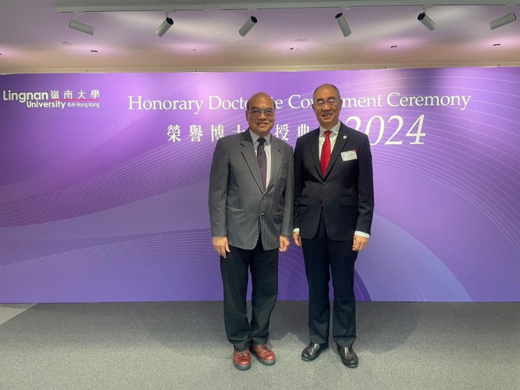 本校兩位同學出席了由丘成桐教授主講,題為「數學之美」的嶺南大學大學論壇 。丘成桐教授現任清華大學丘成桐數學科學中心主任,並為哈佛大學榮休教授。是次講座中,丘教授探討了自然界的美如何啟發基礎數學研究,並講解幾何學的優美理論及其在各領域的重要應用。曹校長及本校兩位同學與嶺大副校長國際著名數學家陳漢夫教授拍照留念。