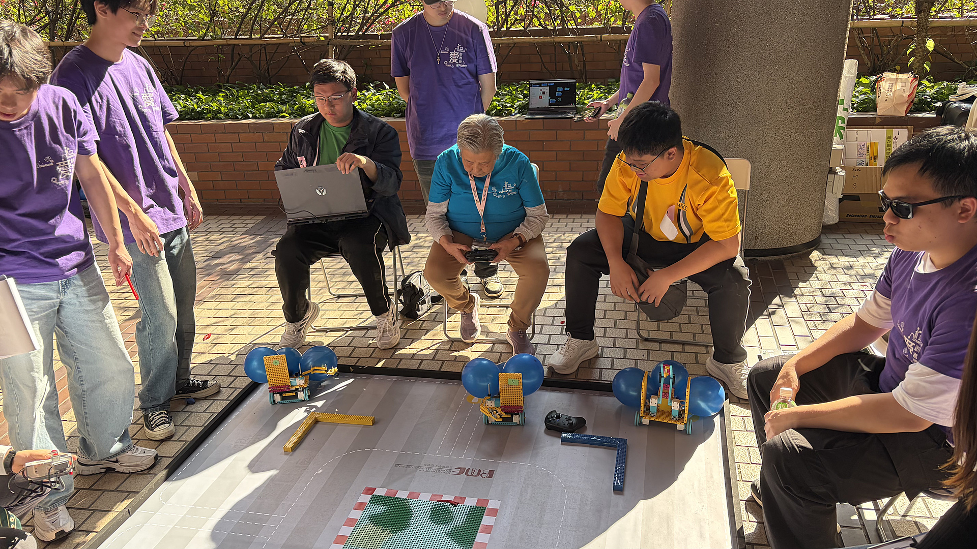 本校STEAM隊伍參與香港理工大學舉辦的「愛.創耆樂」機械車大賽,協助提倡促進跨代共融及以玩樂益智遊戲預防認知障礙症。比賽當日,本校同學與長者們合作,同學耐心教導長者如何操作STEAM隊伍精心設計的機械車,並與長者共同商討戰略,完成任務。