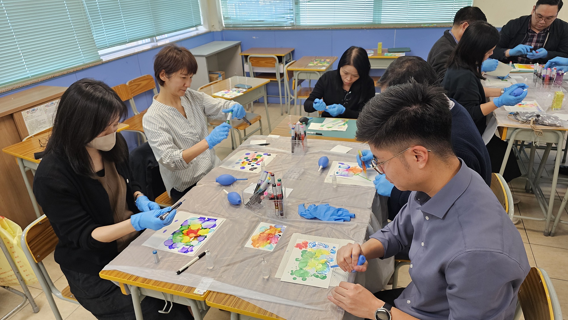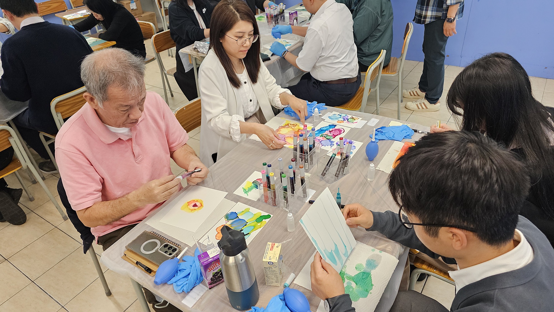 為加強新入職與資深老師的了解及溝通,教師專業發展小組安排是次工作坊,透過每人繪畫兩張抽象畫作,先接納整全的自己,再通過各人最後的分享,開啟新舊同工溝通的橋樑。