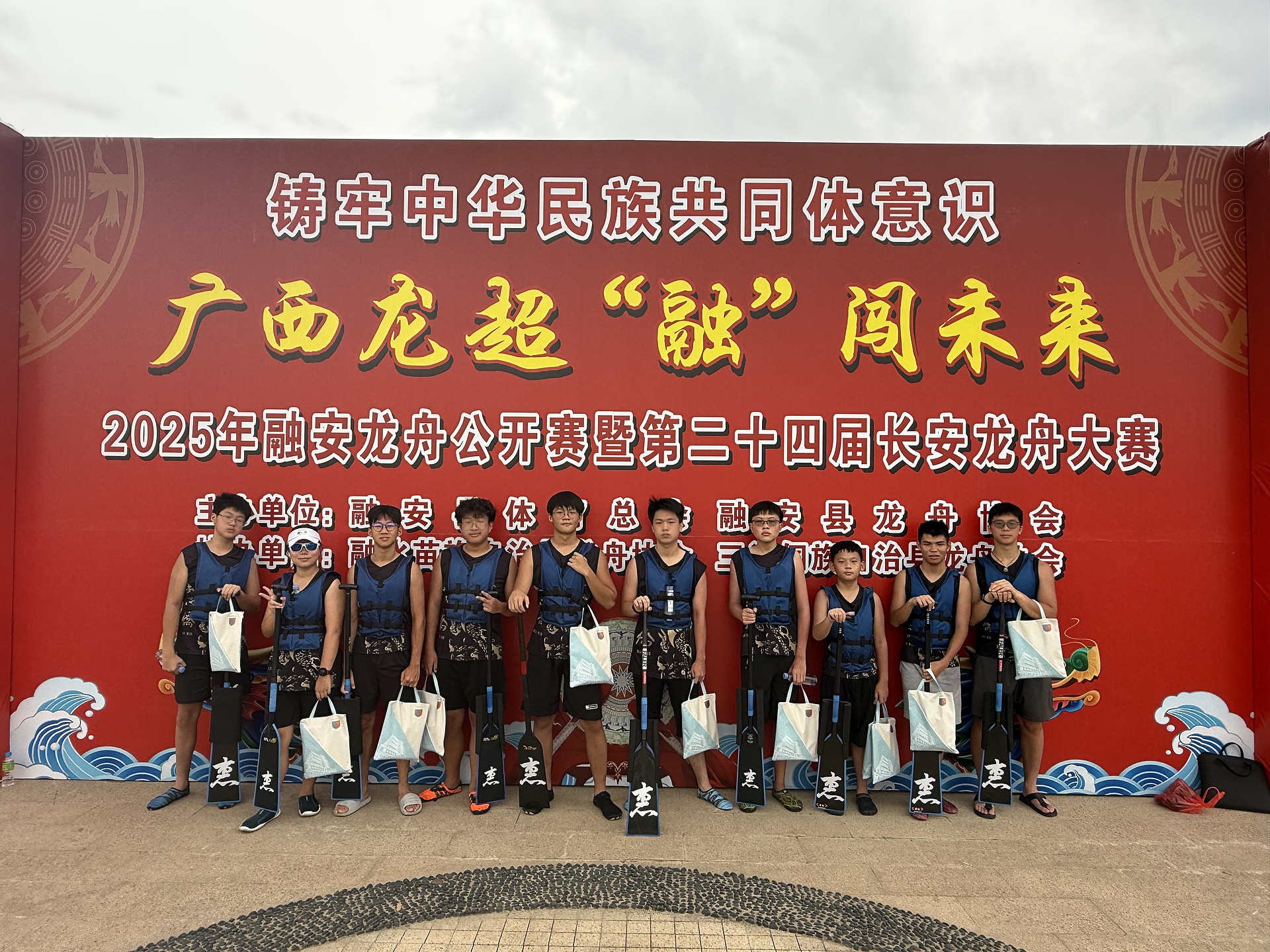 本校早前赴廣西融安參加「超龍大賽」。賽前,本校師生與長安中學開展聯誼,透過互贈紀念品及同江訓練,深耕兩地情誼。賽事吸引全國 225 支隊伍同場競技,場面壯觀。此行不僅讓學生領略龍舟文化的團結精神,更承接起「新掌舵人」的傳承使命,深化對傳統文化的熱愛。