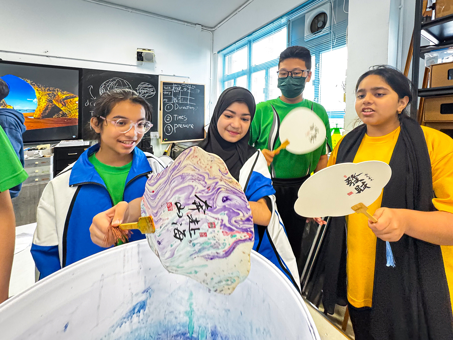 在10月28日的午間多元活動中,主題為「浸染中式扇」。此次活動旨在促進團結和正面價值觀,鼓勵健康的休閒活動,與會者享受藝術療癒的過程,營造出愉快和包容的校園氛圍。