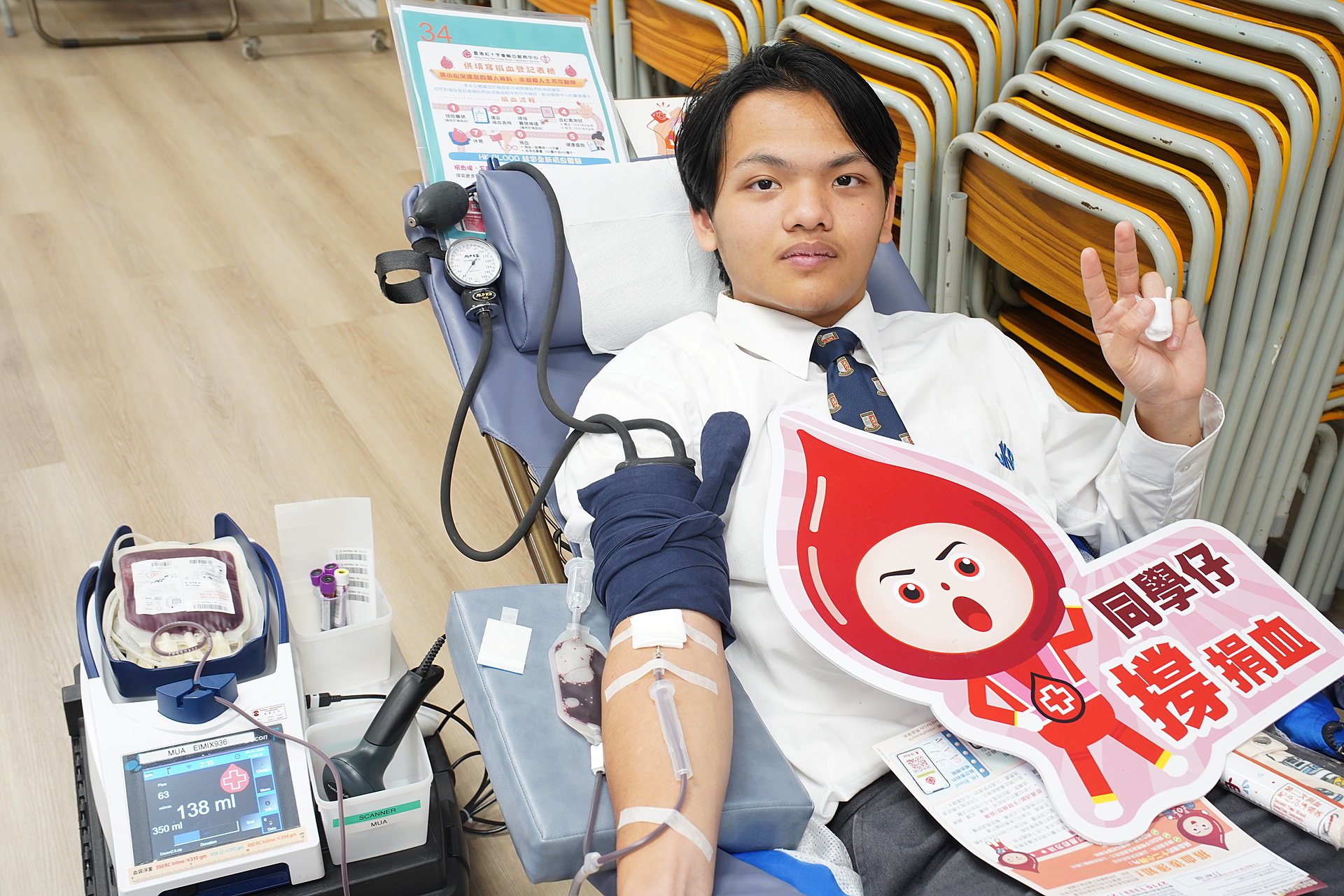 3月9日為本校本學年的捐血日,紅十字會安排了專業的人員到本校為本校師生提供捐血服務,當日有三十多名師生參與,其中有不少同學是第一次捐血,亦有教職員每年都參與,秉承捐血救人,熱心助人的精神,亦可以身教同學要有同理心。