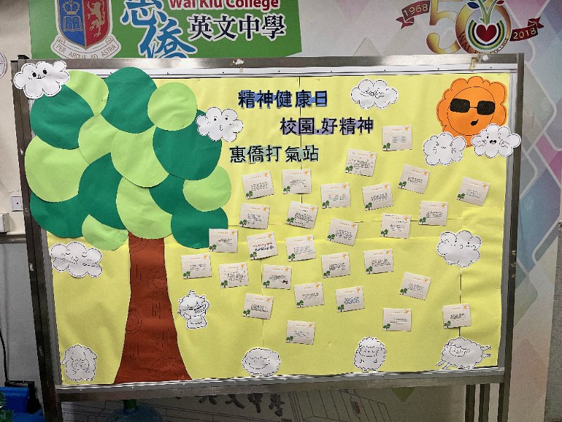 為關注全校師生的精神健康,以及讓同學與老師都能認識更多精神健康的資訊,輔導組特在11月30日舉辦了精神健康日。當日,每班學生都透過寫打氣卡的方式為全校同學加油打氣,並在隨後張貼在展板上,希望同學們能夠接收到來自朋輩的鼓勵,變得更為積極正面。當天也有輔導心理學家徐sir為全校師生廣播,講解精神健康,以及宣揚向身邊人求助的資訊,希望大家不要忽視或畏懼精神健康問題,也要學懂如何紓解壓力,幫助自己。
