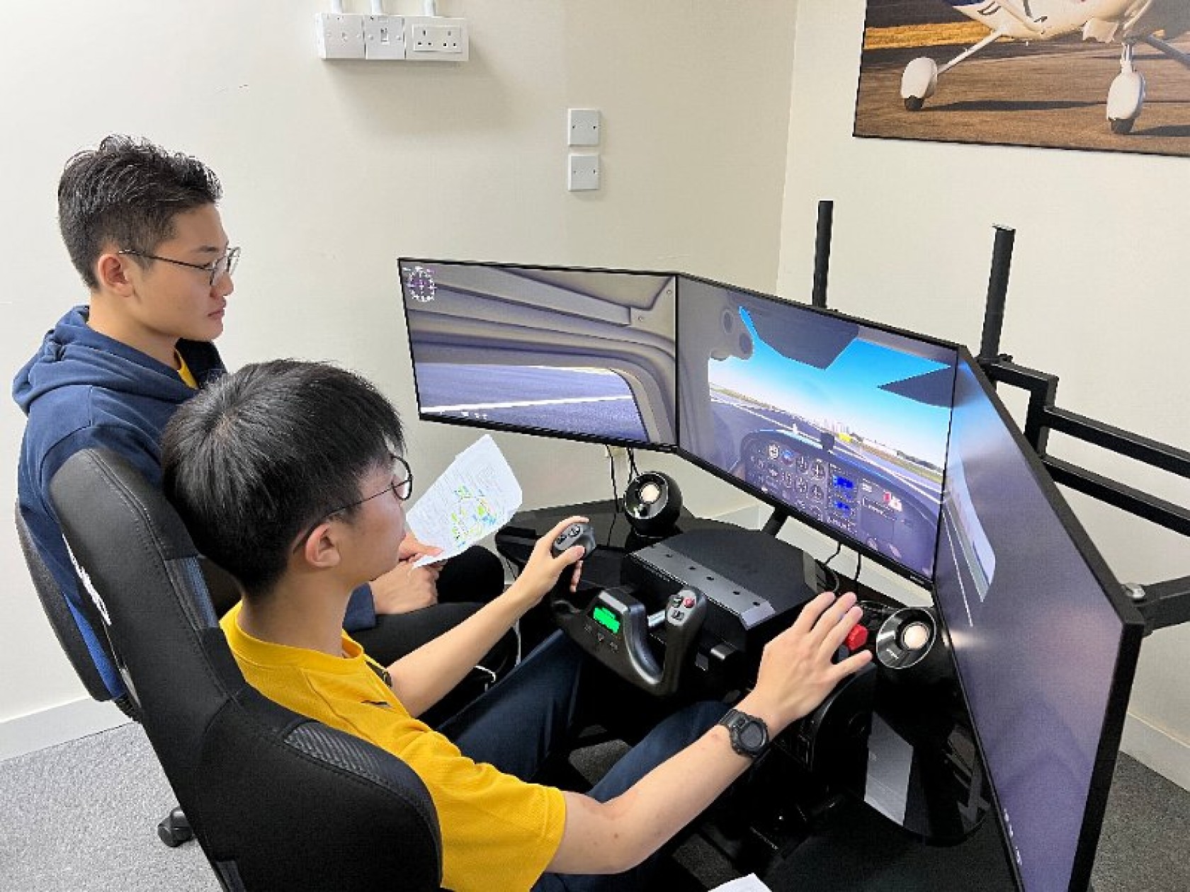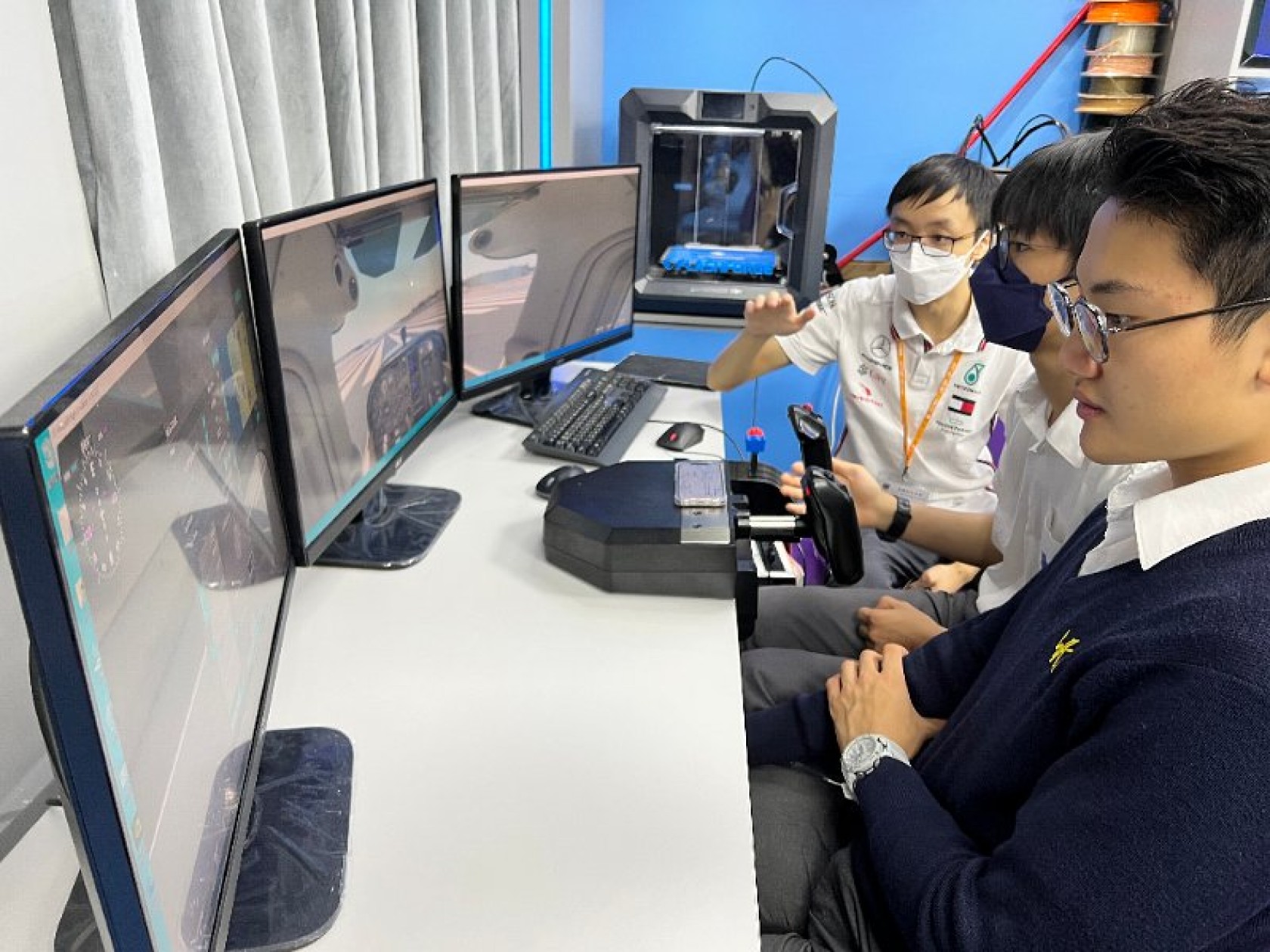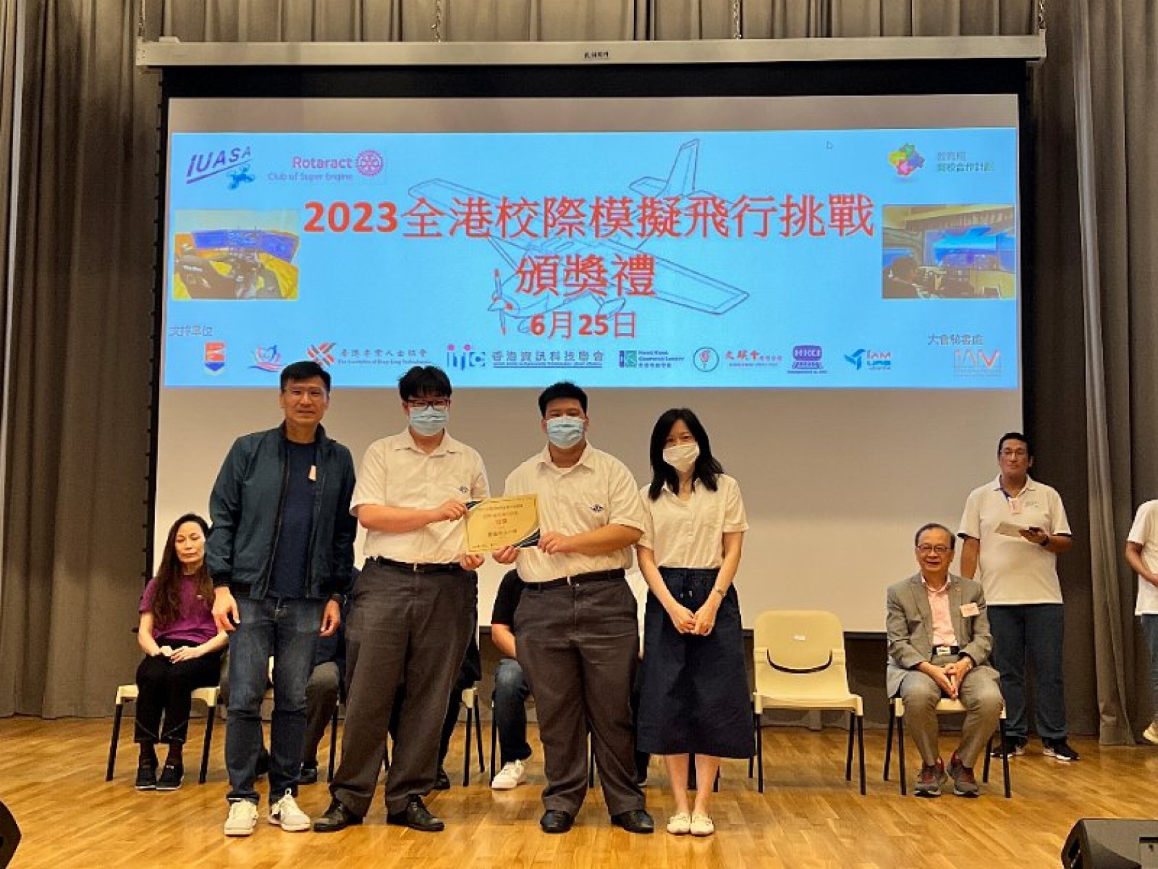 本校STEM隊伍參與教育局商校合作計劃「2223全港校際模擬飛行挑戰賽」。評審十分嚴格,參賽者除了展示穩定及精準的駕駛技術,更需要爭取以最短時間完成航道,方能角逐獎項殊榮。同學充分發揮嫺熟的技巧,表現優異,本校5C劉志遠和余俊良同學大展所長,奪得高中組最佳模擬器操控賽亞軍及隊制全能賽季軍。而3B班林燚及和陳俊樂獲得初中組最佳飛行時間冠軍。