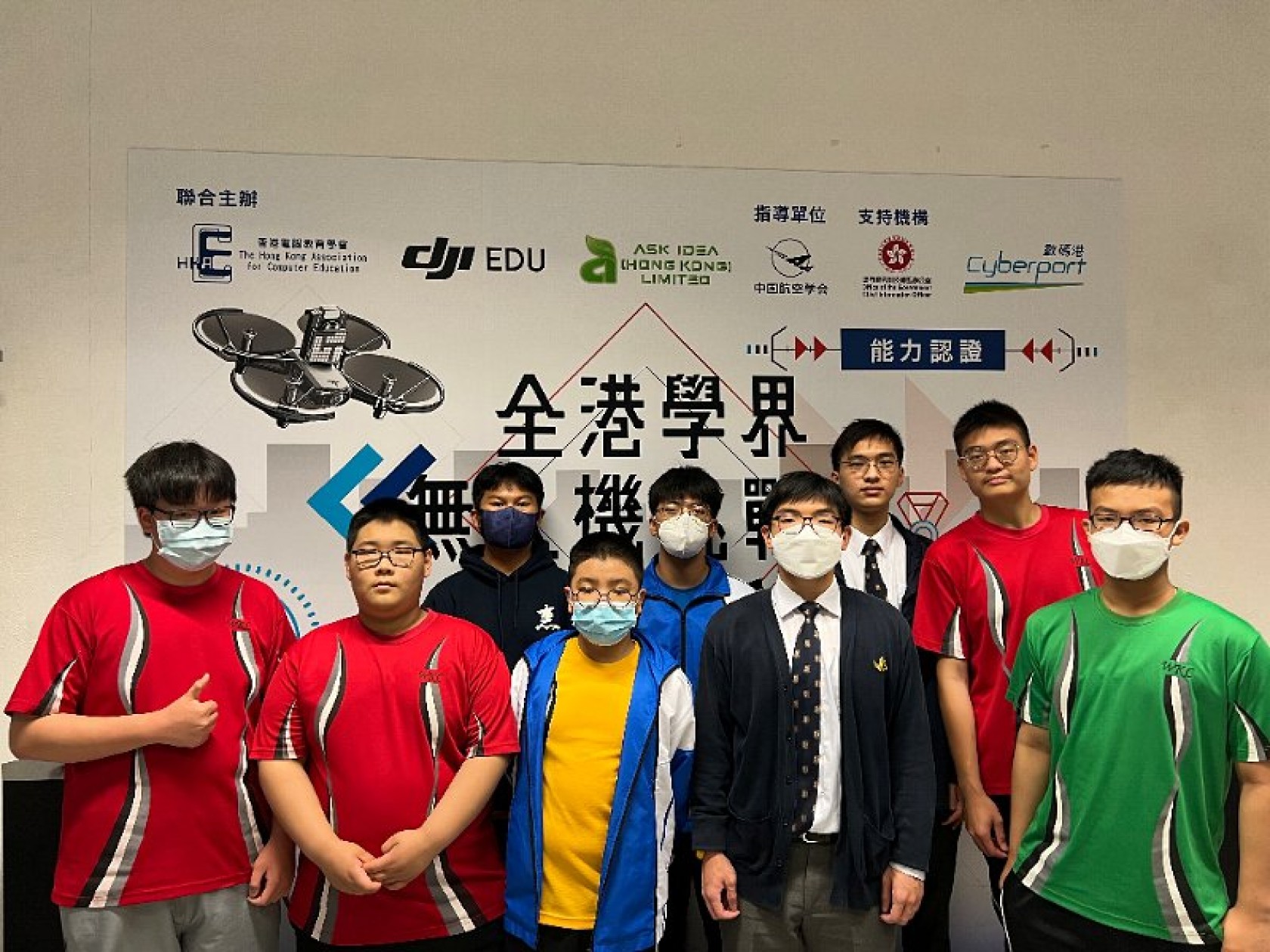 要培養學生的解難能力,仰仗於不同的知識技能的靈活運用。有見及此,學生透過參與全港學界無人機挑戰賽,除了應用基本的程式邏輯外,更需要結合數學的知識解析問題,以及講求手眼協調的飛行技術才能完成整個賽事。同學先需要手動操控無人機,逃離邊長僅2米的立方體迷宮;其後學生必須自設編程,讓無人機自動飛過六個障礙物,完成編程障礙賽。在兩項比賽中,同學們表現優異,充分展現出協作、溝通及解難能力,並獲得一級認可資格,值得嘉許。