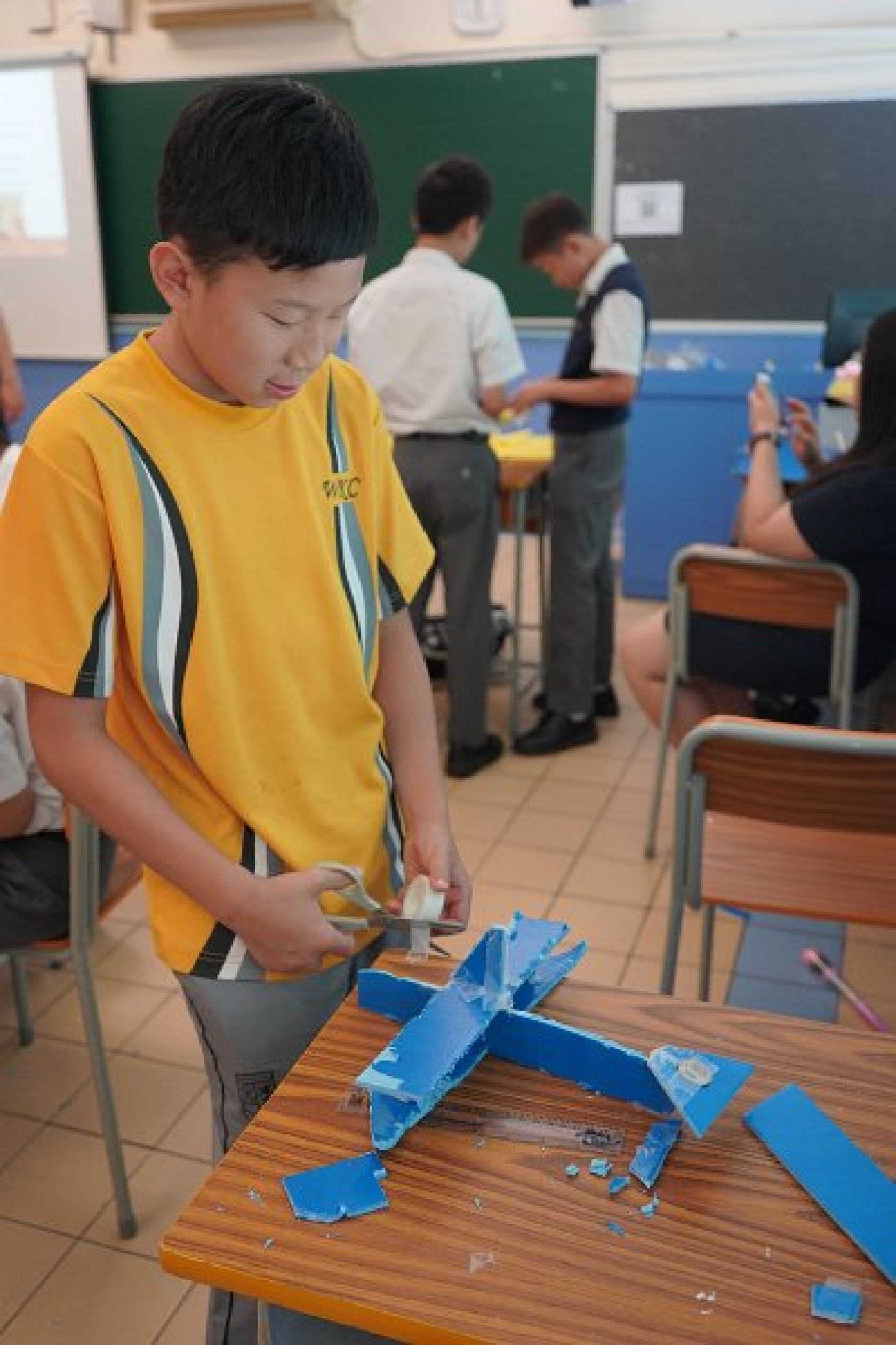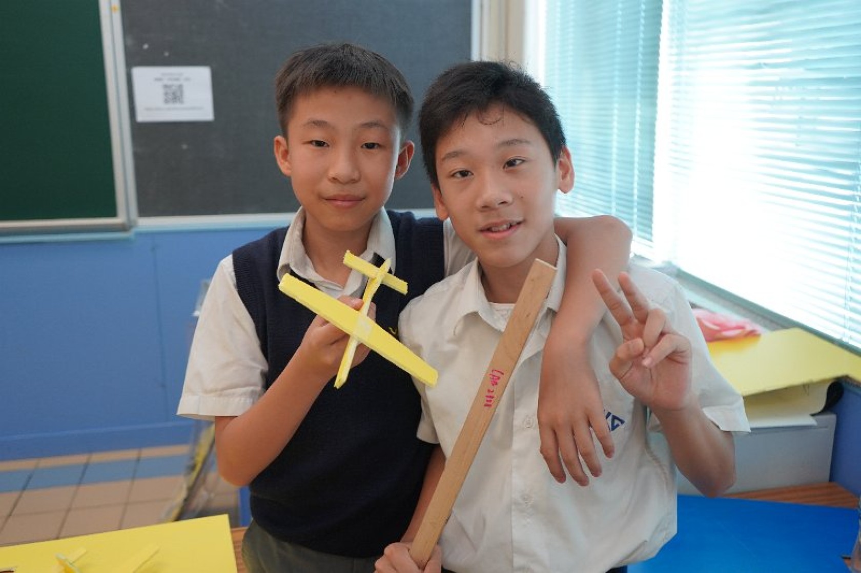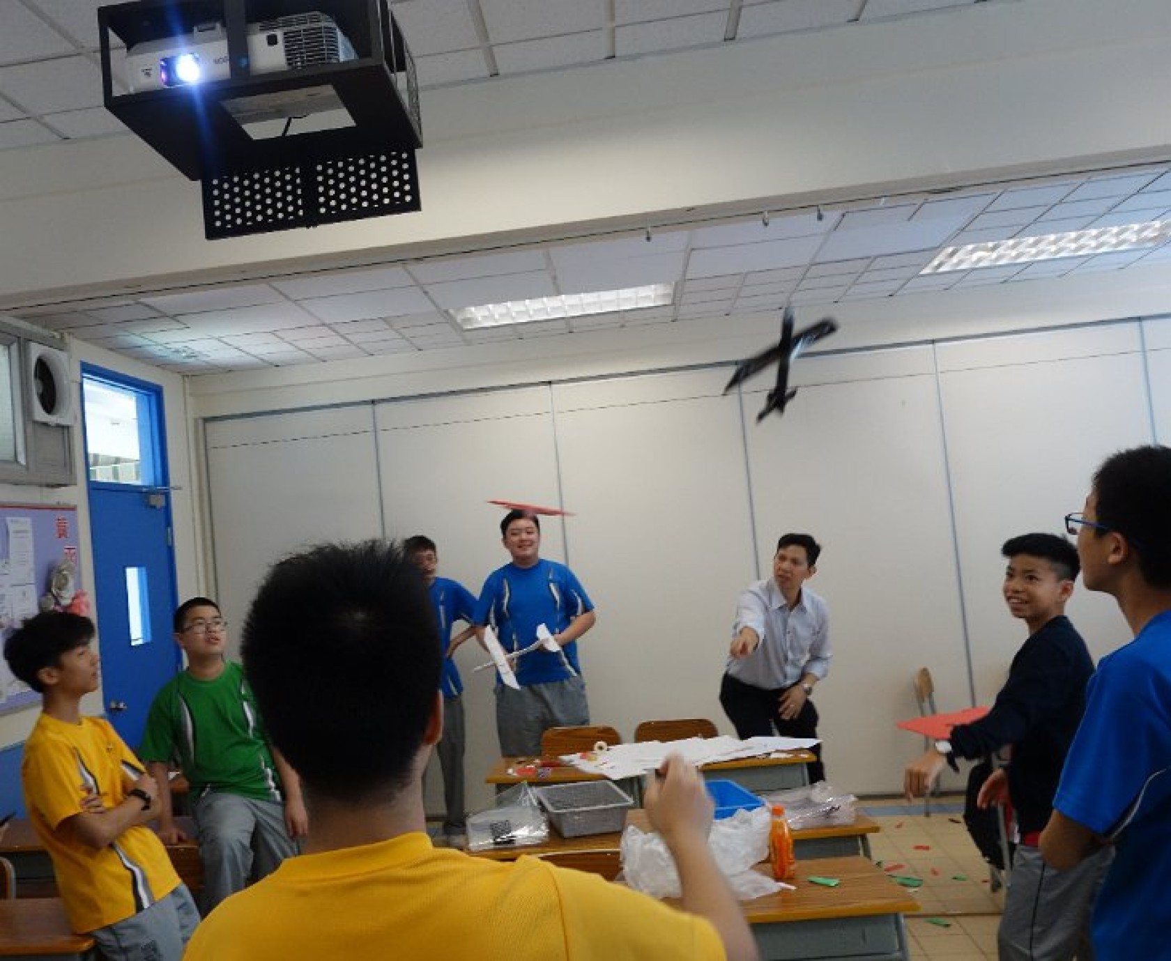 本校透過不同學習經歷,讓中一及中二級同學學習飛機飛行原理,動手設計及製作滑翔機,讓同學發揮創意,反覆實驗,以期得到飛行距離更遠。透過實踐理論,寓學習於娛樂。