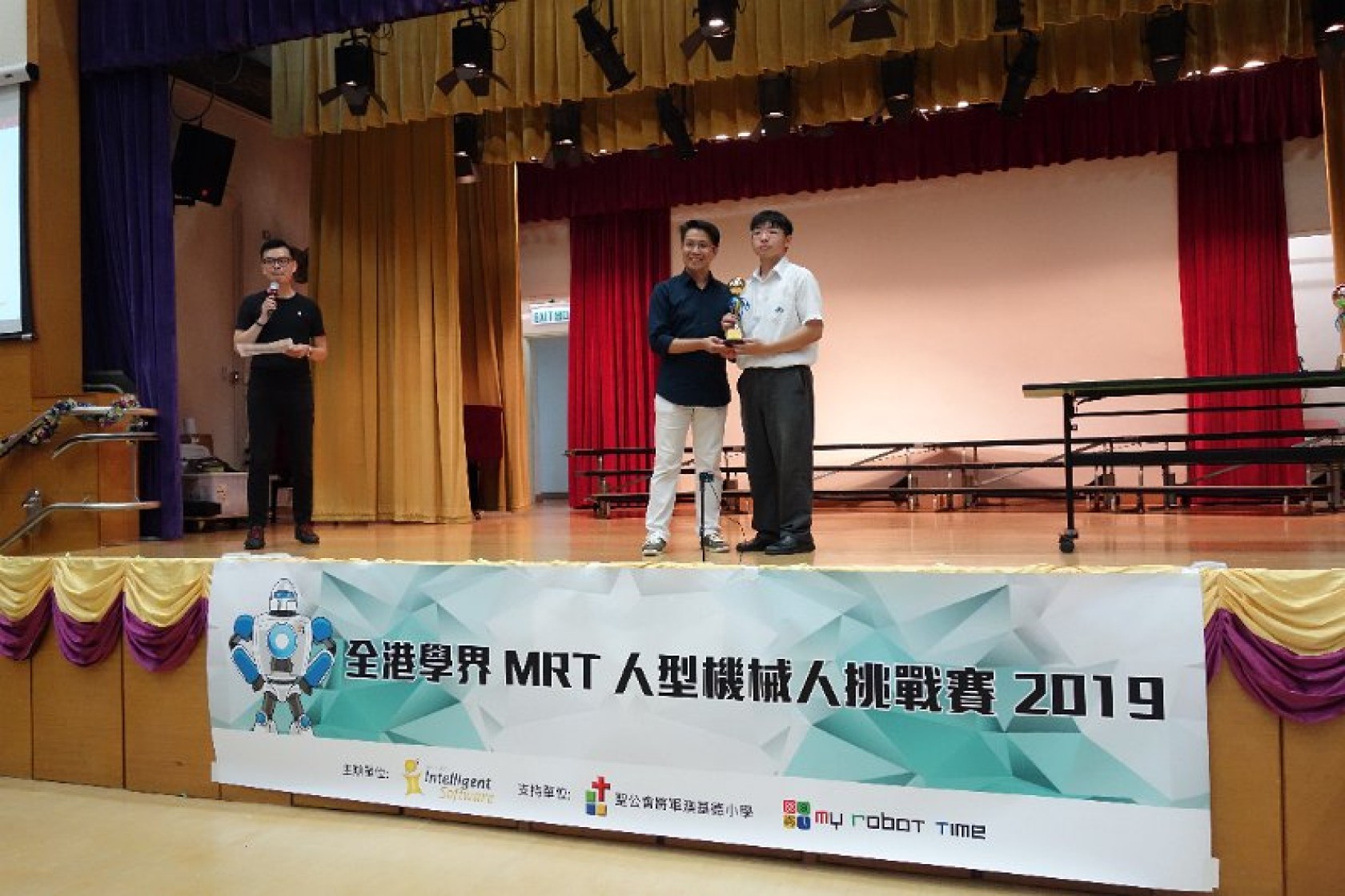 「全港學界 MRT 人型機械人挑戰賽 2019」(香港區賽) 本校學生積極參與7月6日舉辦的「全港學界 MRT 人型機械人挑戰賽 2019」(香港區賽),表現十分出色。1A劉暐麒 及3B王俊烽分別獲得「MRT Robot機械人障礙賽」亞軍及季軍。而1A劉暐麒同學同時於-「MRT Robot機械人拳擊賽」獲得季軍殊榮。得獎同學將代表香港於8月前往南韓參加「6th International Youth Robot Competition (IYRC) 2019」賽事。