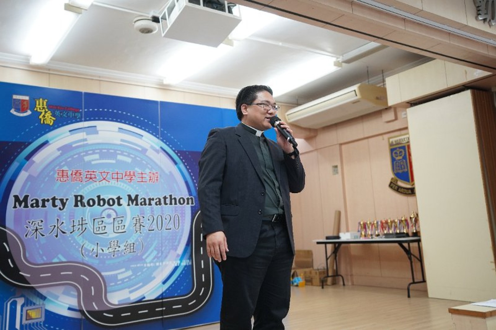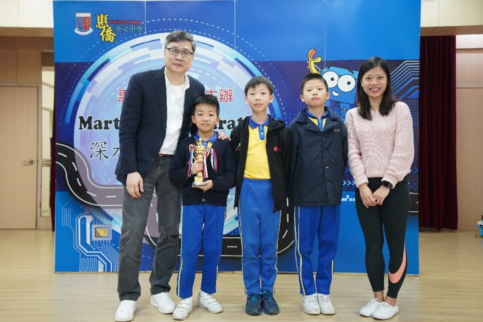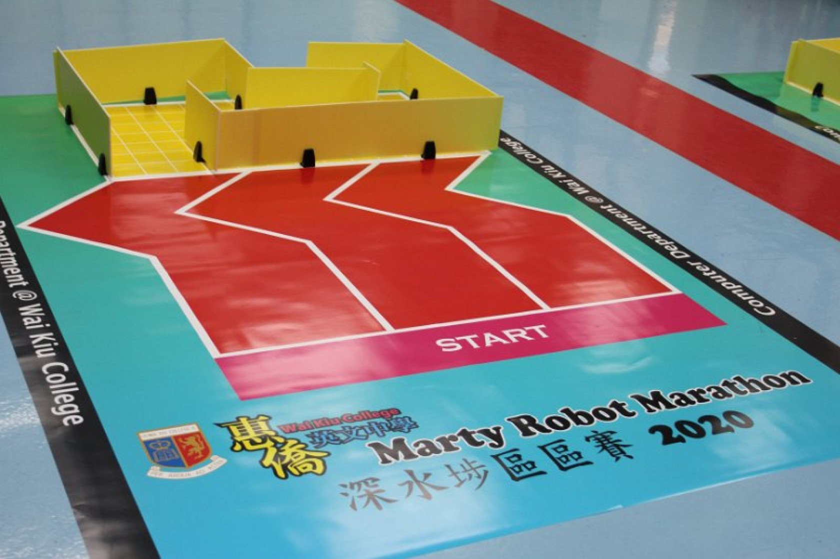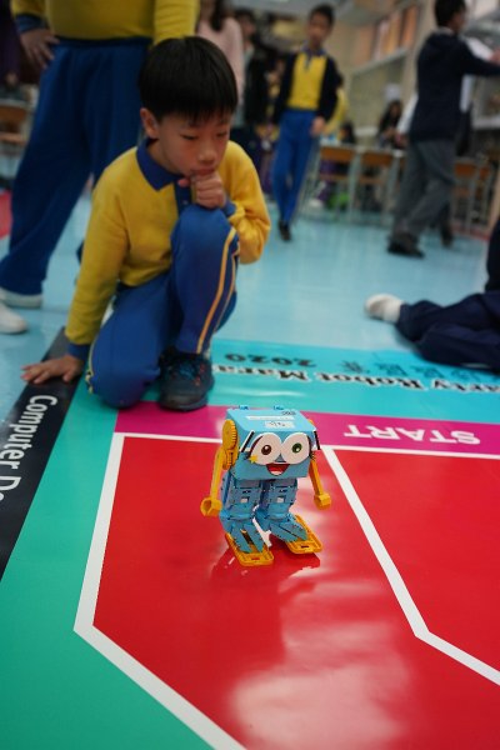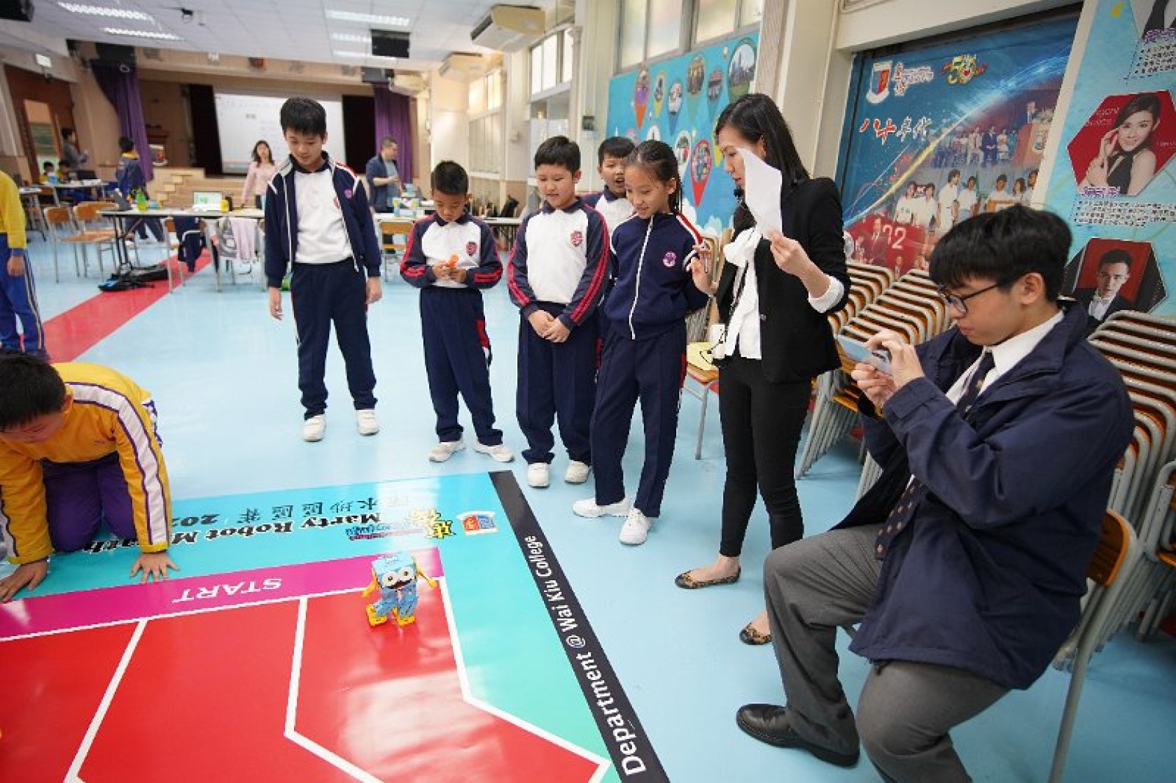 Marty Robot Marathon 深水埗區區賽2020(小學組)經已完滿落幕。是次比賽由惠僑英文中學主辦,亦是首間學校引入迷你步行機器人“Marty the Robot”至香港教育界別作比賽。當日多間小學約六十位學生蒞臨參賽,比賽共設兩部份,以關卡難題形式的比賽賽道考驗學生即時的編程能力及解難能力,相當具挑戰性! 各隊伍的成員齊集一堂,氣氛非常緊張熱烈。比賽是一個集合直線及不同角度的斜道、障礙物及迷宮賽道,以機械人能步行至最遠距離的隊伍為冠軍,主要考驗小學生的編程知識及即時的應變及解難能力。在當日早上公開賽道後,13隊參賽隊伍均有測試及比賽時段,各隊伍把握每分每秒去測試賽道,場面非緊張刺激。 比賽結束後隨即進行頒獎,各小學的得獎的學生都獲得獎狀與獎盃作為鼓勵。