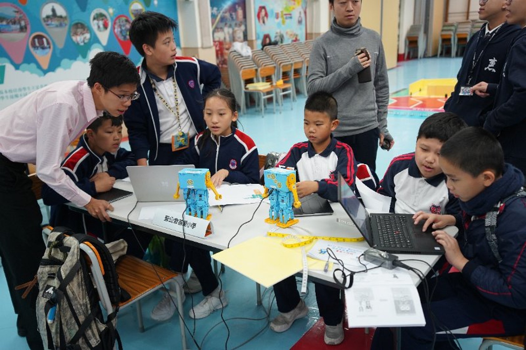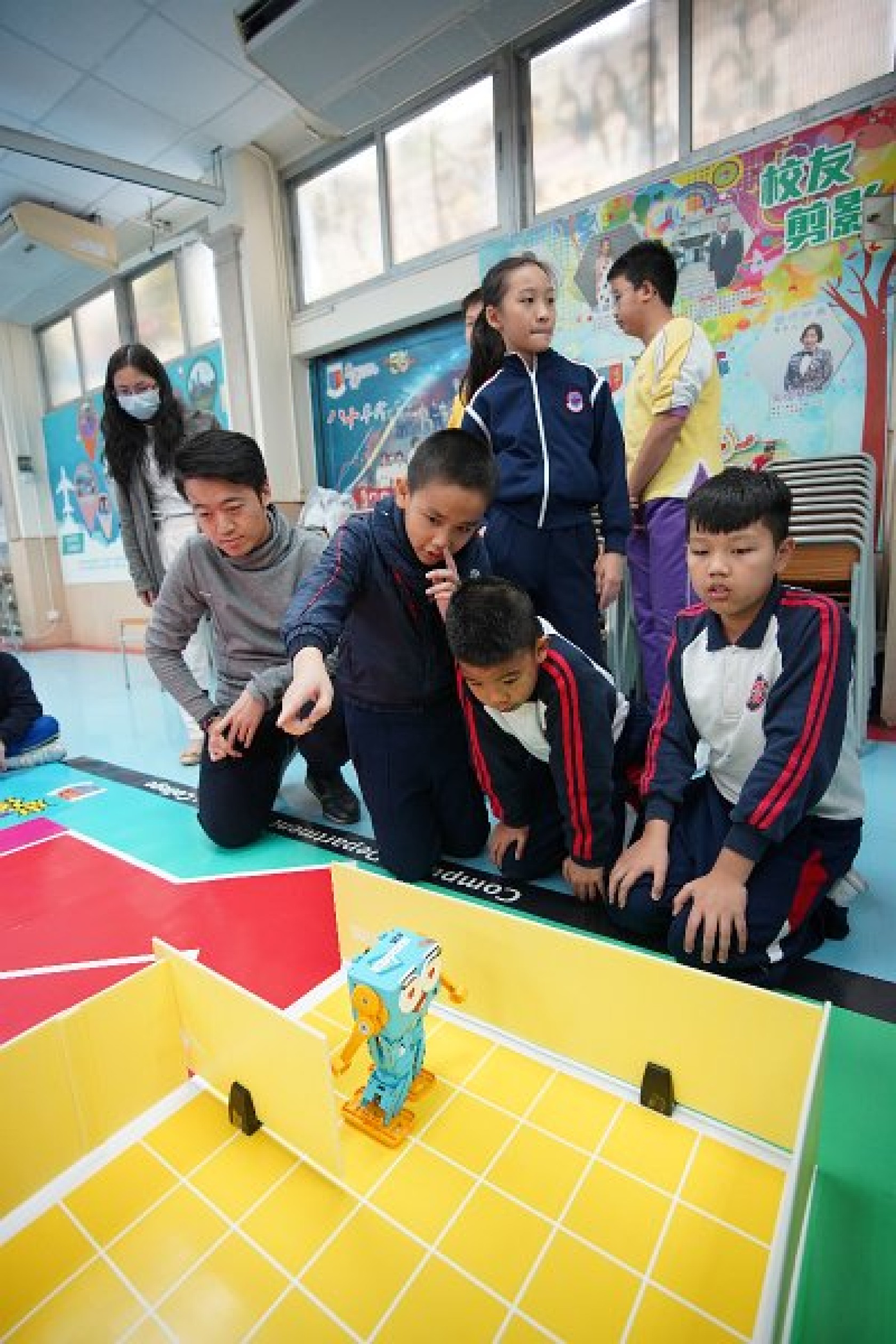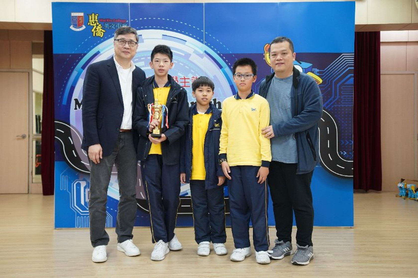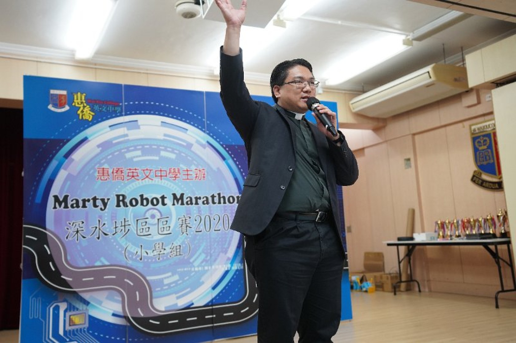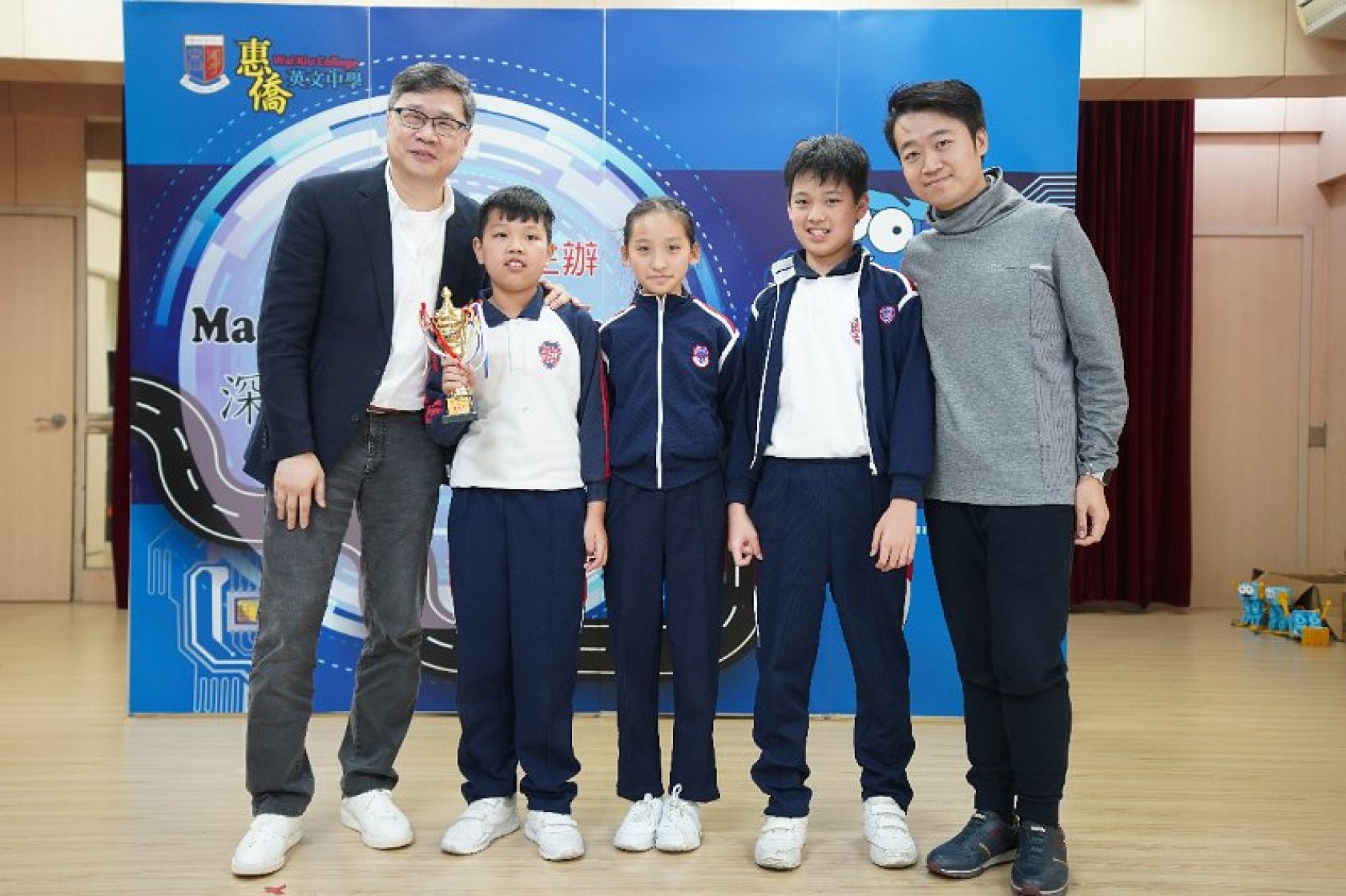 Marty Robot Marathon 深水埗區區賽2020(小學組)經已完滿落幕。是次比賽由惠僑英文中學主辦,亦是首間學校引入迷你步行機器人“Marty the Robot”至香港教育界別作比賽。當日多間小學約六十位學生蒞臨參賽,比賽共設兩部份,以關卡難題形式的比賽賽道考驗學生即時的編程能力及解難能力,相當具挑戰性! 各隊伍的成員齊集一堂,氣氛非常緊張熱烈。比賽是一個集合直線及不同角度的斜道、障礙物及迷宮賽道,以機械人能步行至最遠距離的隊伍為冠軍,主要考驗小學生的編程知識及即時的應變及解難能力。在當日早上公開賽道後,13隊參賽隊伍均有測試及比賽時段,各隊伍把握每分每秒去測試賽道,場面非緊張刺激。 比賽結束後隨即進行頒獎,各小學的得獎的學生都獲得獎狀與獎盃作為鼓勵。