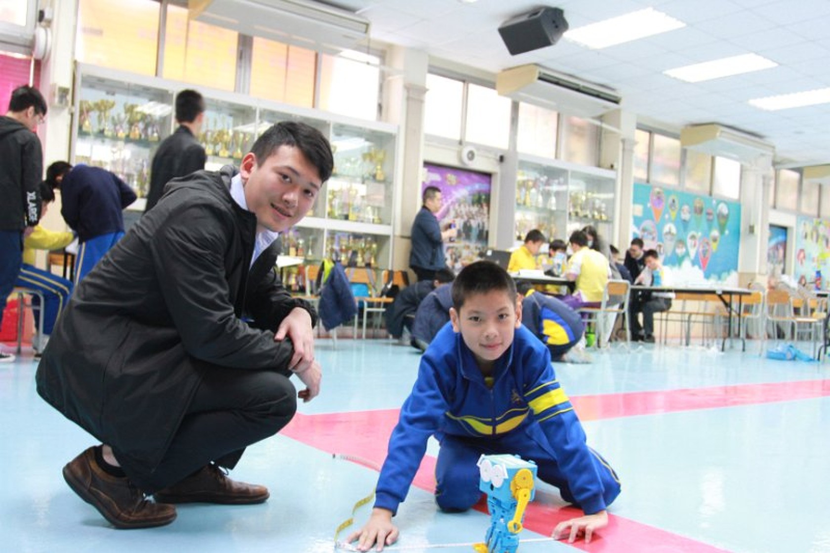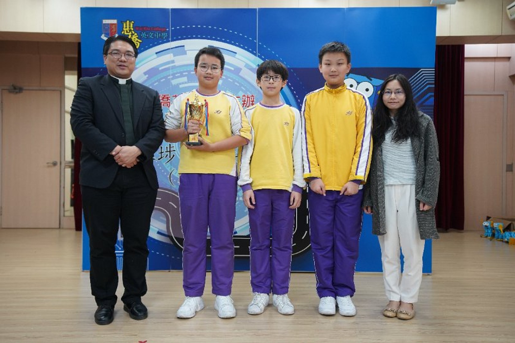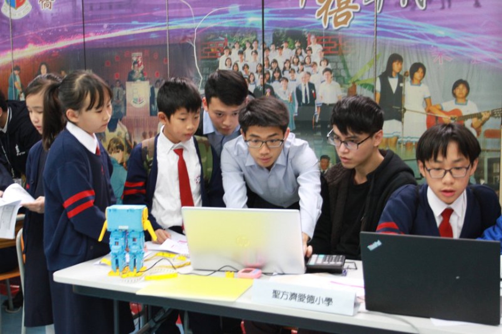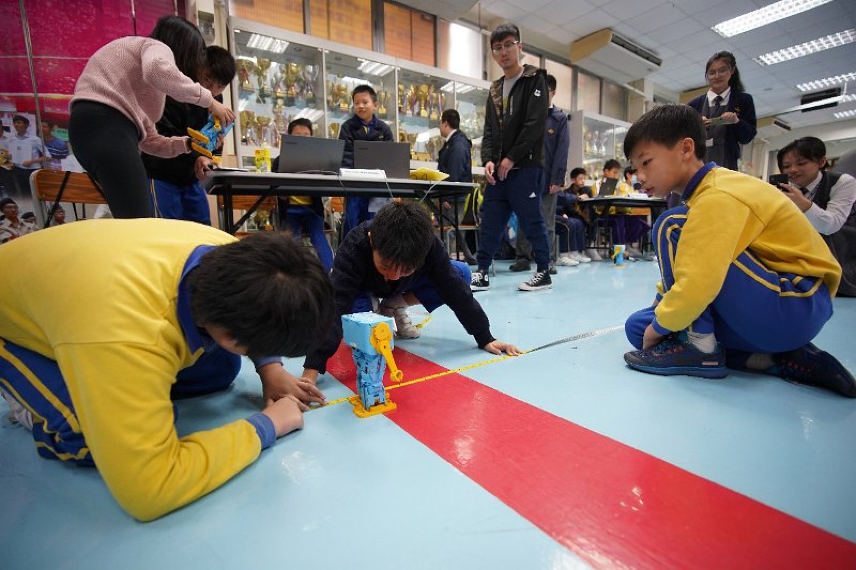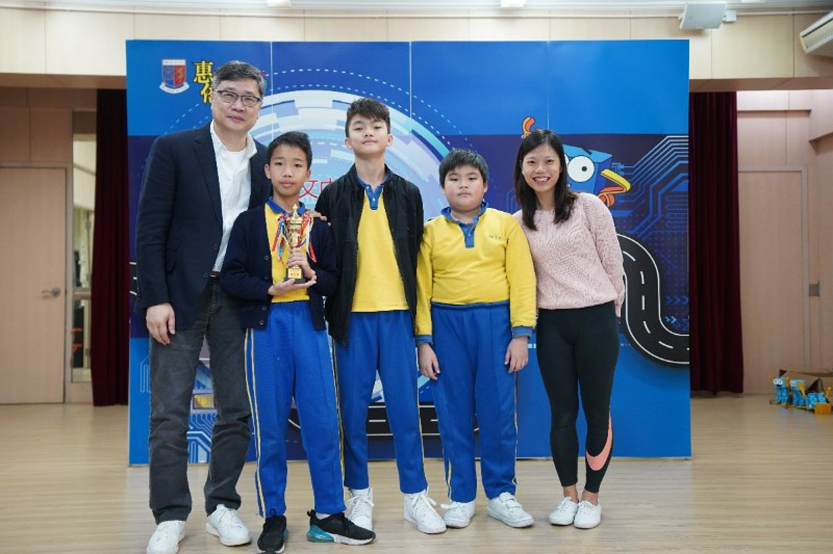 Marty Robot Marathon 深水埗區區賽2020(小學組)經已完滿落幕。是次比賽由惠僑英文中學主辦,亦是首間學校引入迷你步行機器人“Marty the Robot”至香港教育界別作比賽。當日多間小學約六十位學生蒞臨參賽,比賽共設兩部份,以關卡難題形式的比賽賽道考驗學生即時的編程能力及解難能力,相當具挑戰性! 各隊伍的成員齊集一堂,氣氛非常緊張熱烈。比賽是一個集合直線及不同角度的斜道、障礙物及迷宮賽道,以機械人能步行至最遠距離的隊伍為冠軍,主要考驗小學生的編程知識及即時的應變及解難能力。在當日早上公開賽道後,13隊參賽隊伍均有測試及比賽時段,各隊伍把握每分每秒去測試賽道,場面非緊張刺激。 比賽結束後隨即進行頒獎,各小學的得獎的學生都獲得獎狀與獎盃作為鼓勵。