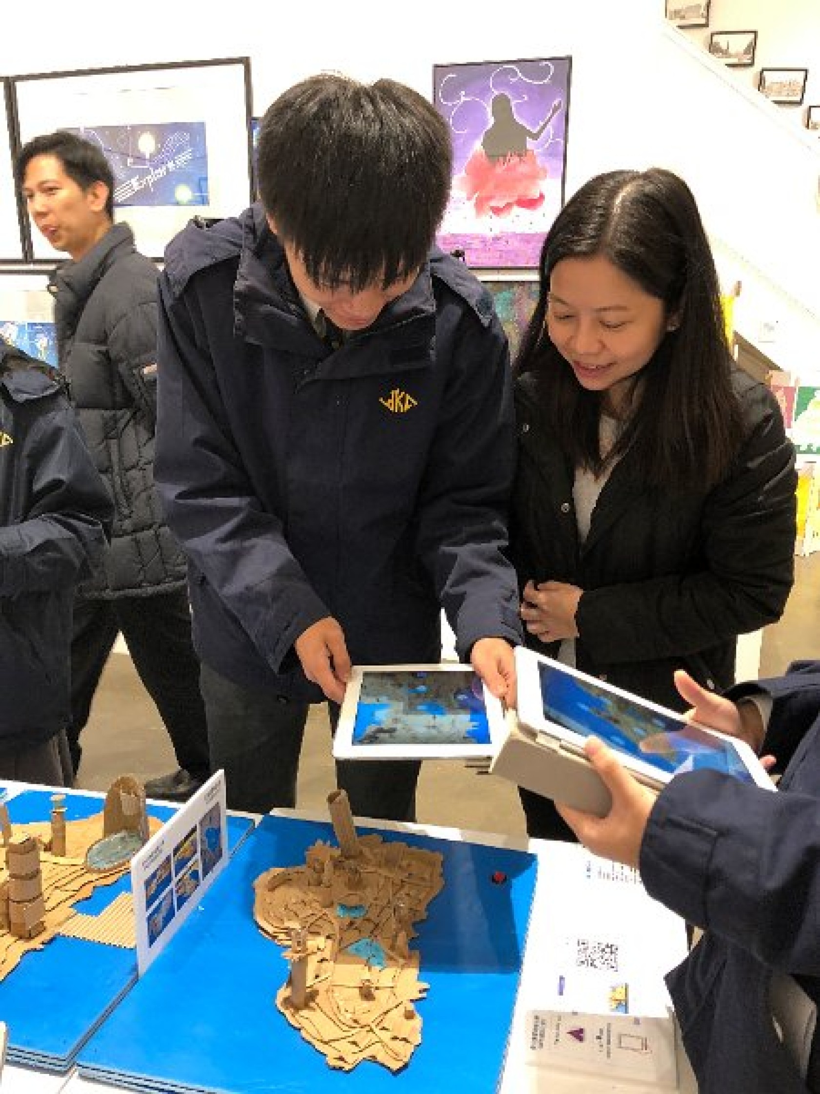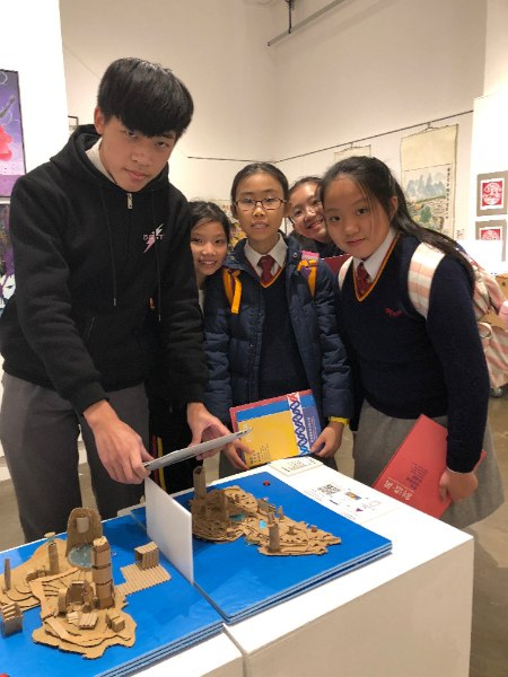 由香港藝術協會舉辦的香港視覺藝術教育節師生視藝展於2017年12月13日至2018年1月11日展出。當中的藝術展品加入了科技元素,我校學生有幸參與製作, 將數幅的畫作呈現擴增實境AR的效果。此外,我校學生亦與小學合作,幫助他們拍攝及製作虛擬實境VR,給觀眾模擬出一個真實感的空間感,感覺像處於現實中一般的錯覺。最後,我校學生更擔當導賞員,簡介及介紹每幅作品以及AR/VR背後製作的原理。