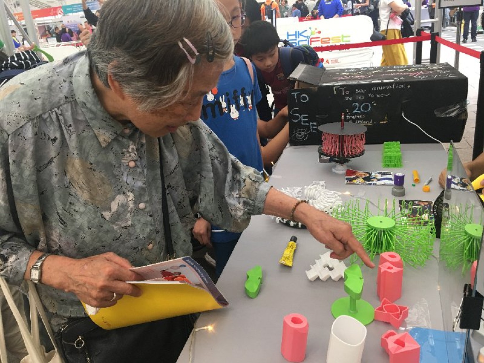 一年一度的香港科學節繼續邀請本校參展。物理科學生蕭景曦、何健熹及中二級周迅之、楊家榮於4月20日復活節公眾假期於科學館與市民及遊客共渡了本天愉快的學習時光。展出品除了以往的力矩玩具外,新加入了與日裔藝術家聯乘的3D走馬燈示範及錯覺雕塑,使大眾對立體打印及視覺的科學更有認識。