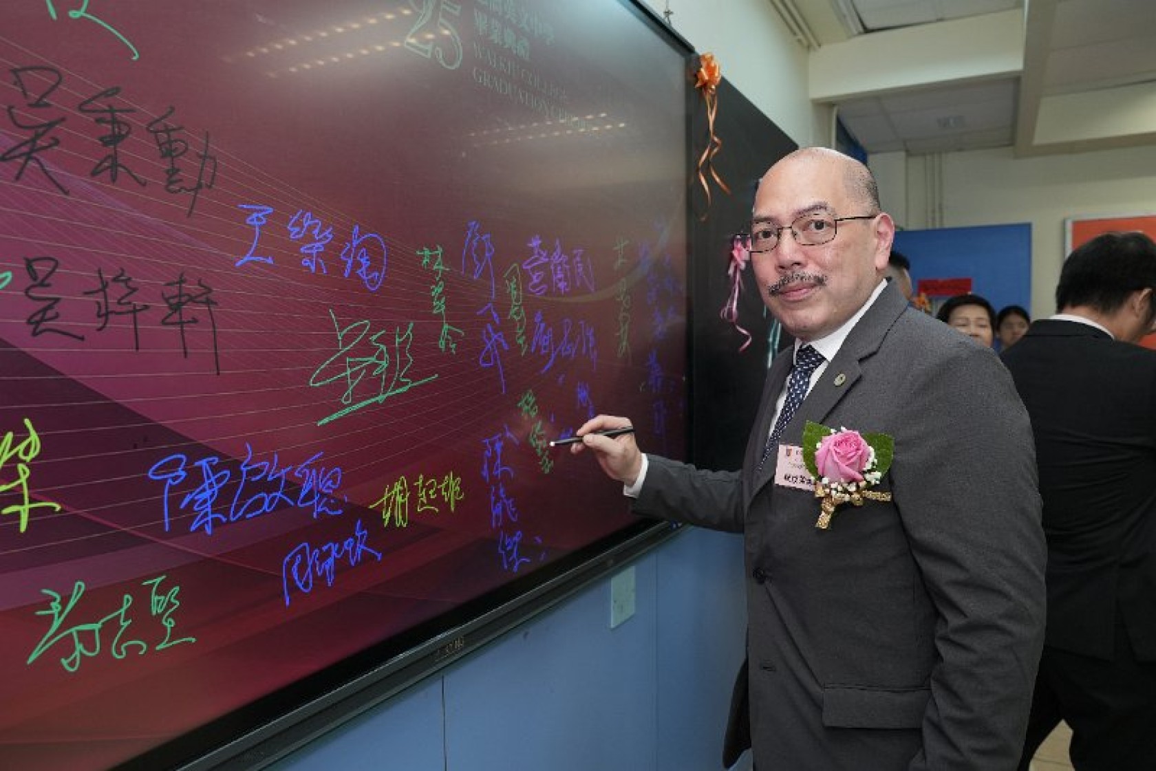 惠僑英文中學於五月二十二日盛大舉行畢業典禮,榮幸邀得立法會議員鄧飛先生MH 親臨擔任典禮主禮嘉賓。典禮當天,校園人潮鼎沸,歡呼與雷動掌聲不絕於耳。家長們高舉相機,鎂光燈此起彼落;畢業生們身披畢業袍,神采飛揚地穿梭其間;繽紛的彩帶與氣球在空中織就一片歡慶的彩浪。 此起彼伏的歡聲笑語與殷殷祝福,伴隨著滿懷不捨的簇擁、喜悅綻放的花束,交織成一幅動人的圖畫。空氣中,盈滿青春的熾熱氣息,亦閃爍著依依離情中晶瑩的淚光。 原大照片(Google Drive)