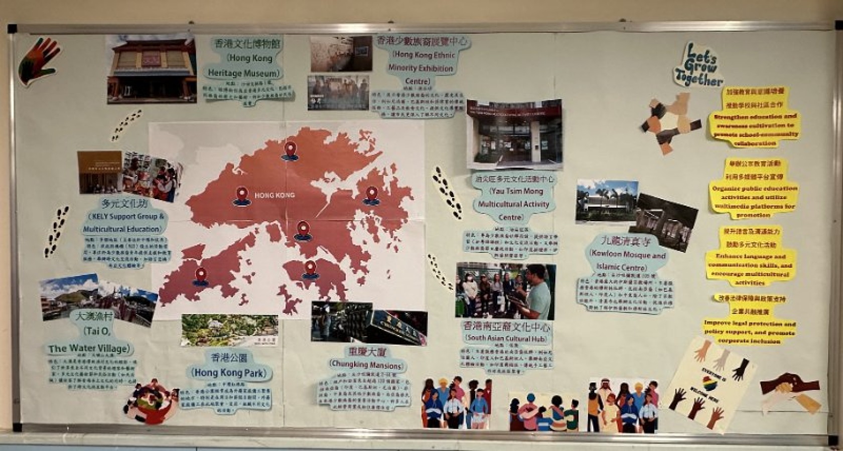 下學期以「共融」為主題的壁報比賽已順利完成,學生透過創意設計與深入內容,展現了對不同族裔文化的認識與尊重。參賽作品色彩豐富、構思獨特,充分體現了多元共融的校園精神。經評審後,共選出冠、亞、季軍,得獎班別如下: 初中組 冠軍 2A 亞軍 1C 季軍 1B 高中組 冠軍 5C 亞軍 4B 季軍 5A 此次比賽不僅提升了學生的藝術表達能力,更深化了他們對文化包容的理解。感謝所有參與者的用心創作,期待未來繼續攜手推動共融校園!