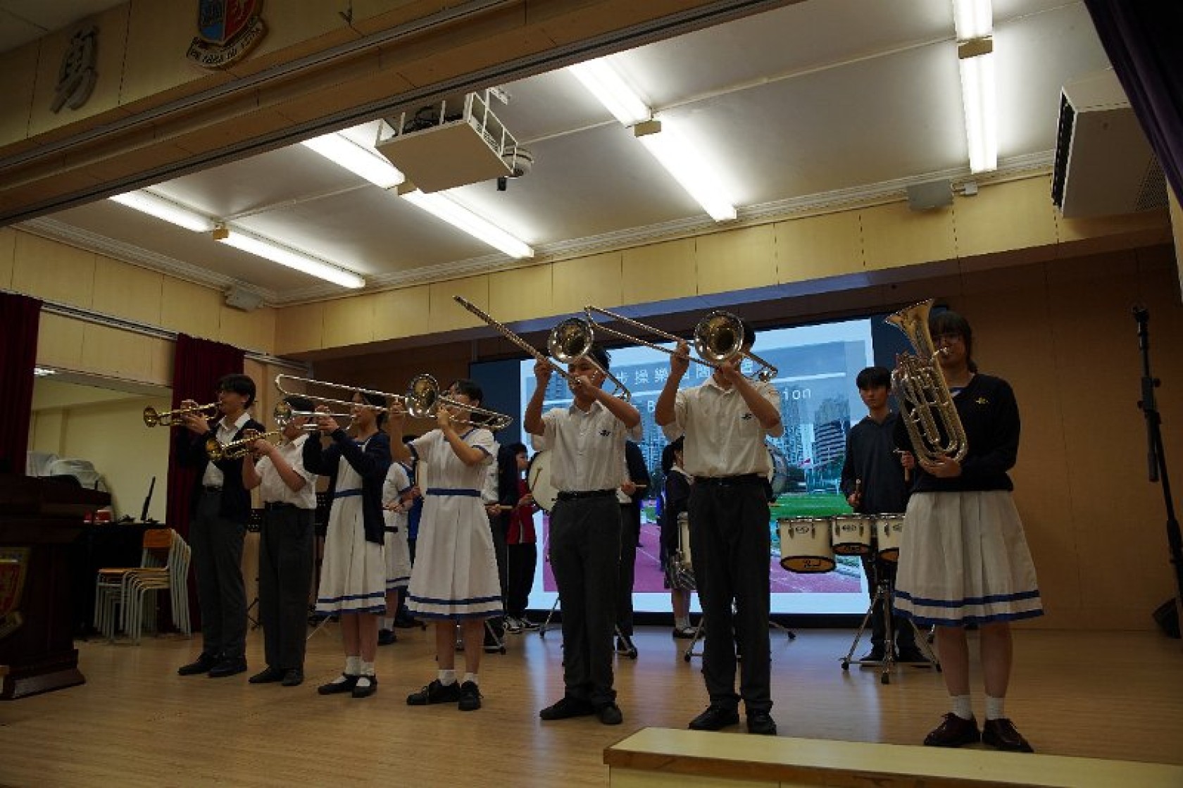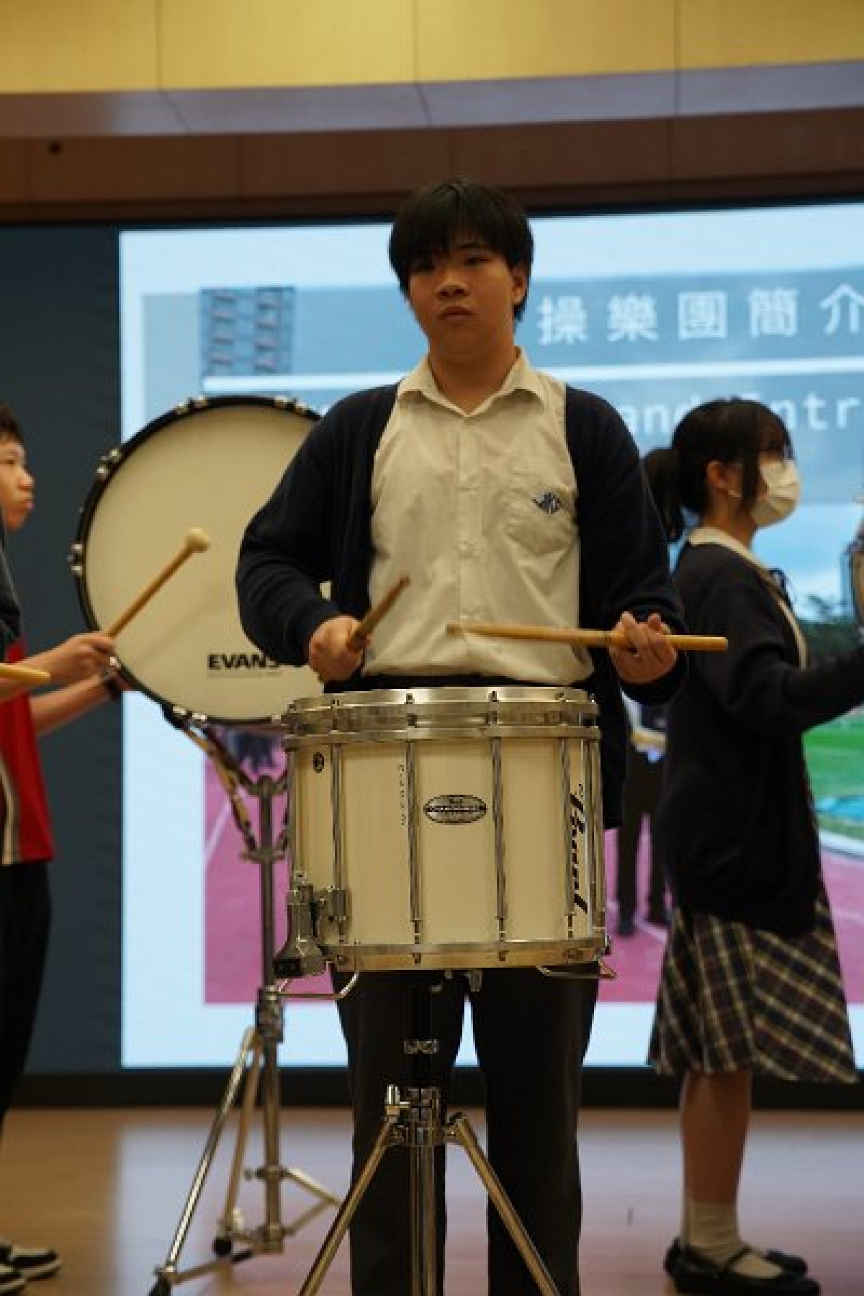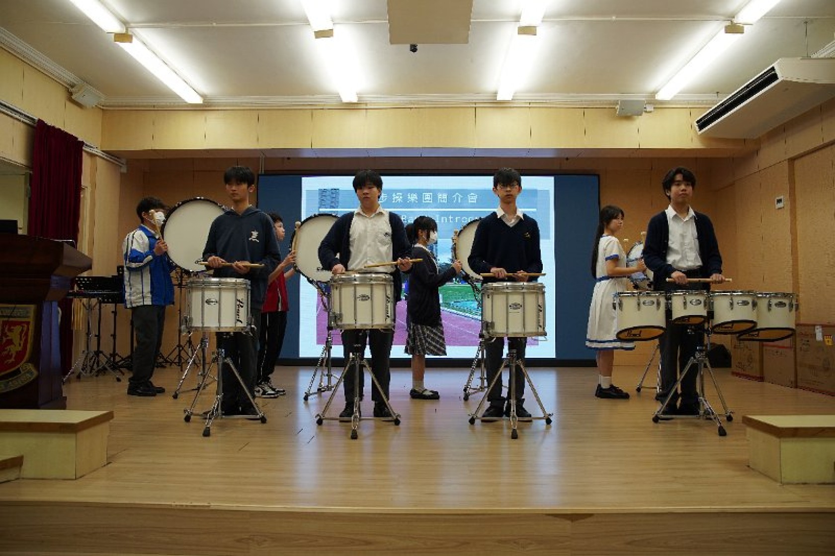 是次音樂周,本校邀請了專業樂手及The Chopiar Drumline到校分享步操樂團資訊及表演,而本校的步操銀樂隊亦有一同參與演出。 與台下觀眾亦有進行互動,同學亦很欣賞各演出。