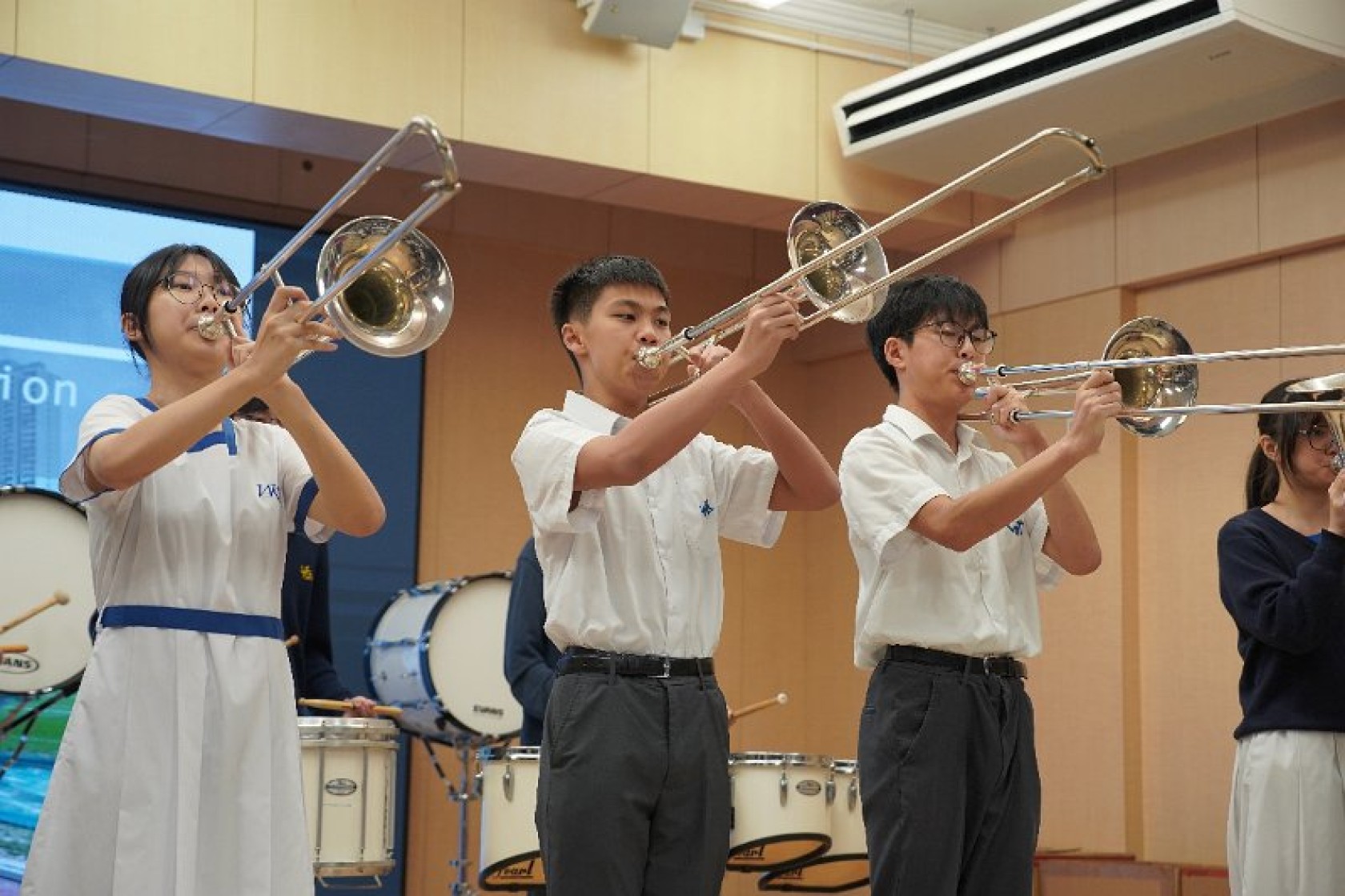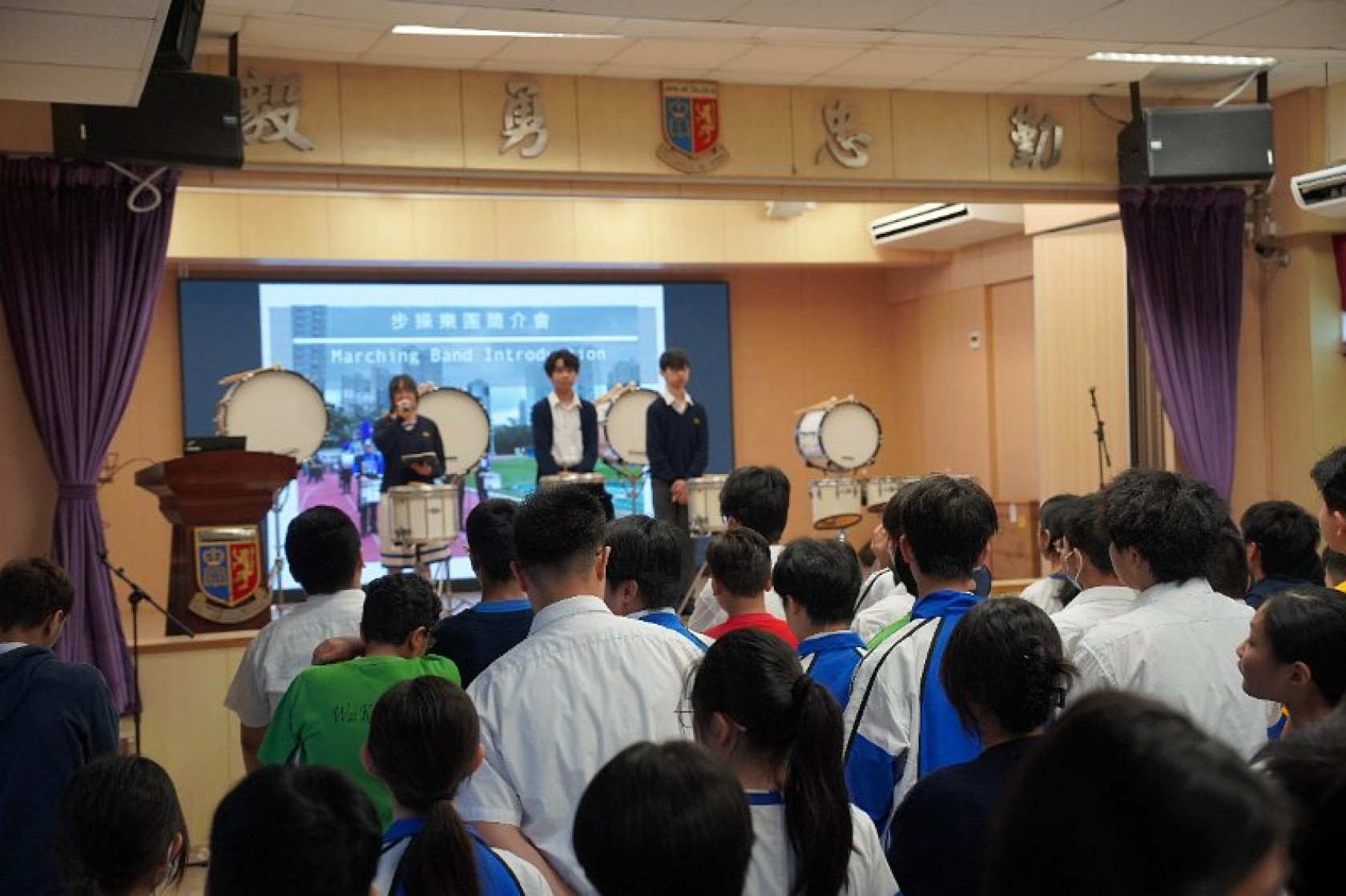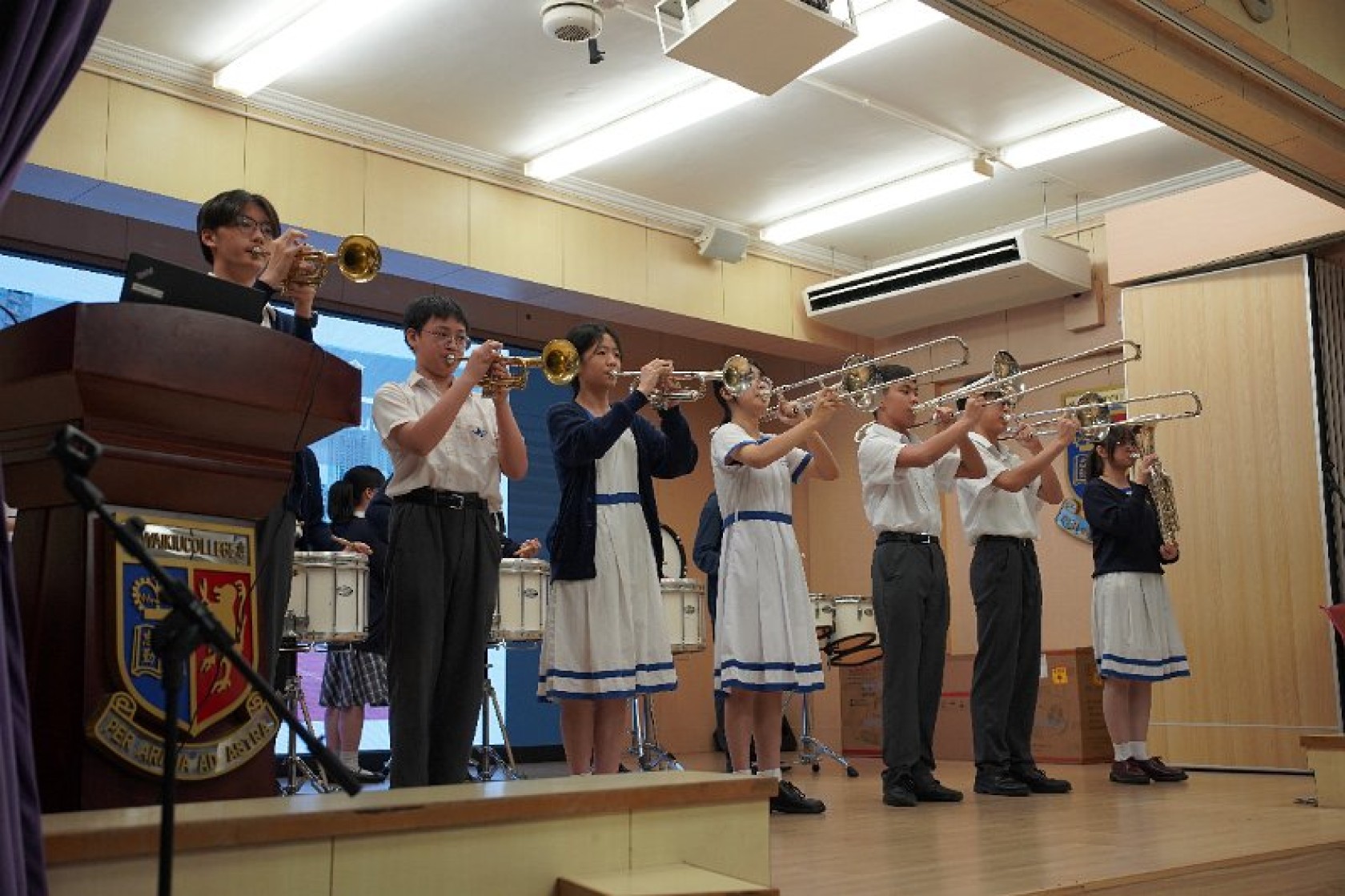 是次音樂周,本校邀請了專業樂手及The Chopiar Drumline到校分享步操樂團資訊及表演,而本校的步操銀樂隊亦有一同參與演出。 與台下觀眾亦有進行互動,同學亦很欣賞各演出。