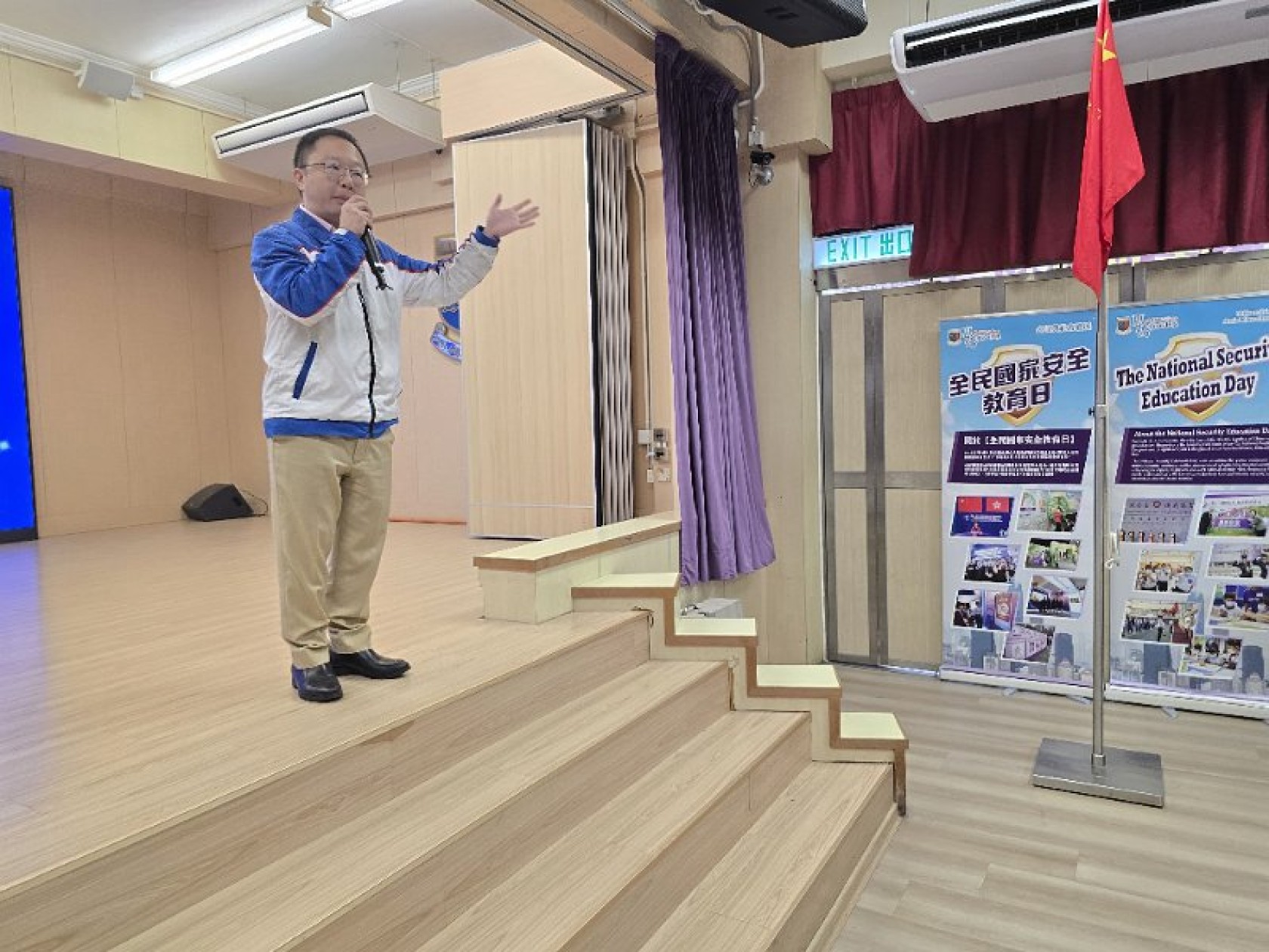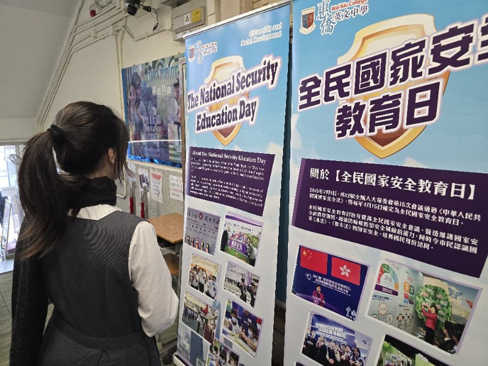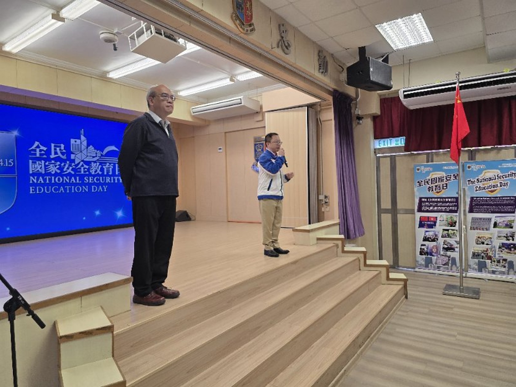 公民與社會發展科於今年的全民國家安全教育日先製作了中英文版的易拉架為華語及非華語同學介紹教育日的歷史。之後於4月15日的早會進行升國旗、奏唱國歌及由郭老師在國旗下的講話中分享國家安全與同學的關係。另外亦於整個星期邀請中一至中五全體同學參加由教育局舉辦的文明中華網上挑戰賽,最終更獲得中學組全港第九名的佳績。