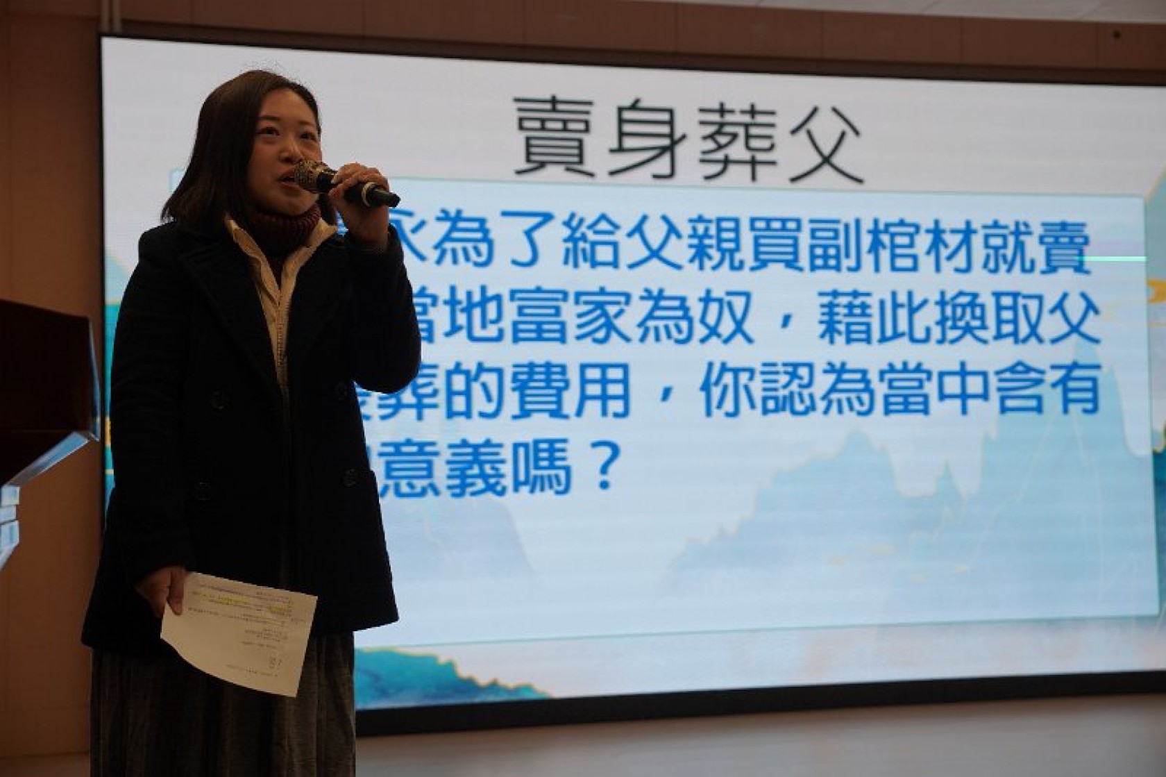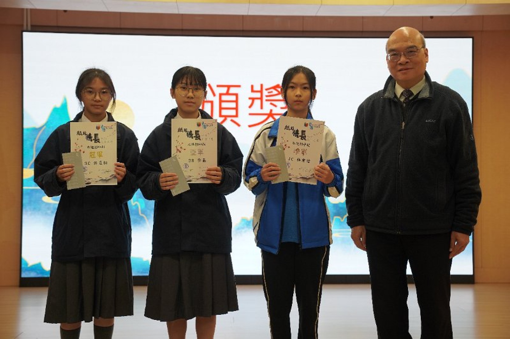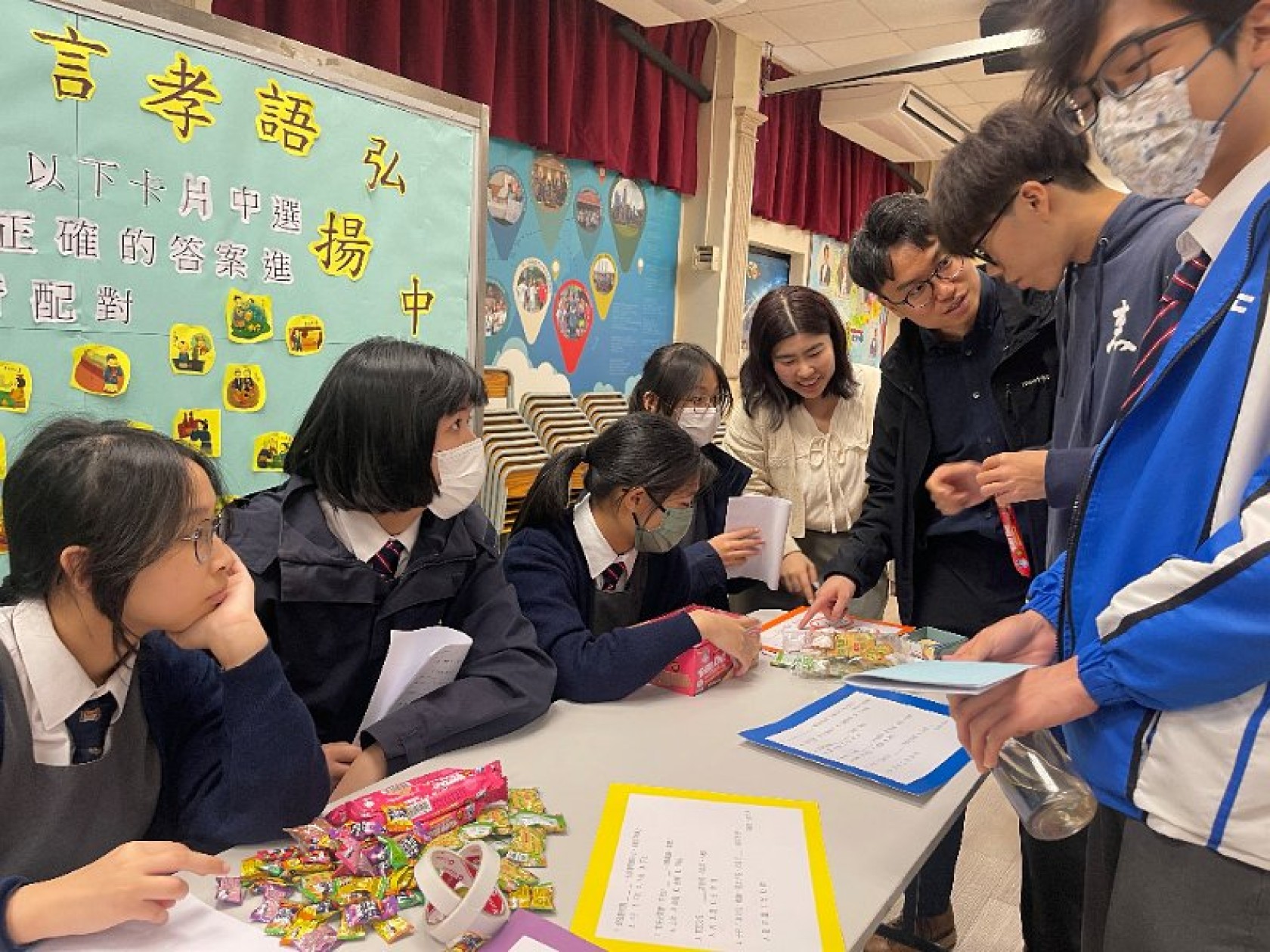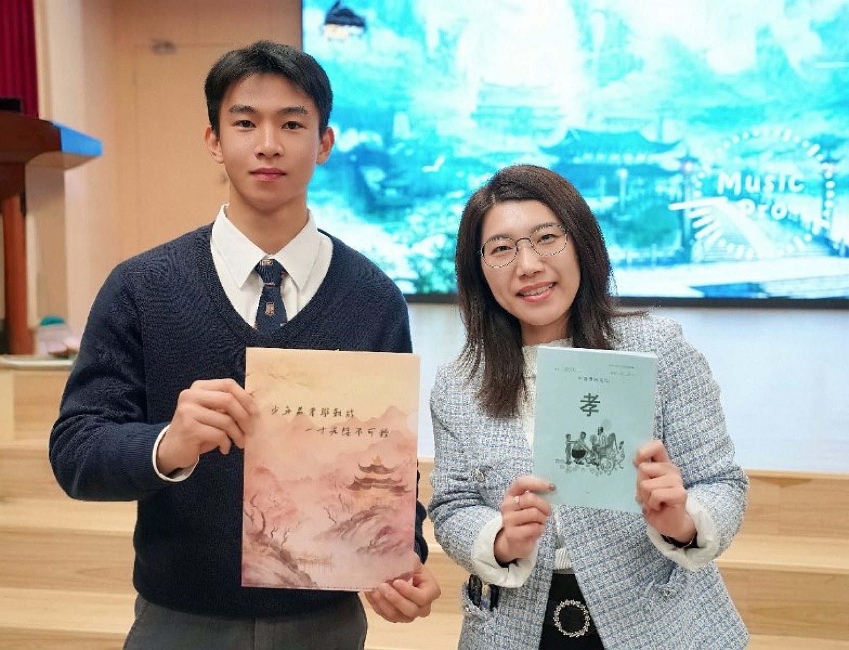 本年度中文週以「廿四孝心、傳承永恆」為主題,透過多元活動,深化學生對孝道價值觀的理解與實踐,並促進非華語學生與華語學生共融。課堂講授二十四孝故事,學生領略孝道文化精髓;「紙短情長」短詩創作比賽中,學生以詩寄情,字字珠璣,抒發對父母的感恩之心。週四午膳期間更舉行孝道文化知識攤位遊戲,例如「二十四孝故事對對碰」、「成語知識」、「孝言孝語大配對」,當中「結繫親恩」最受歡迎,學生親手編織中國結,贈予長輩,以物傳情,孝道精神內化於心。週五早會上,非華語中華文化大使分享巴基斯坦等國家的孝道精神,此外,大使們更自編自導自演,以生動的影片形式傳揚孝道,將傳統美德融入生活。活動中,非華語學生與華語學生共同參與,互相交流,增進理解,促進文化共融。活動豐富多彩,寓教於樂,學生於知、情、意、行四方面皆有所得,孝道價值觀深植心田,傳統文化薪火相傳,成效斐然。