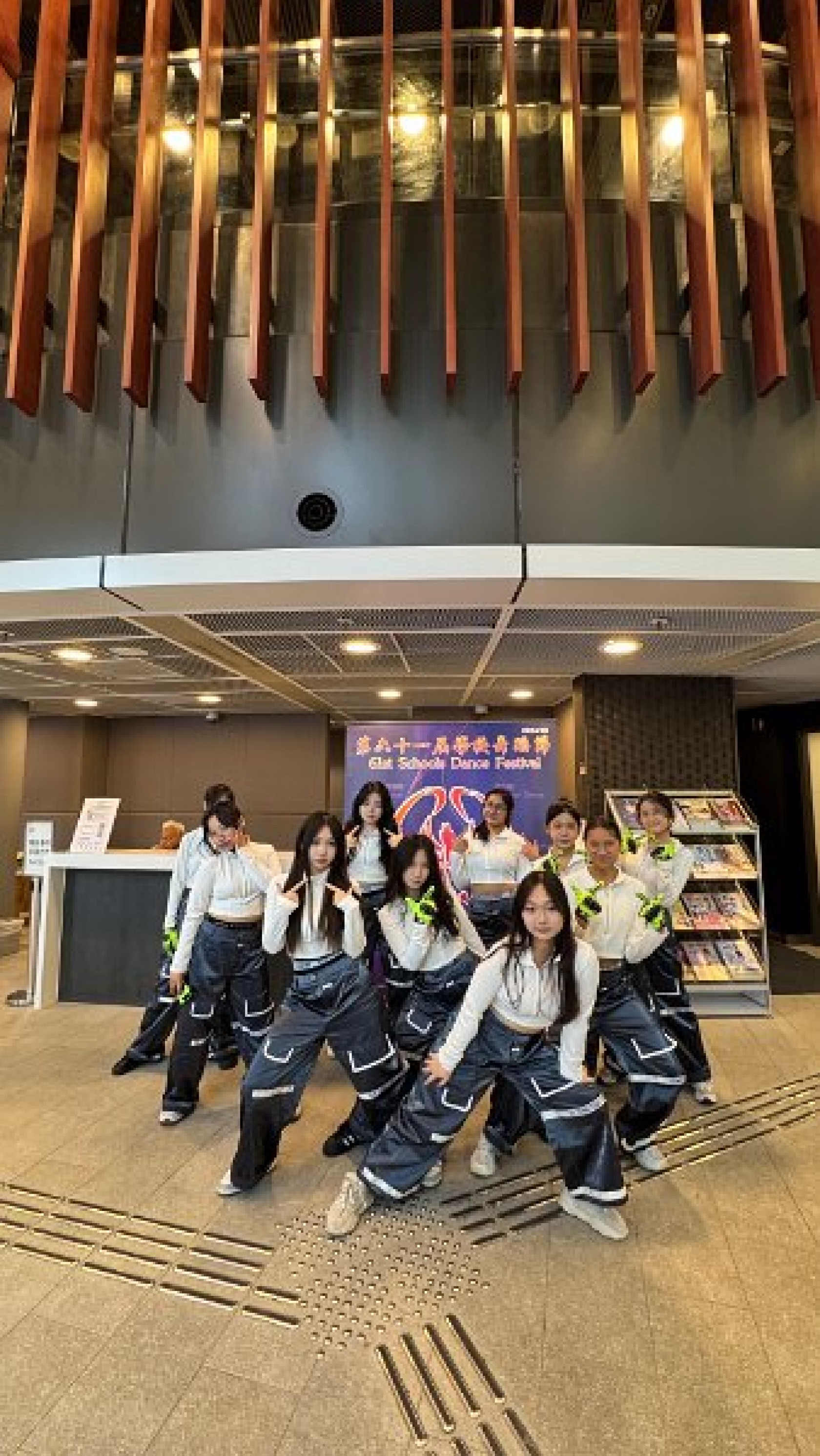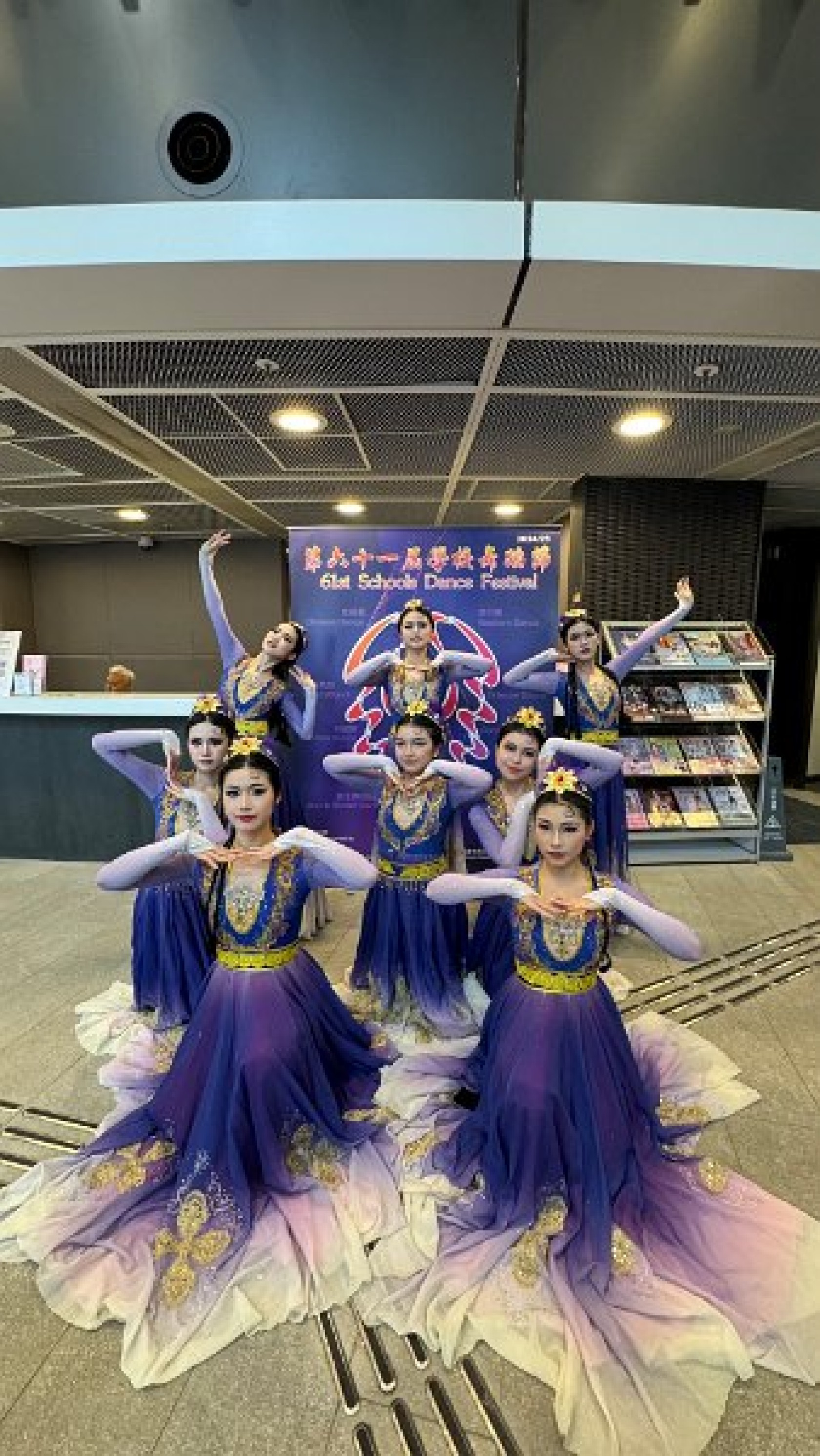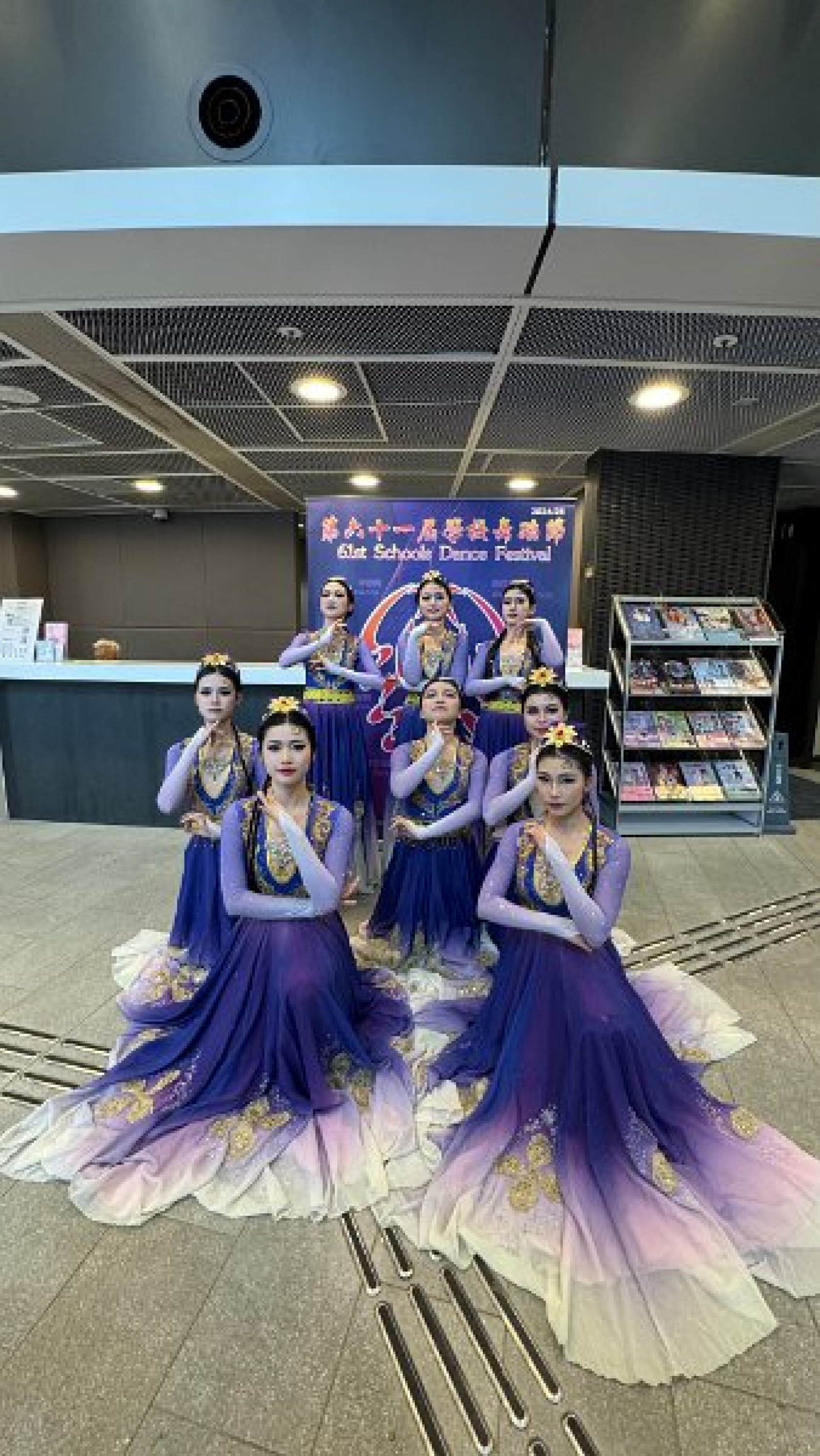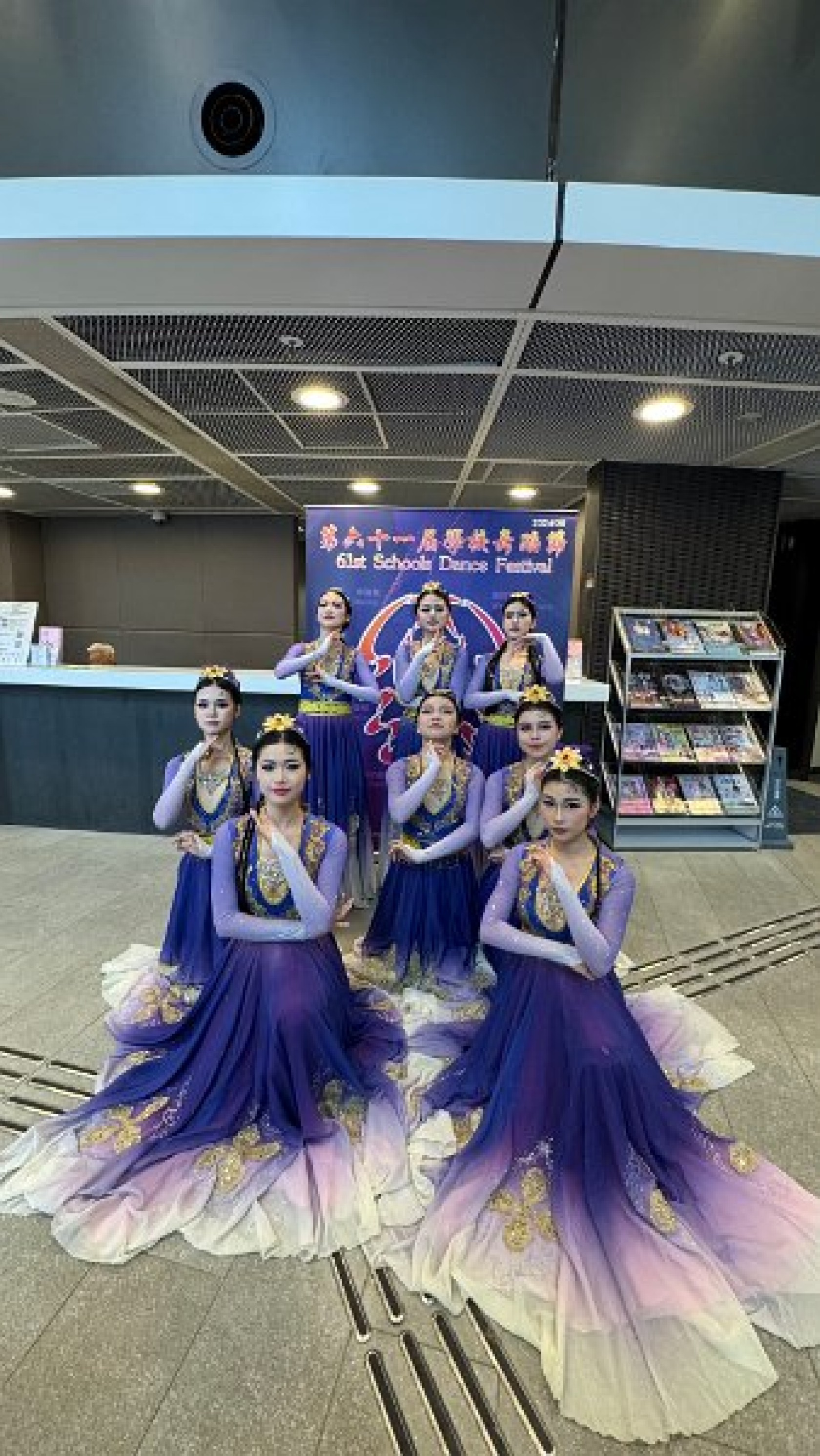 本校舞蹈隊19位同學於第61屆學校舞蹈節取得甲等(中國舞組)和乙等(街舞組)的好成績。 中國舞《綻放》將維吾爾族姑娘比作明艷亮麗的花朵,徐徐綻放;而街舞《Wake Up》利用剛柔並濟的動作,展現了女性的覺醒。評判們對我校同學對於舞蹈風格的把握加以讚賞,更肯定了她們在比賽中的熱情投入及團隊精神。