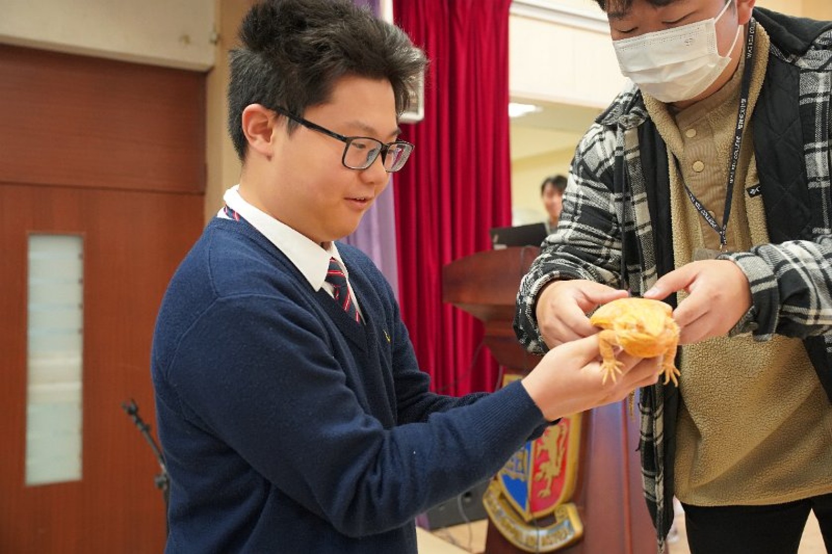 主題:生物多樣性及物聯網科技的應用 本校於1月24日STEAM週會,邀請奇異農夫到場分享有關STEAM科技於不同範疇的應用及發展。STEAM教育也重視社會與環境問題,學生在學習過程中會接觸到如何利用科技改善社會的案例,這有助於培養他們的社會責任感和對環境的敏感性學生能夠全面認識STEAM科技的價值與潛力,為未來的學習和職業生涯打下堅實的基礎。此外,透過讓學生有機會接觸動物,培養學生對照顧小動物的責任感和學習到尊重生命等價值正確的價值觀和態度。