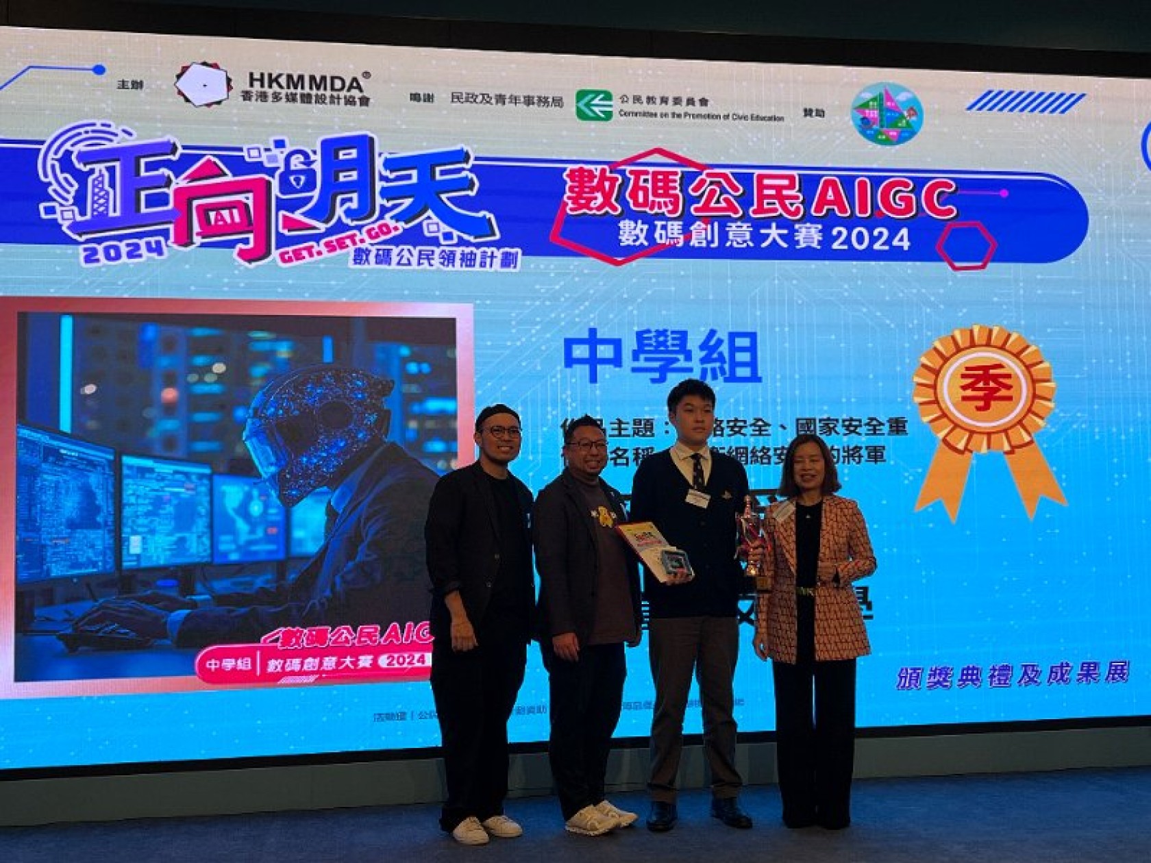 隨著人工智能的蓬勃發展,我們重視學生的科技應用能力和數位素養。透過AI數碼多媒體講座及課程,AI & AIGC、數碼電繪創作以及數碼履歷及作品集課程,惠僑學生培養資訊共通能力,在數位時代中掌握創新科技,引領先機。 本校5C學生麥杰舜獲得「數碼公民AIGC數碼創意比賽 2024」季軍。 作品名稱爲 :「保衛網絡安全的將軍」,以創意和技術展示了對國家安全、網絡安全、數碼素養以及關愛與包容的深刻理解。作品以其卓越的創意性、主題相關性、 AIGC 技術應用及社會影響力,從眾多參賽作品中脫穎而出。 此外,本校亦參加了【正向明天 Get, Set, Go】數碼公民領袖計劃2024,正式榮獲2024-2025年度「數碼公民領袖嘉許計劃」的「數碼公民領袖」標誌。表彰在推廣數碼公民意識表現突出的學校,進步提升社會對數碼責任及數碼教育的重視。
