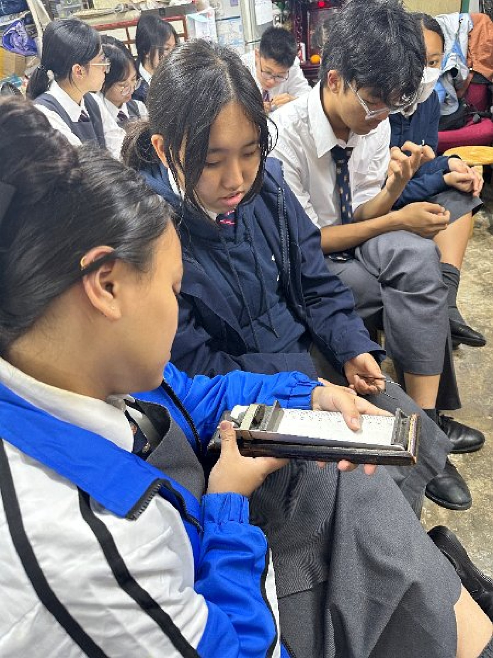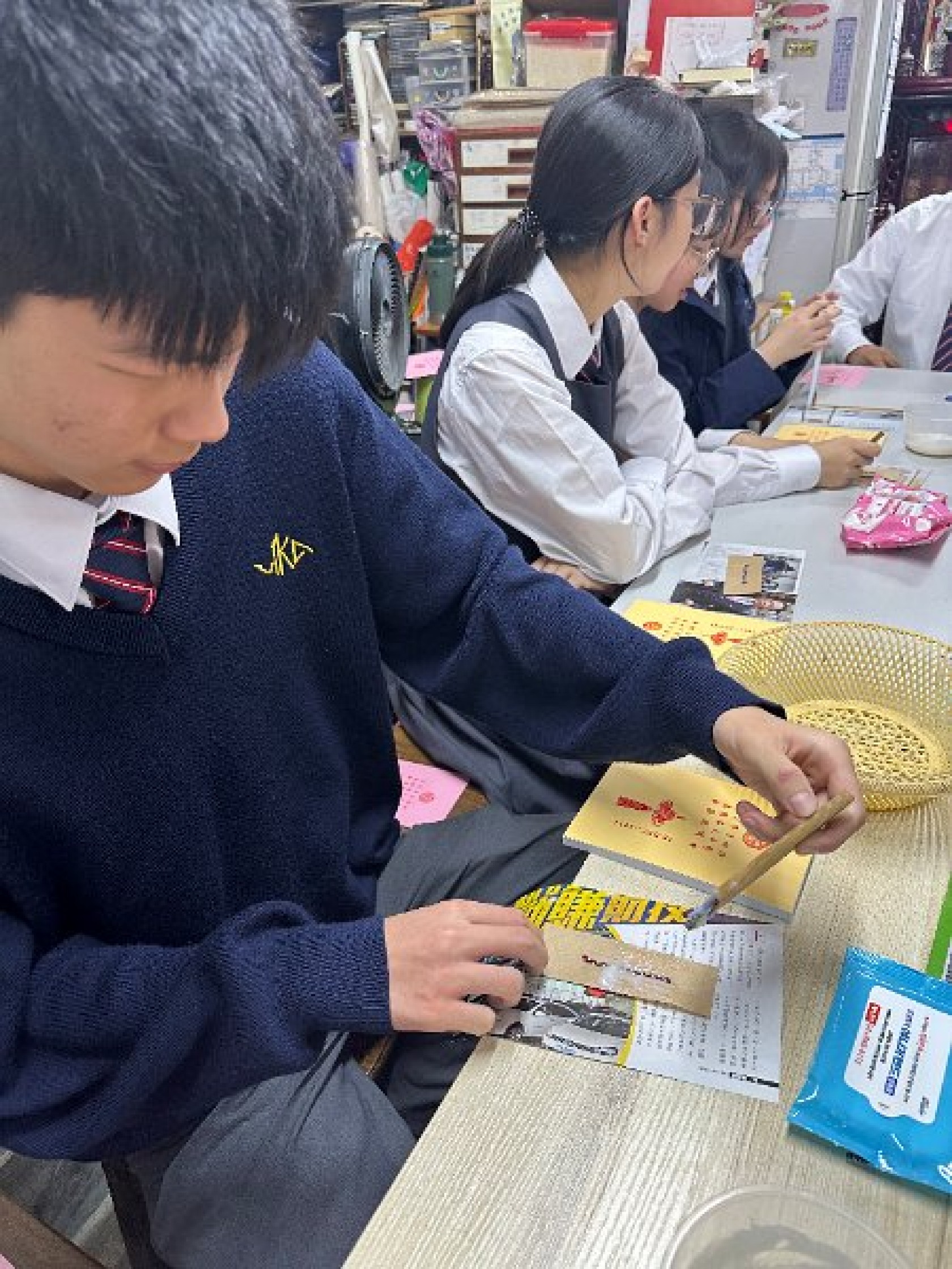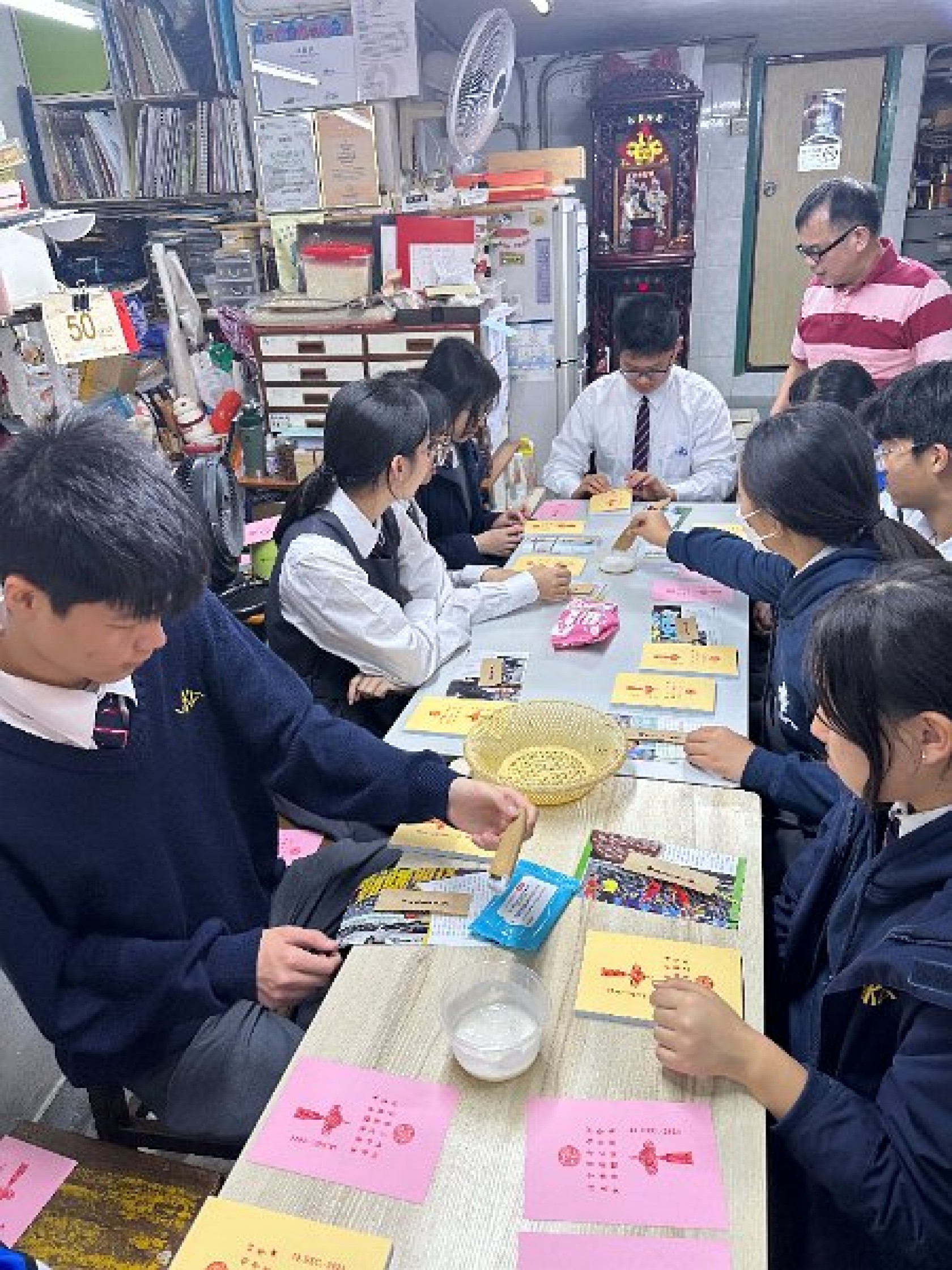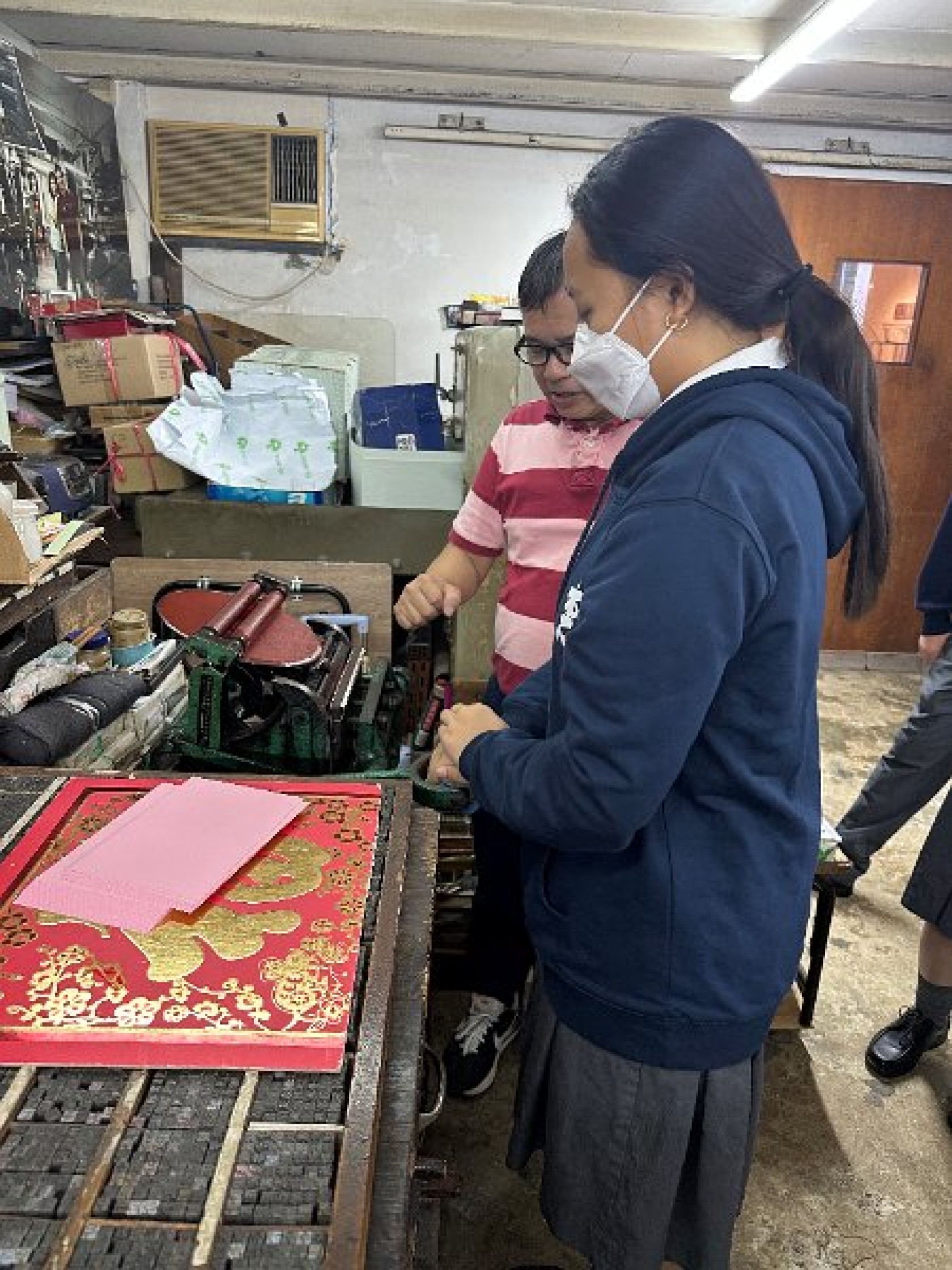 活字印刷是中國古代四大發明之一,擁有過千年歷史,也曾為香港的印刷業寫下輝煌的一頁。 為讓同學更了解更多,我們於12月13日舉辦了一個活字寶印刷工作坊,導賞員同時也是上環光華印刷公司第二代店主任先生,他從事印刷行業已超過五十多年,任先生分享見證香港印刷業 的轉變及興衰史,還熱心講解活字印刷的模具及示範。 過程中,每位同也有製作了獨一無二的「活字寶記事簿」,簿上印有學校和同學的名字,這是透過多個字粒、神奇凸字粉和活字印刷術而製作,可說十分珍貴。
