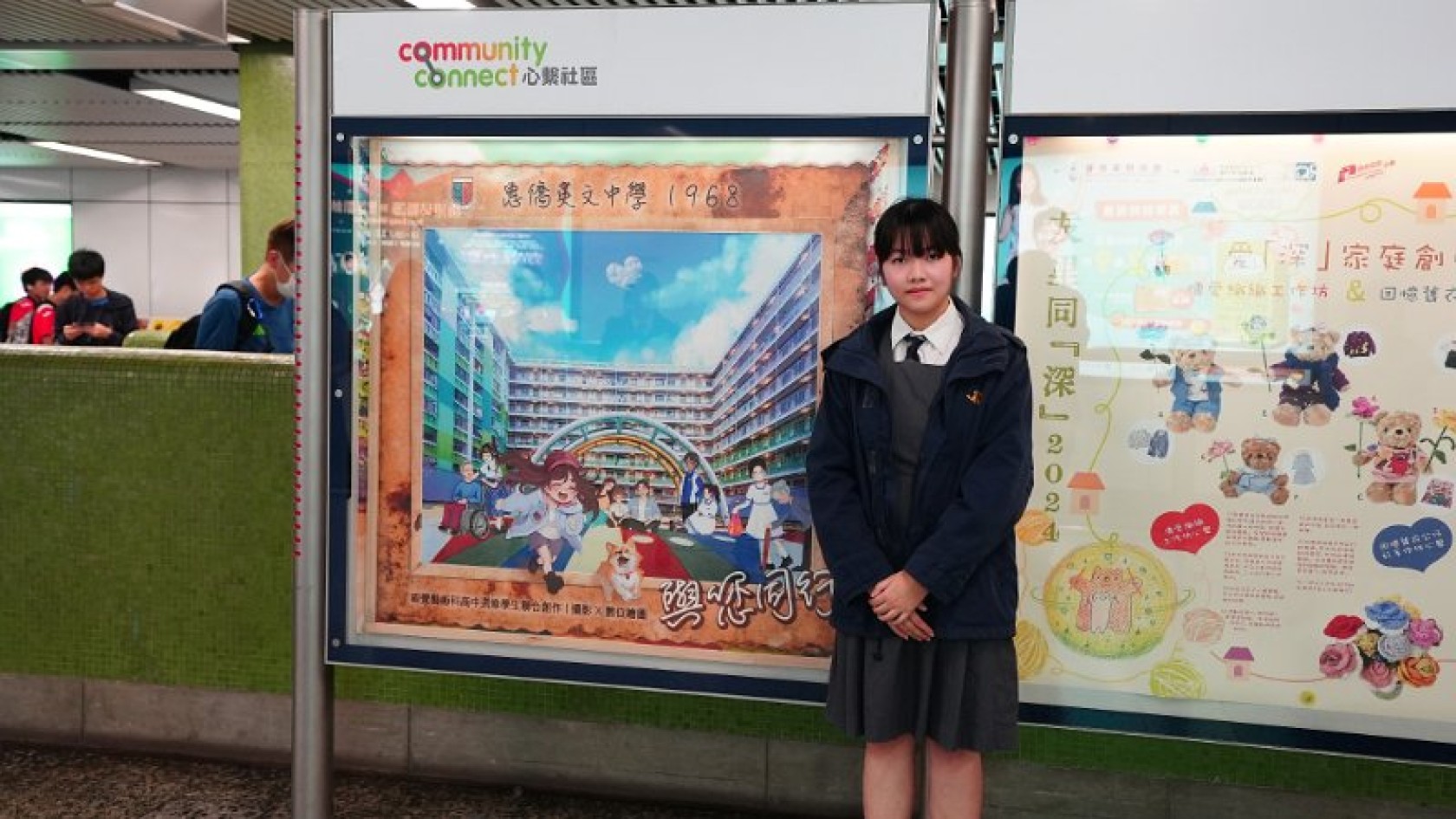 本校視覺藝術科高中選修學生透過相機記錄石硤尾景色,並在攝影作品上繪出一幕又一幕社區小故事,共同創作一件數位繪圖作品。作品命名為「與您同行」,見證惠僑英文中學自1968年起與社區一起成長,一起同行。作品在石硤尾港鐵站「港鐵社區畫廊」展出,曹校長與一衆師生一同到場欣賞作品,並分享同學的學習成果。