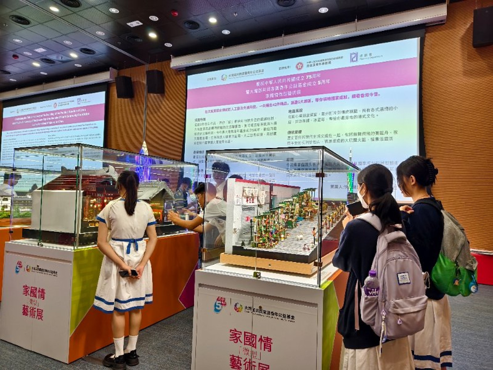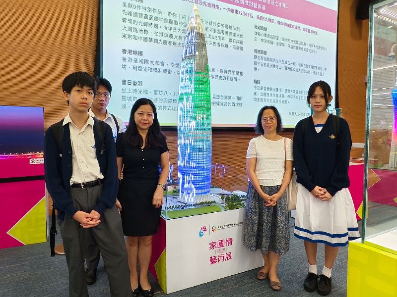 為促進青少年愛國愛港情懷,大灣區青年基金特別舉辦《家國情微型藝術展》」。本校師生於 2024 年 9 月 20 日在中環展城館舉辦,參觀了 42 件糅合傳統匠人工藝及先進科技,超過百人團隊製作的微型藝術作品,更深了解到祖國的發展,並認識香港古今面貌,加深家國情懷。