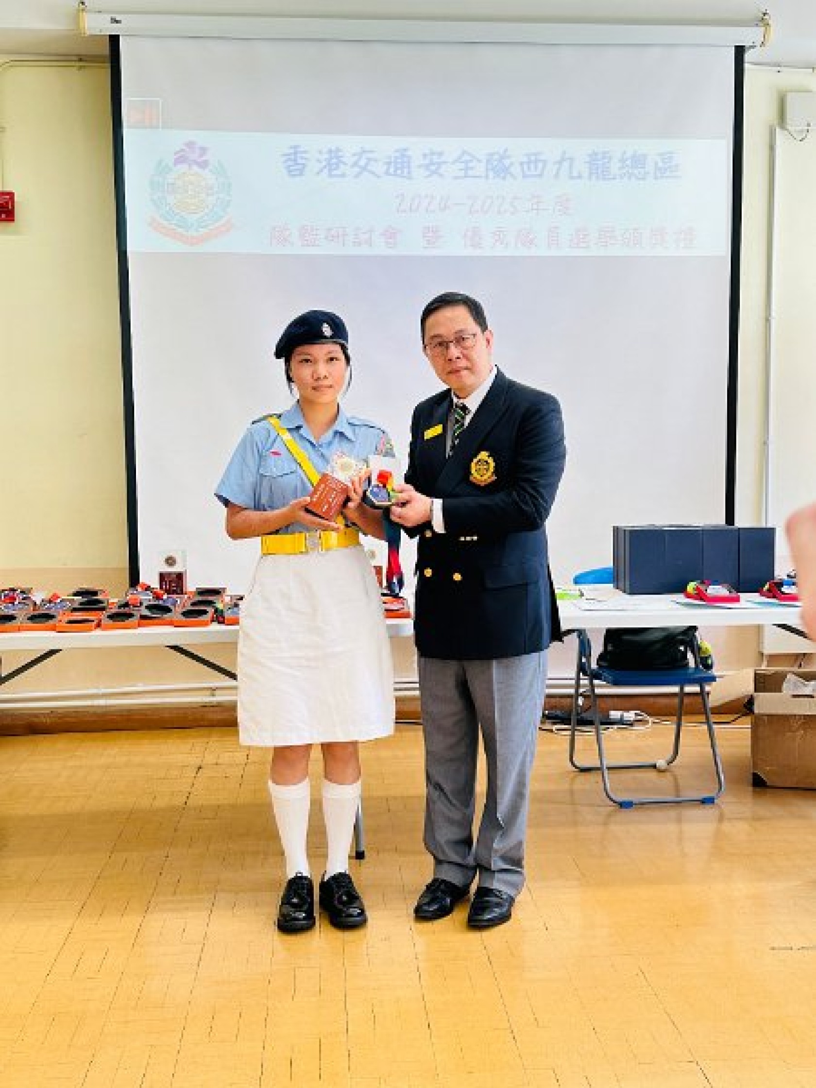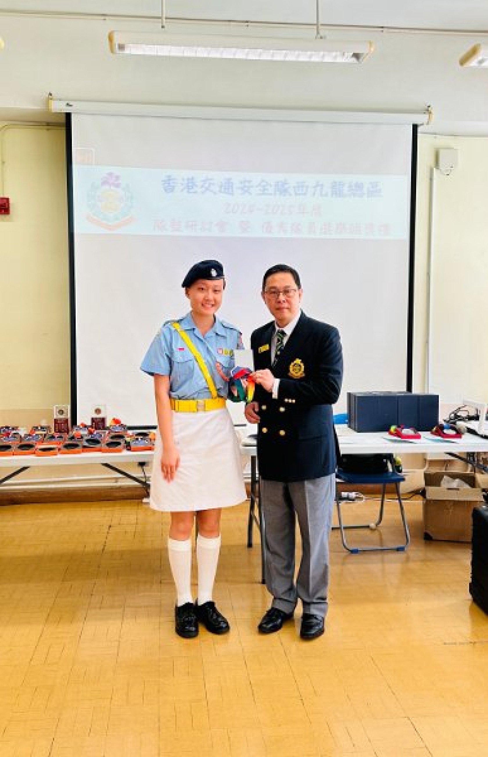 本校交通安全隊三名隊監出席西九龍交通安全隊舉辦的隊監研討會,了解西九龍總區交通安全隊的最新訓練項目,並有三名隊員出席優秀隊員頒獎禮,三名同學分別獲得亞軍、一等獎及二等獎,得到西九龍總區的長官高度讚揚。