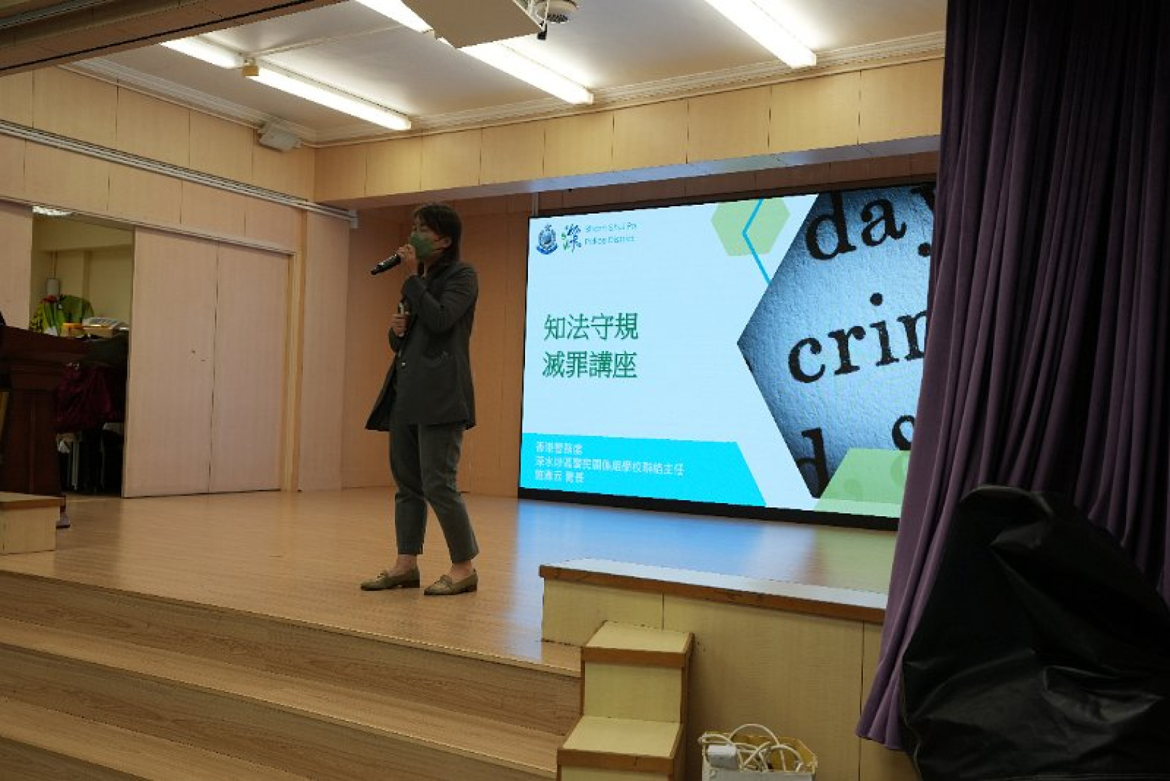 本校訓導組為初中同學舉辦知法守規滅罪講座,此講座於11月28日在學校舉行,並由深水埗警區警民關係組學校聯絡主任主講,透過講座讓同學獲得更多知法守規滅罪資訊及培養他們成為良好的公民。