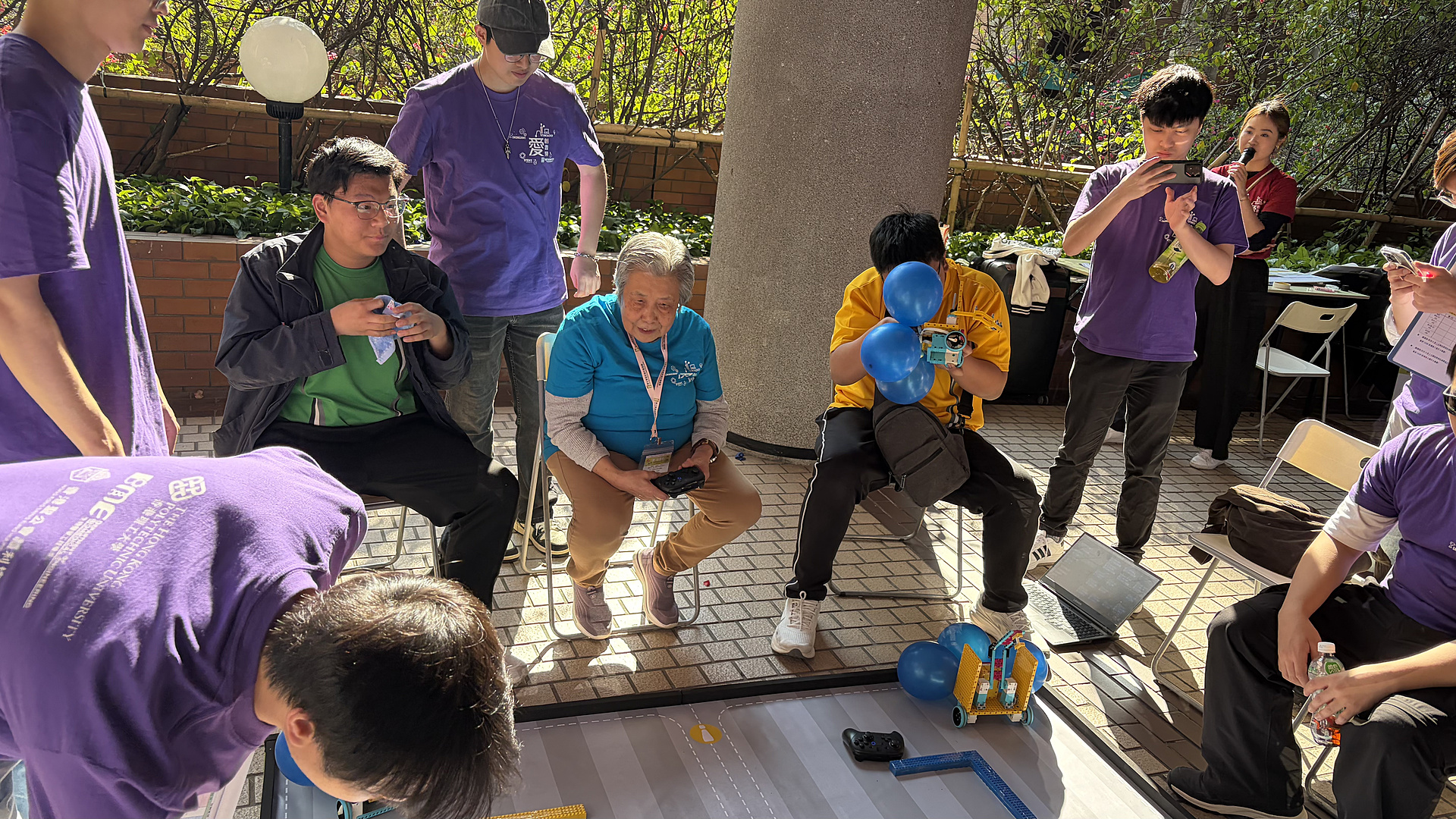 本校STEAM隊伍參與香港理工大學舉辦的「愛.創耆樂」機械車大賽,協助提倡促進跨代共融及以玩樂益智遊戲預防認知障礙症。比賽當日,本校同學與長者們合作,同學耐心教導長者如何操作STEAM隊伍精心設計的機械車,並與長者共同商討戰略,完成任務。