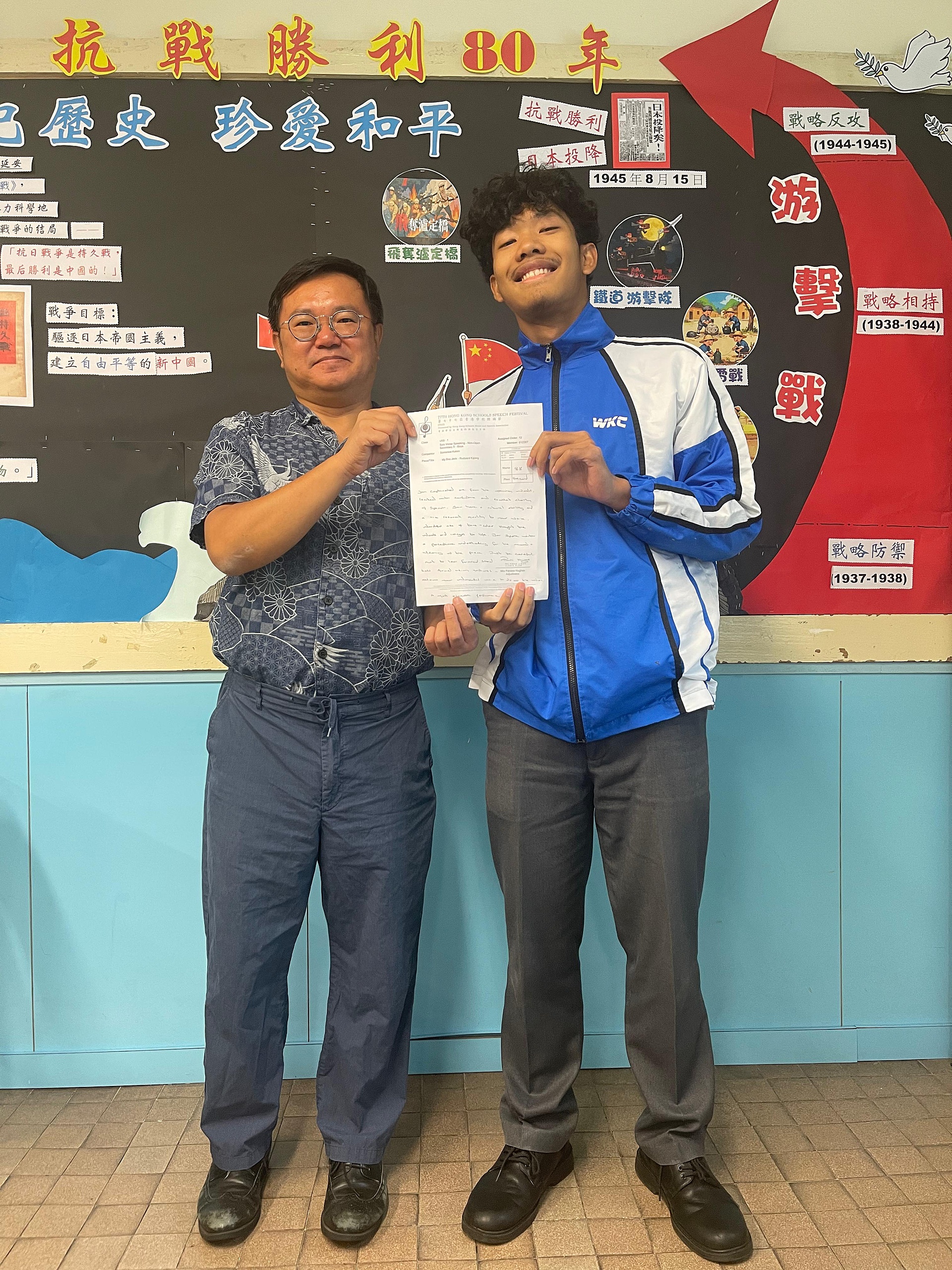 恭喜我校5C 同學Somsrisai Kelvin於本年度校際朗誦節中勇奪男子英文獨誦第二名。