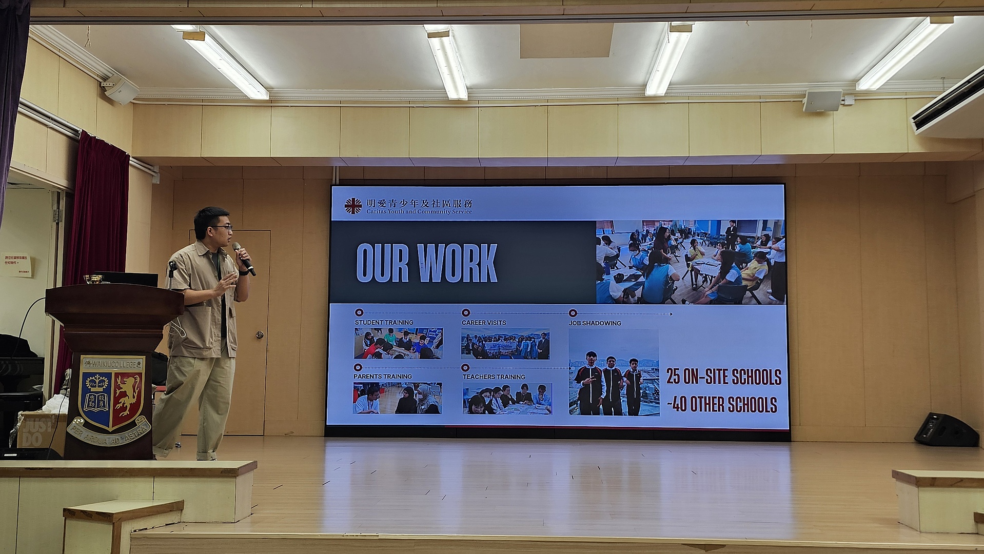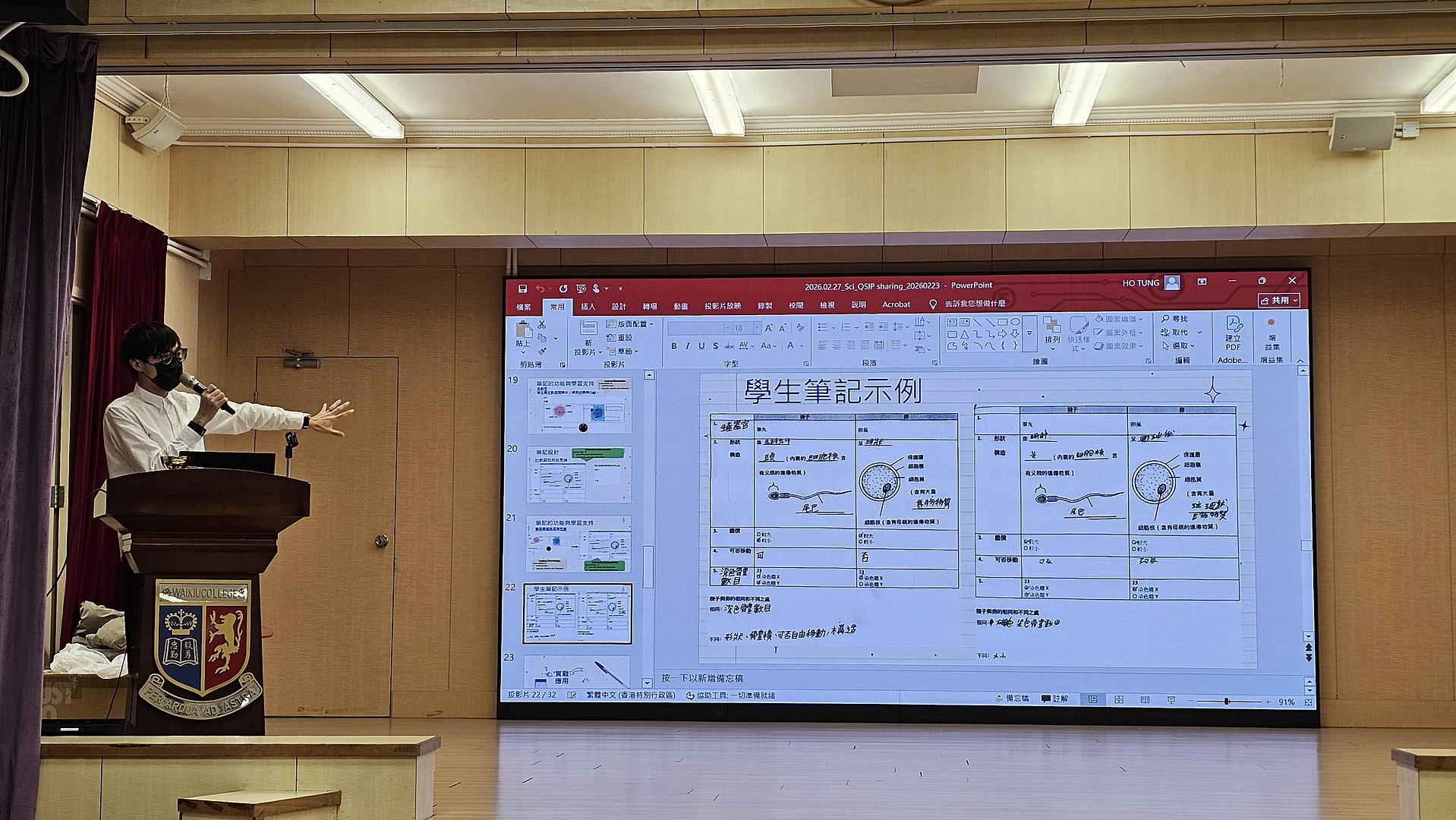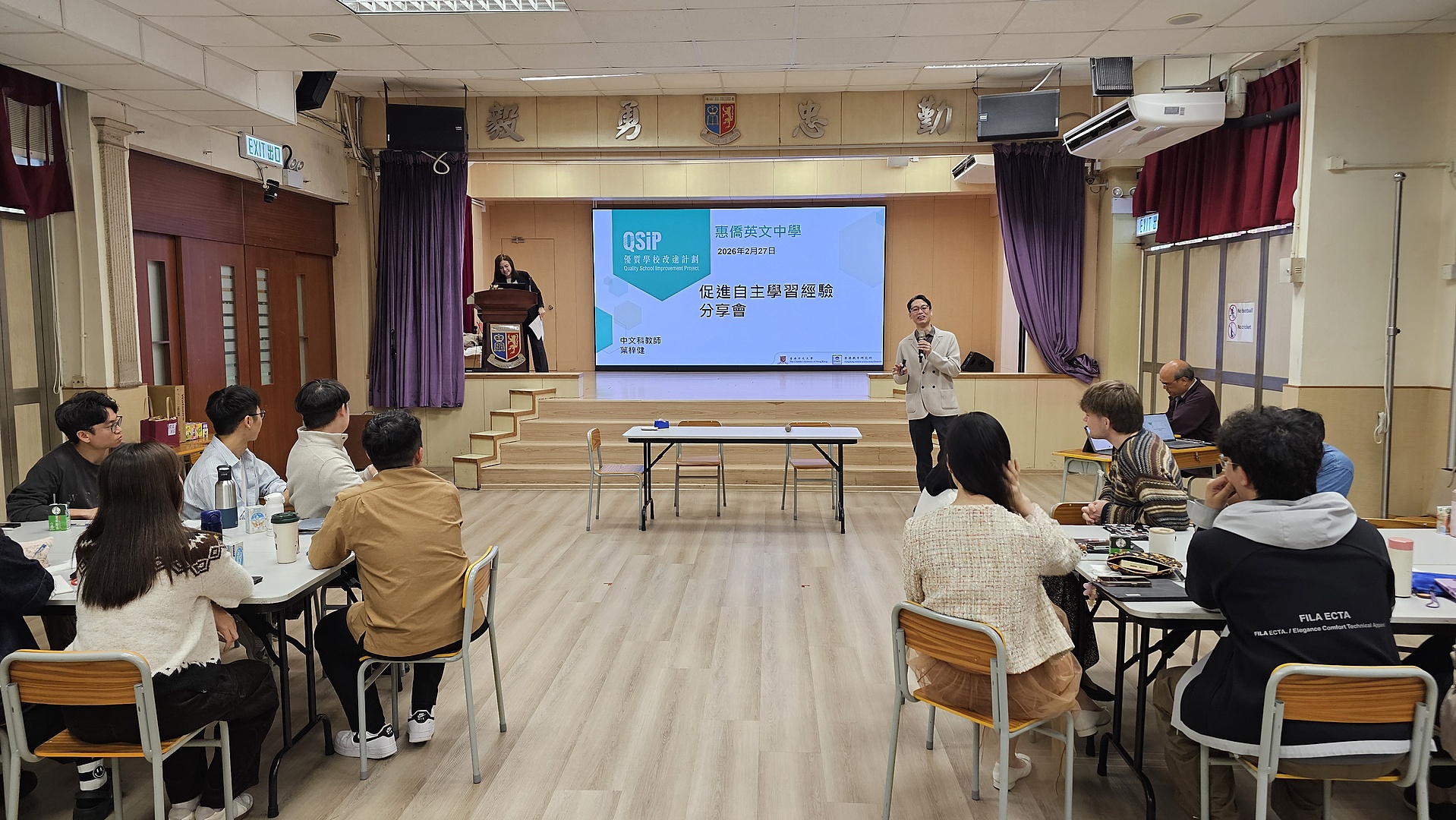 是次發展日分為兩部份。首先是優質學校改進計劃,透過「校本專業支援」推動學校繼續改進自主學習的製作筆記技巧。當中有中文、數學、歷史及科學科的分享,使不同範疇的老師均有所獲。之後就是第二部份,有關非華語學生的升學講座。承蒙教育局支持,香港明愛青少年及社區服務為多所學校的非華語中學生提供升學及就業輔導。當天,他們為我校教師作專業交流,簡介計劃內容及介紹非華語同學的升學路徑。