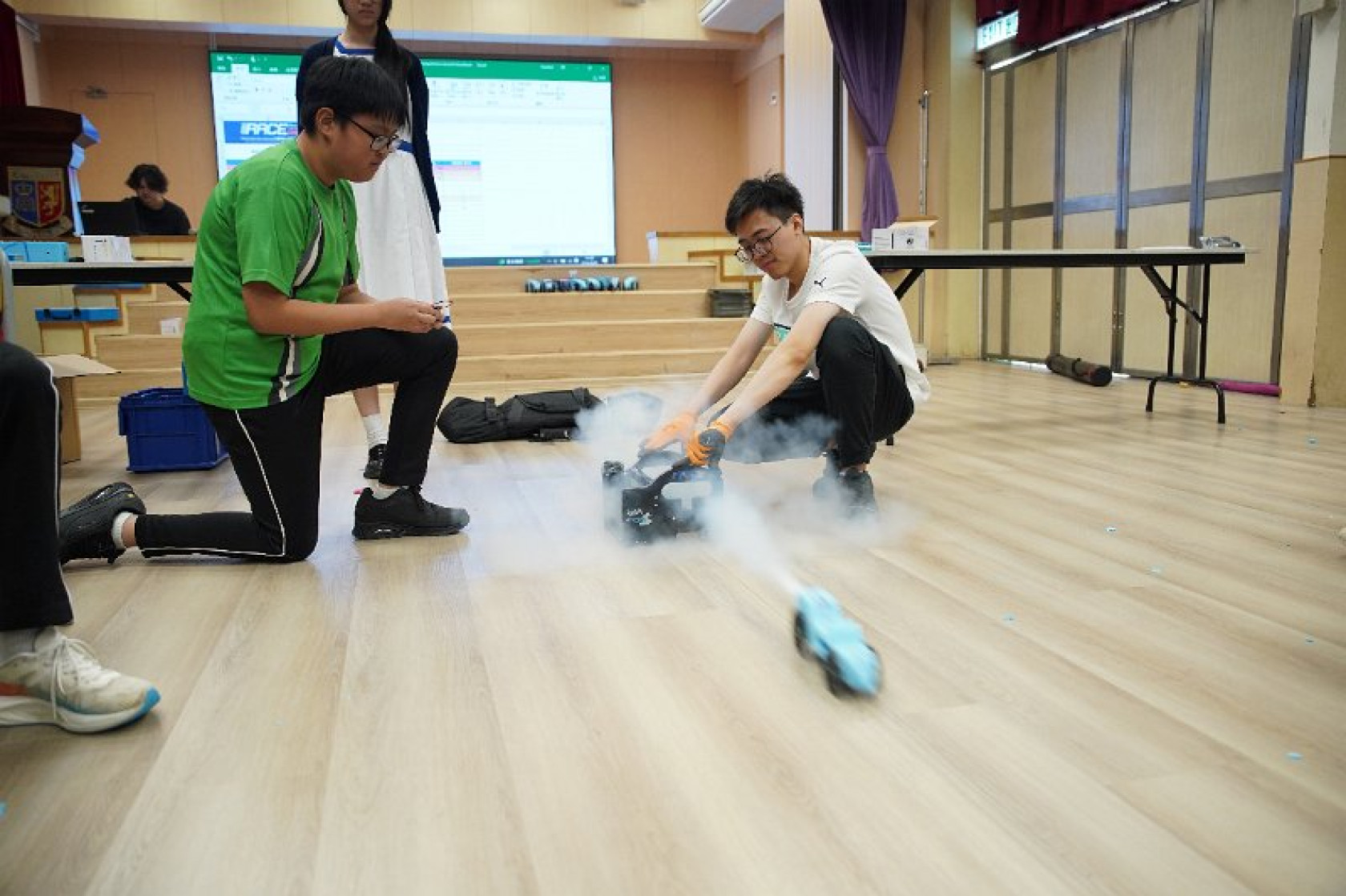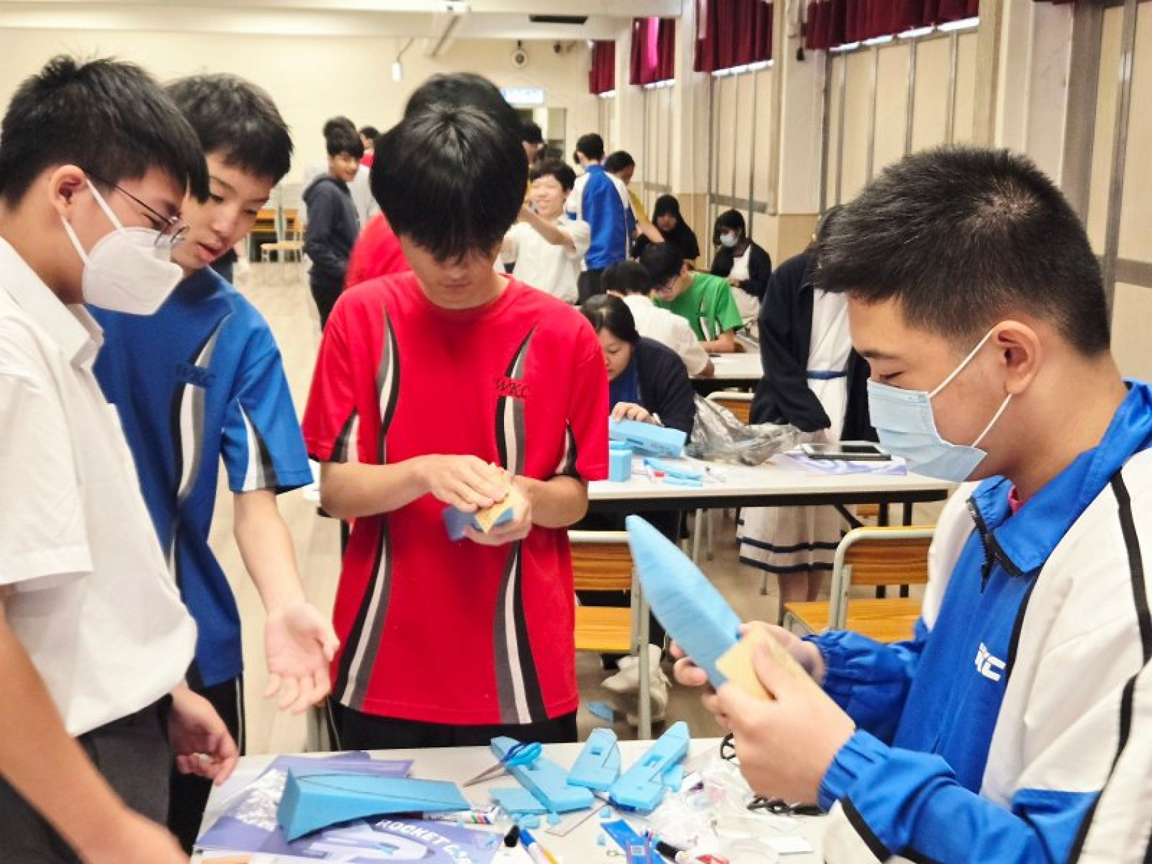 在火箭車活動中,學生實踐牛頓第三定律,透過設計和製作火箭車來觀察反作用力的原理。他們測試不同的設計和材料,了解如何影響汽車的行駛速度。這不僅加深了對物理原理的理解,還培養了他們的問題解決能力和創新思維,鼓勵他們在實驗中探索和學習。