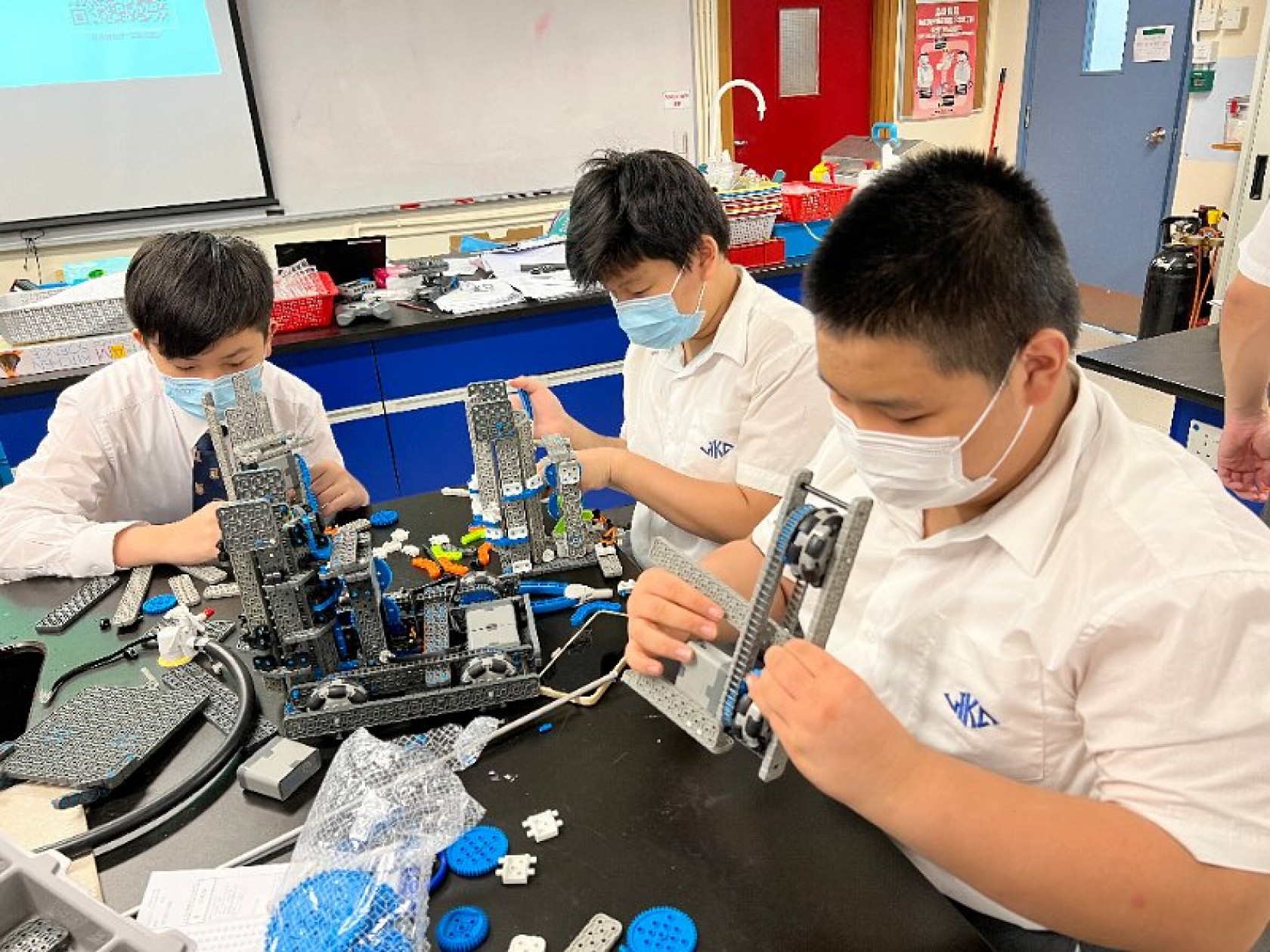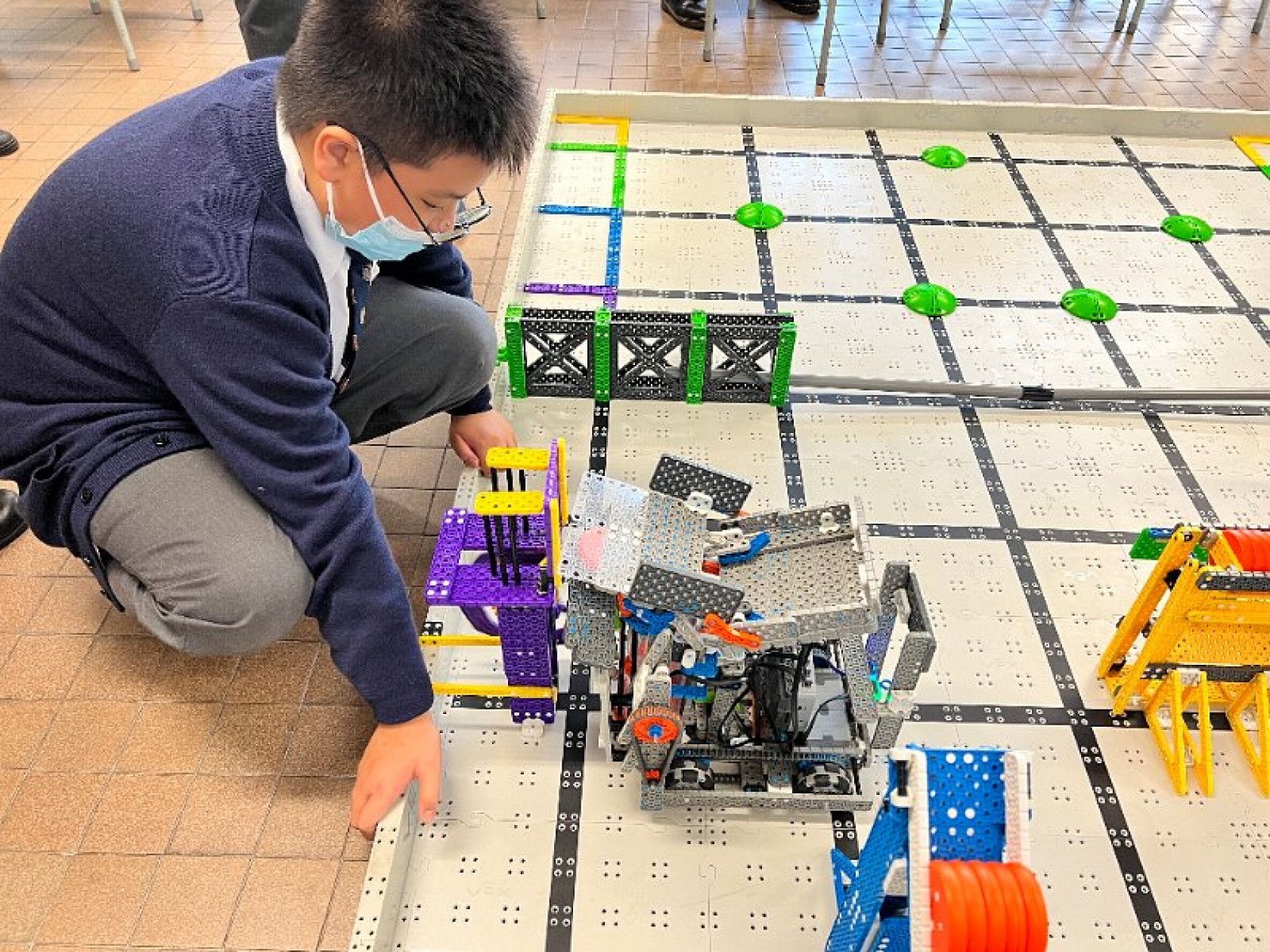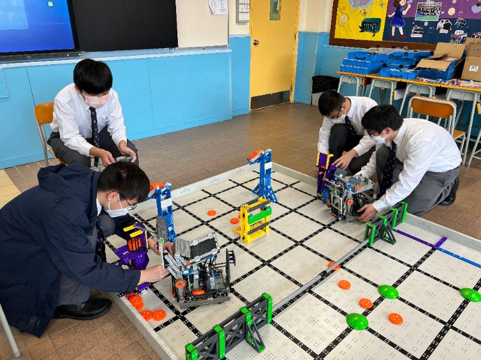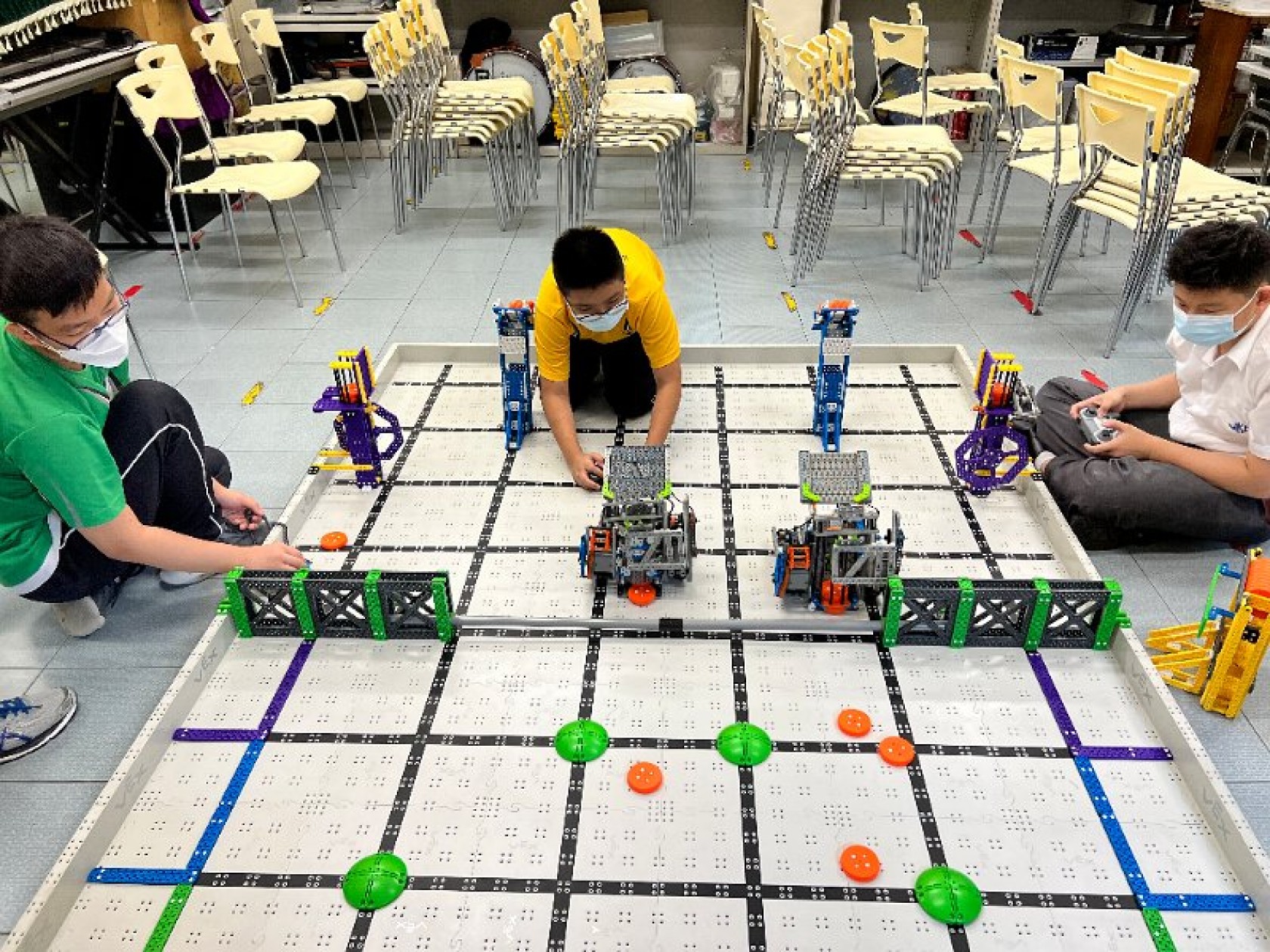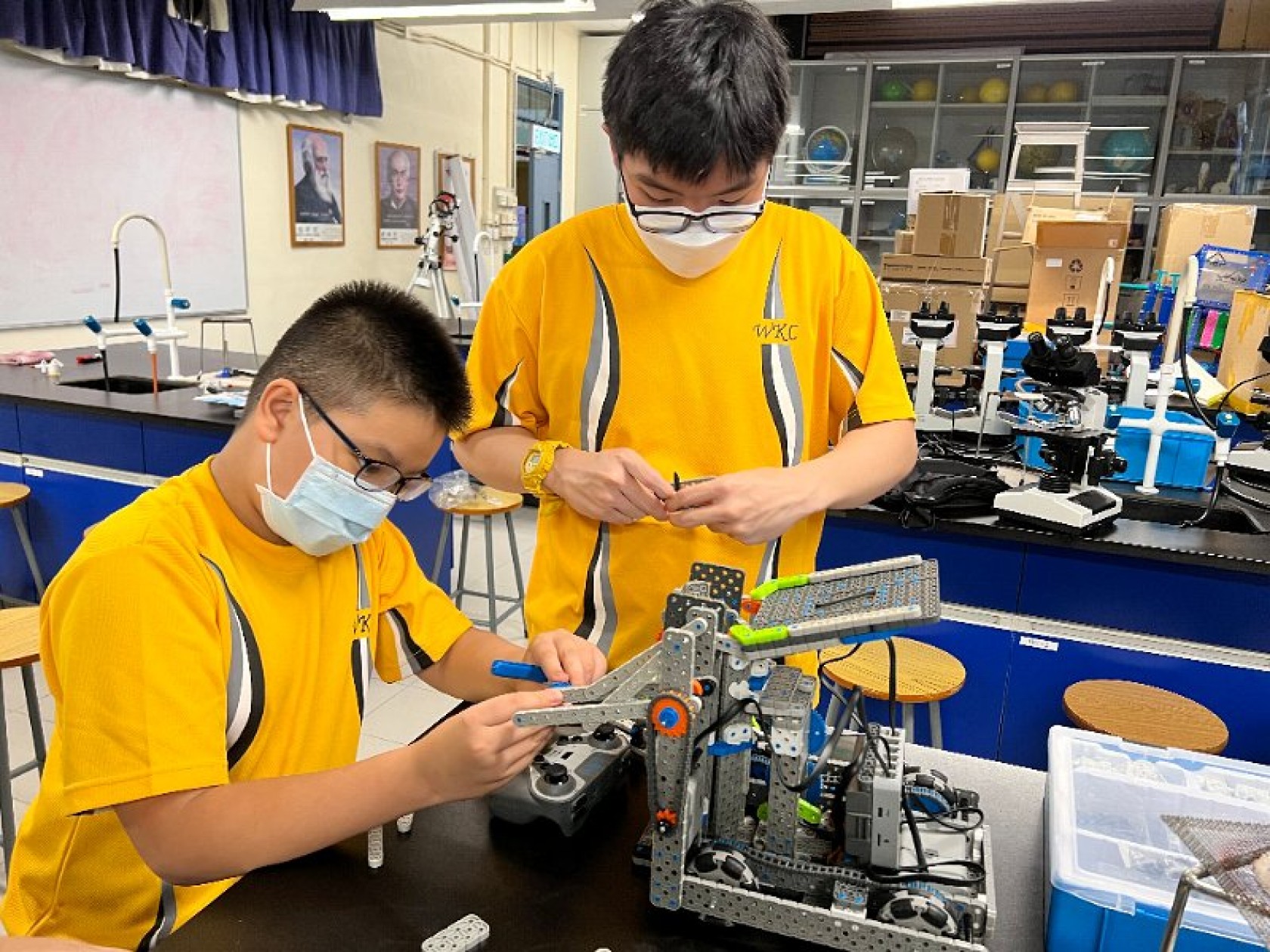 近年形形色色、千姿百態的機器人除了活躍於大銀幕外,更融入校園成爲學生的成長夥伴。本校STEM隊伍的成員熱衷於機器人研究,於「香港工程挑戰賽2022 - 世界賽資格賽」發揮創意,與各校好手切磋,交流心得,獲益良多。 Recently different kinds of eye-catching robots have gone viral not only in movies, but also in schools as learning partners. Influenced by the trend, members of the Wai Kiu STEM team are enthusiastic in robot research and participated in “Hong Kong Tech Challenge Junior 2022 - VEX Worlds Qualification”. Students benefited a lot through exchanging ideas with elites from other school during the competition.