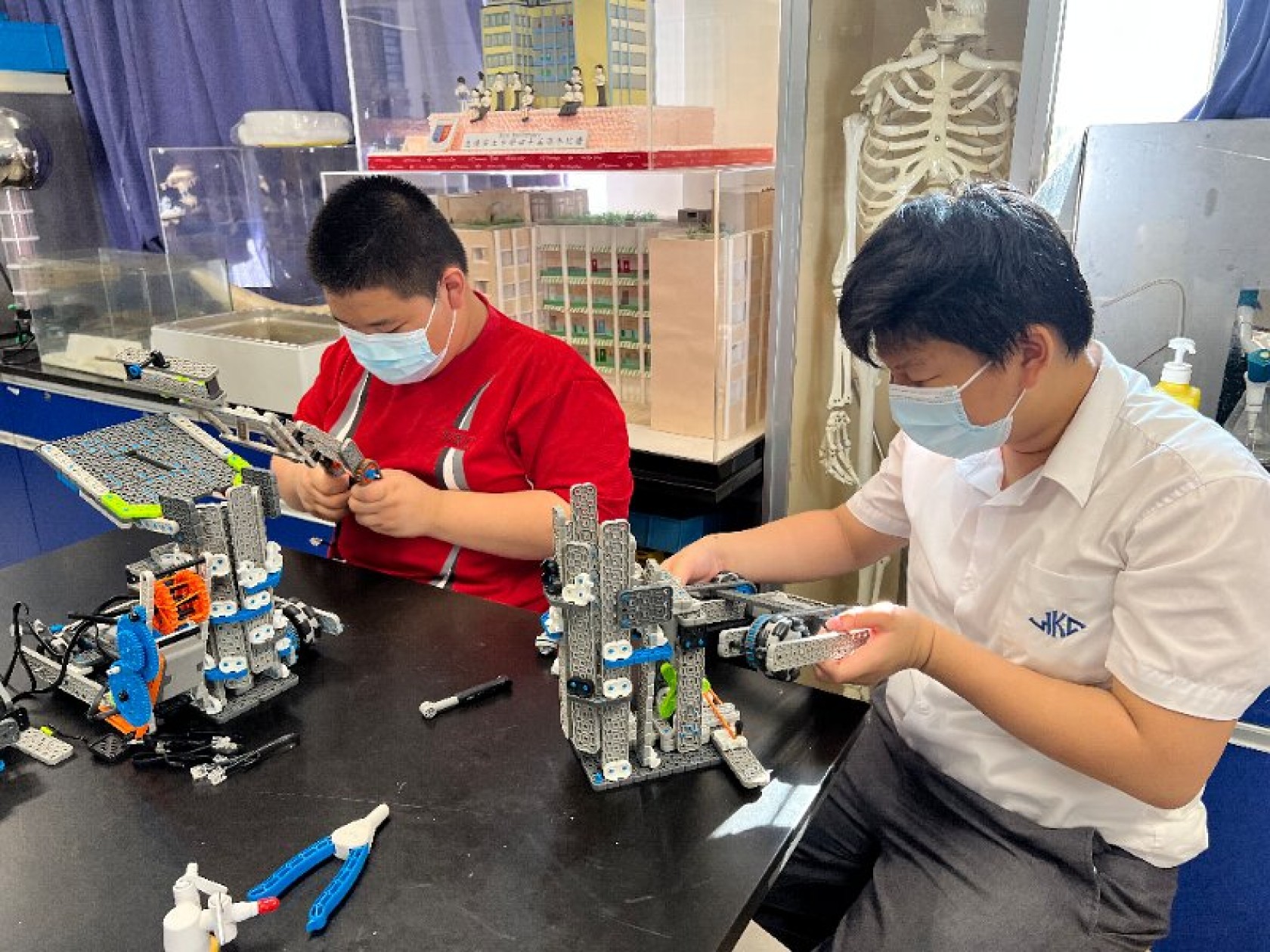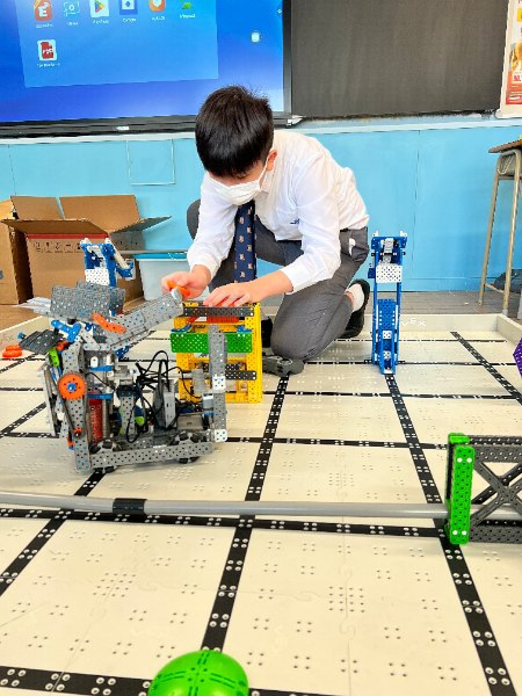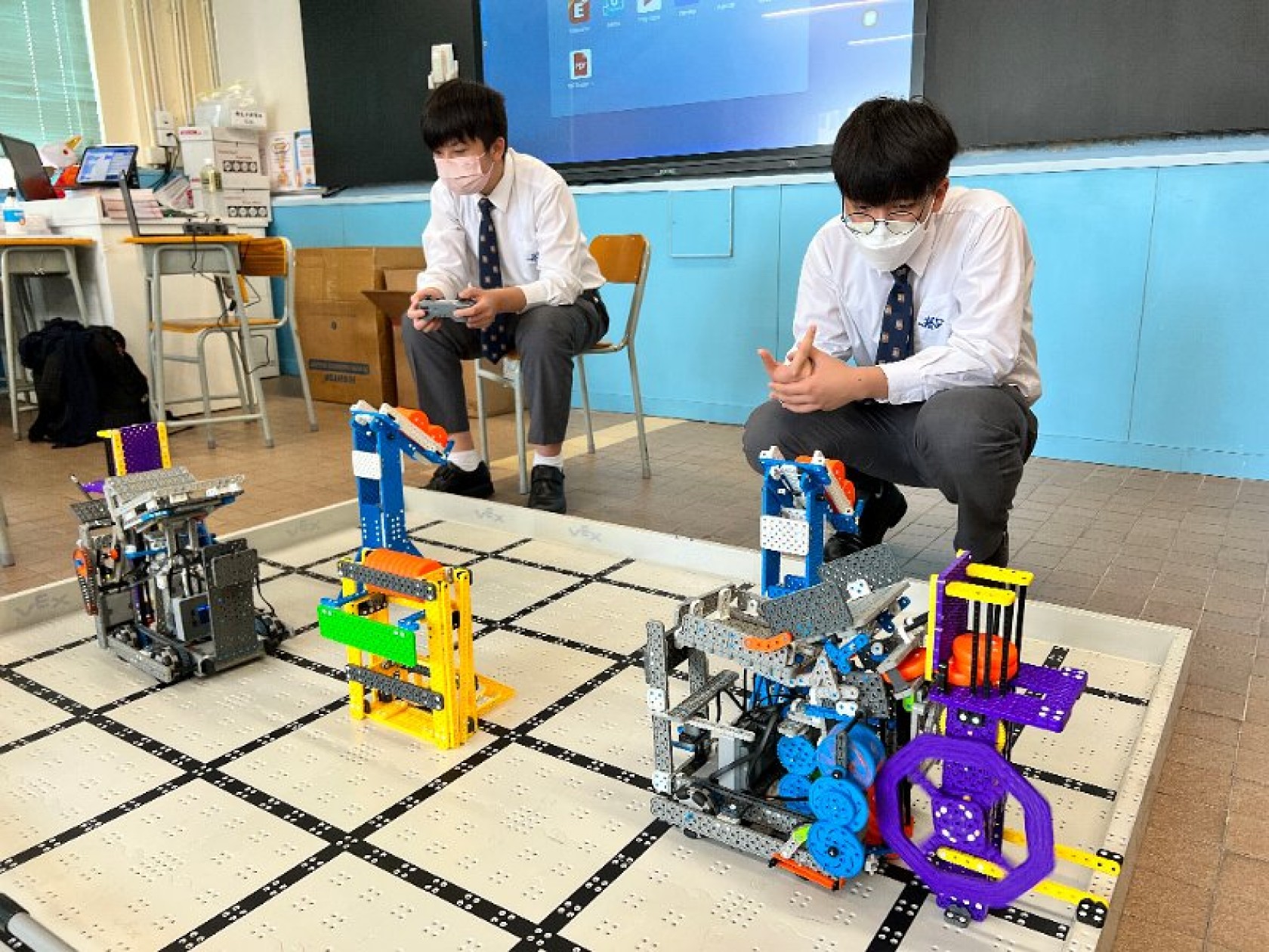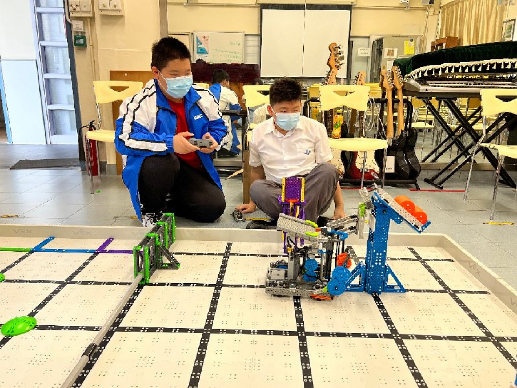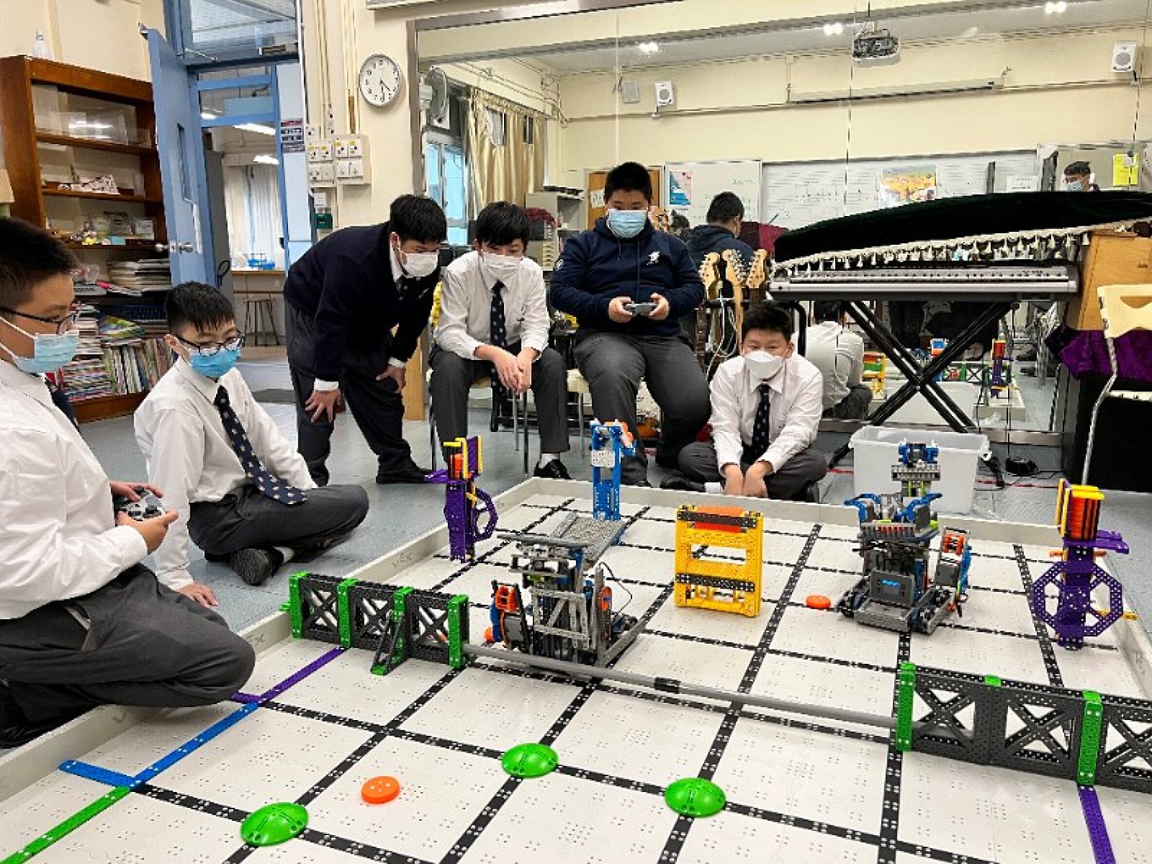 近年形形色色、千姿百態的機器人除了活躍於大銀幕外,更融入校園成爲學生的成長夥伴。本校STEM隊伍的成員熱衷於機器人研究,於「香港工程挑戰賽2022 - 世界賽資格賽」發揮創意,與各校好手切磋,交流心得,獲益良多。 Recently different kinds of eye-catching robots have gone viral not only in movies, but also in schools as learning partners. Influenced by the trend, members of the Wai Kiu STEM team are enthusiastic in robot research and participated in “Hong Kong Tech Challenge Junior 2022 - VEX Worlds Qualification”. Students benefited a lot through exchanging ideas with elites from other school during the competition.